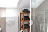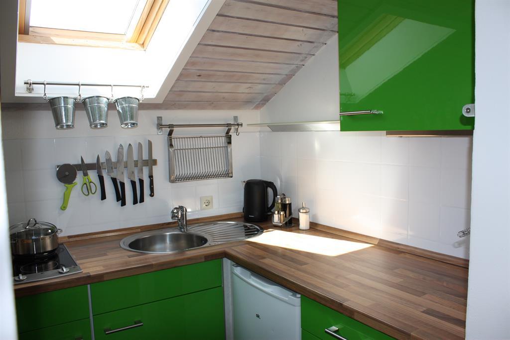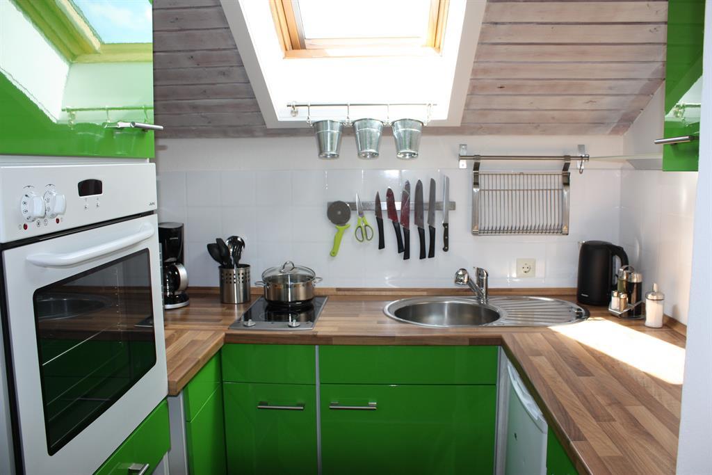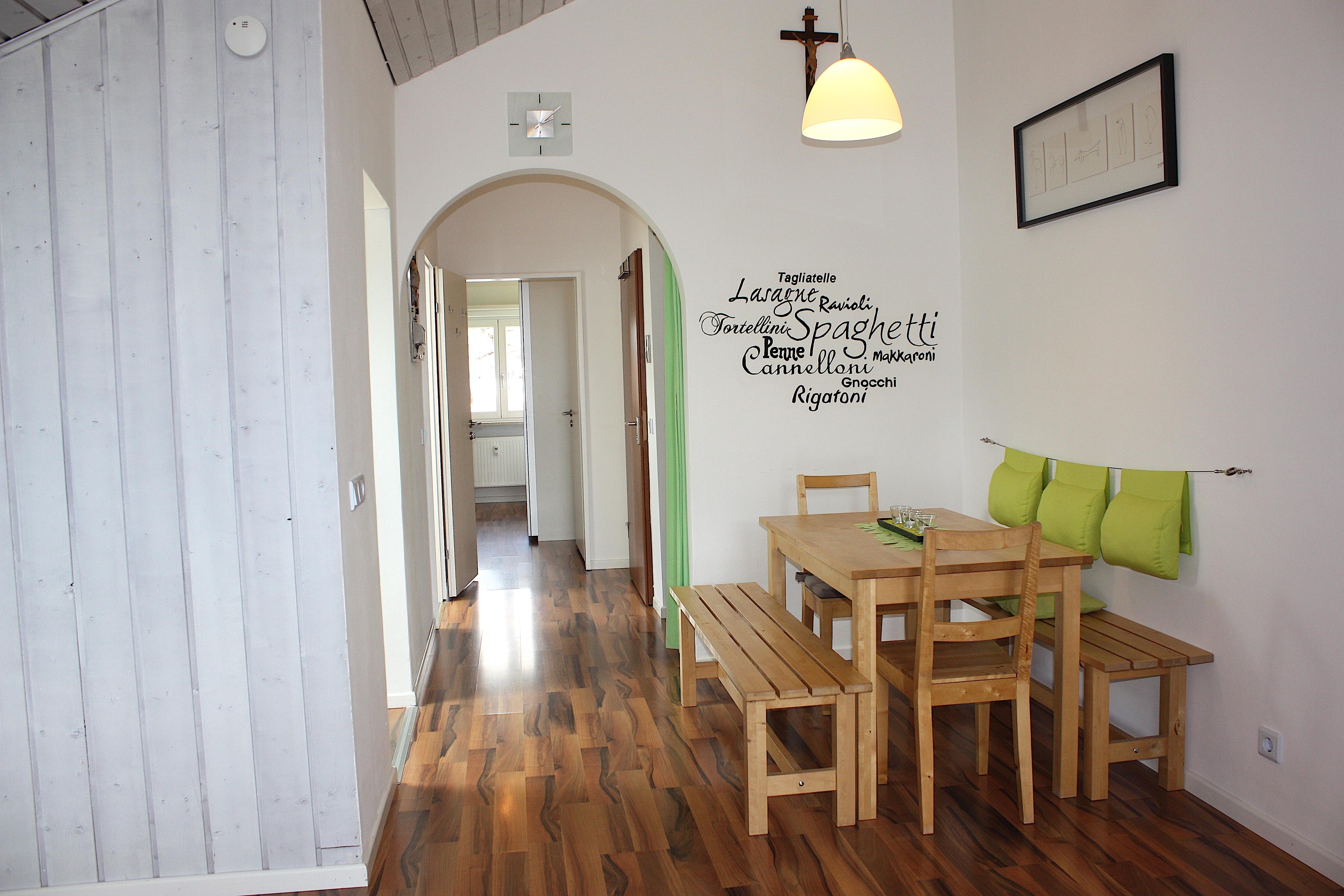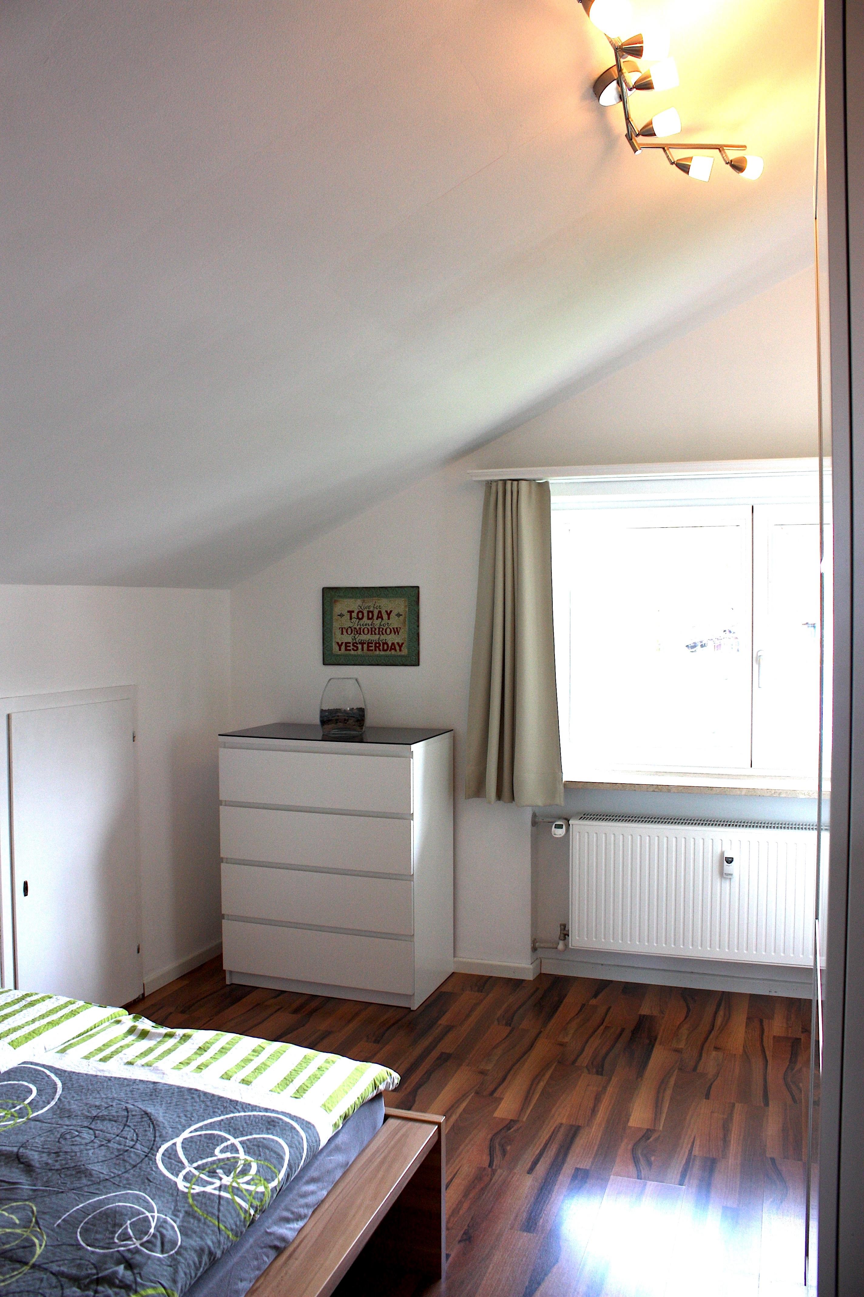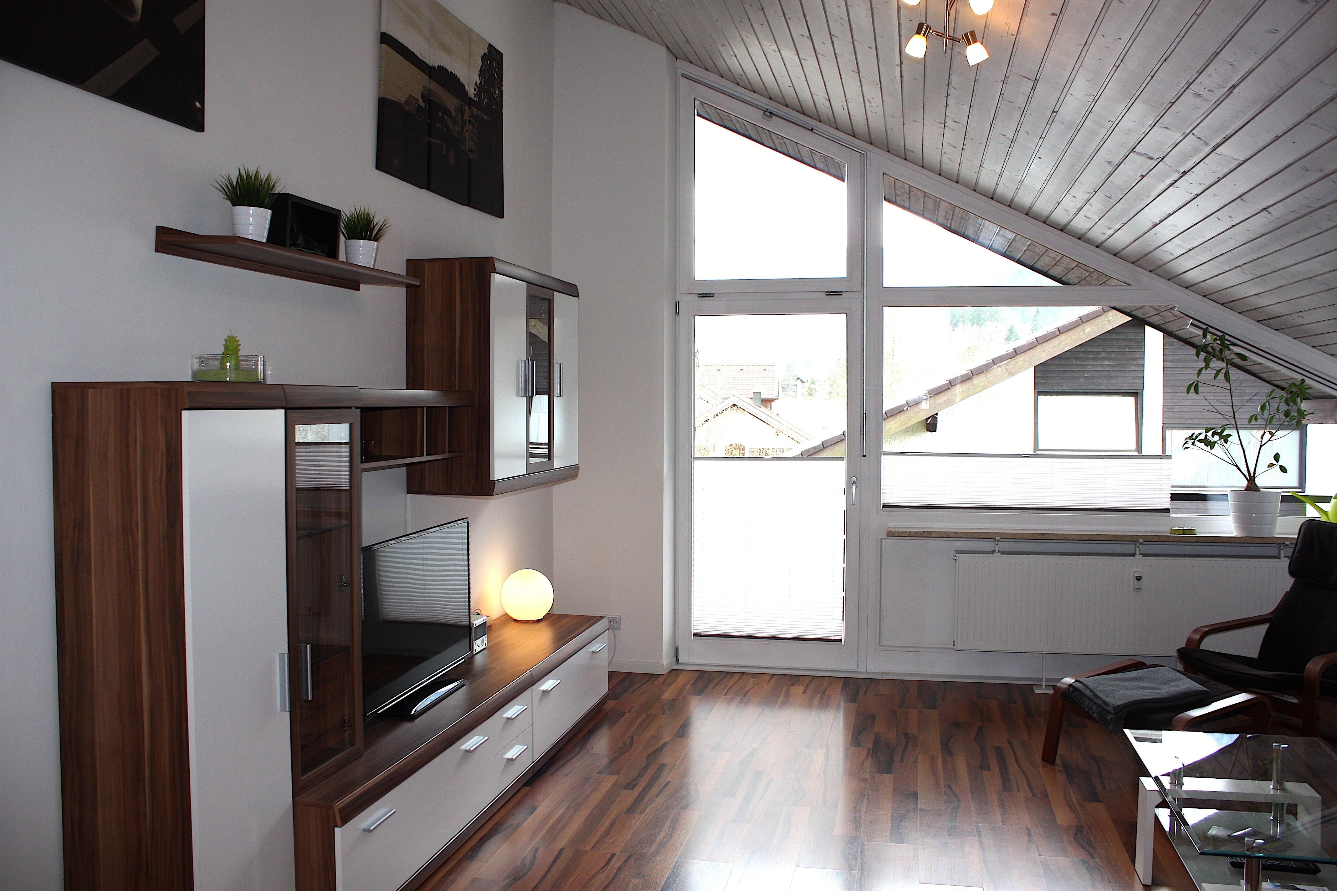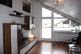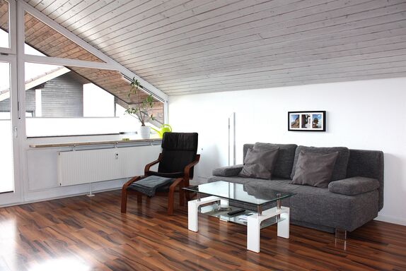 Unsere modern und liebevoll eingerichtete Dachgeschosswohnung (52 qm), mit großem überdachtem Südbalkon und Tiefgaragenstellplatz, verfügt über einen großen Wohnraum mit Schlafcouch, Flachbildschirm und Essecke, ein separates Schlafzimmer, eine kleine Küche, sowie ein Badezimmer mit Dusche/WC. Wir bieten Ihnen zudem kostenfreien WLAN-Zugang.