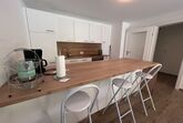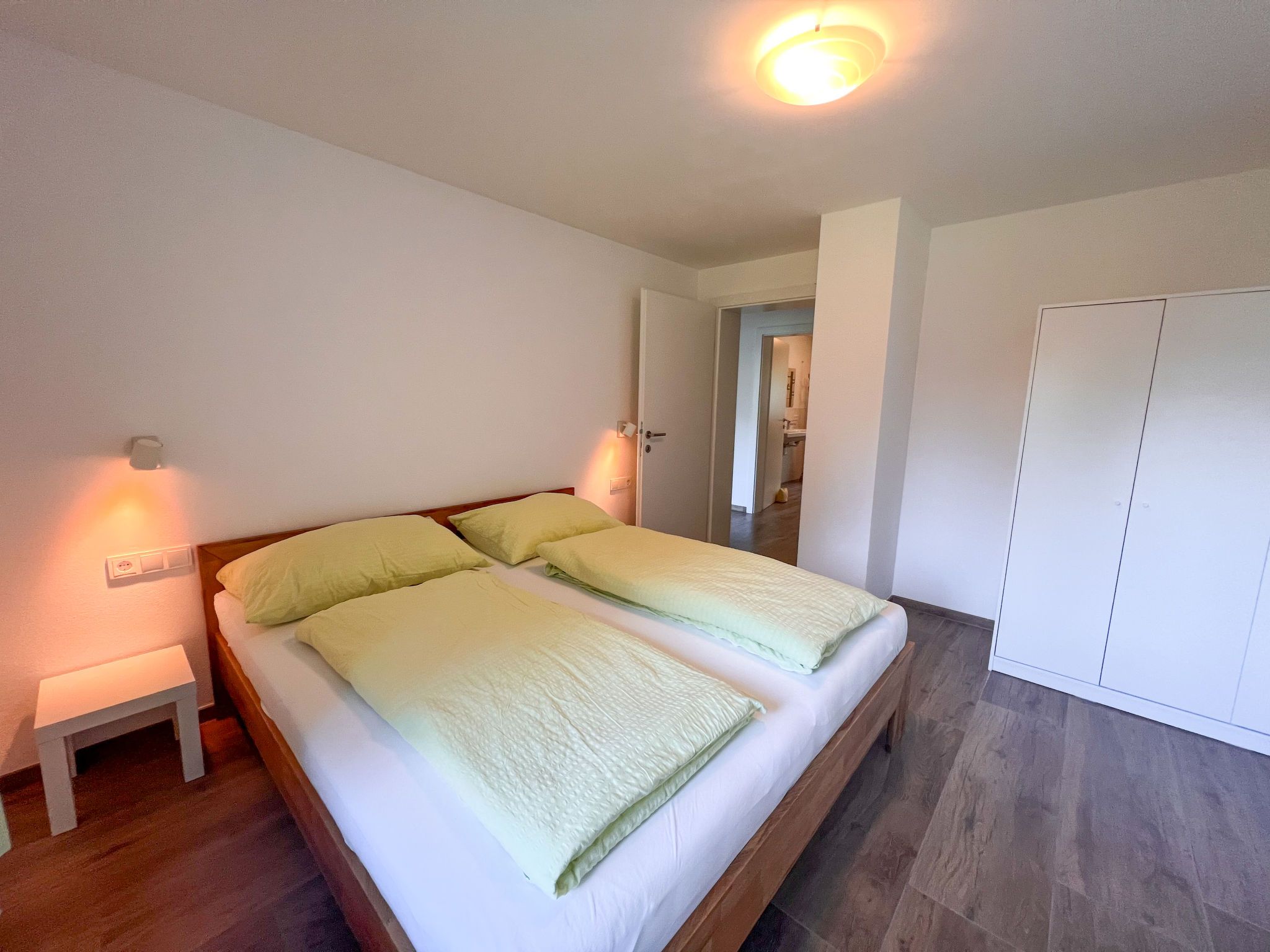Benjamin, 5-Zimmer-Wohnung 100 m2, im erhöhten Erdgeschoss. Geräumig, komfortabel und modern eingerichtet: Eingang. 4 Doppelzimmer. Wohnküche (Backofen, Geschirrspüler, 4 Glaskeramikplatten, Wasserkocher, Mikrowelle, elektrische Kaffeemaschine) mit Bar, Essecke und Sat-TV (Flachbildschirm). Ausgang zur Terrasse. Dusche, sep. WC, Doppelwaschbecken. Fussbodenheizung. Terrasse überdacht, Garten 80 m2. Terrassenmöbel, Gartengrill, Liegestühle. Zur Verfügung: Waschmaschine, Kinderhochstuhl, Babybett. Internet (WLAN, gratis). Bitte beachten: Nichtraucher-Unterkunft. 50605-002112-2020
