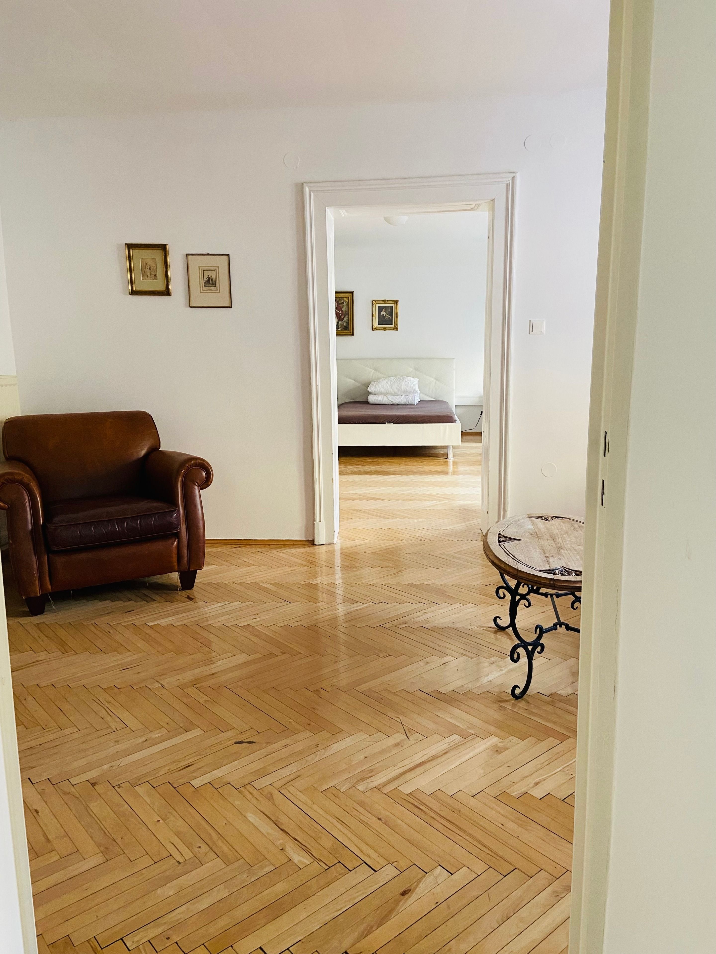 Die Wohnung besteht aus 2 getrennt begehbaren Schlafzimmern und einem Durchgangszimmer.