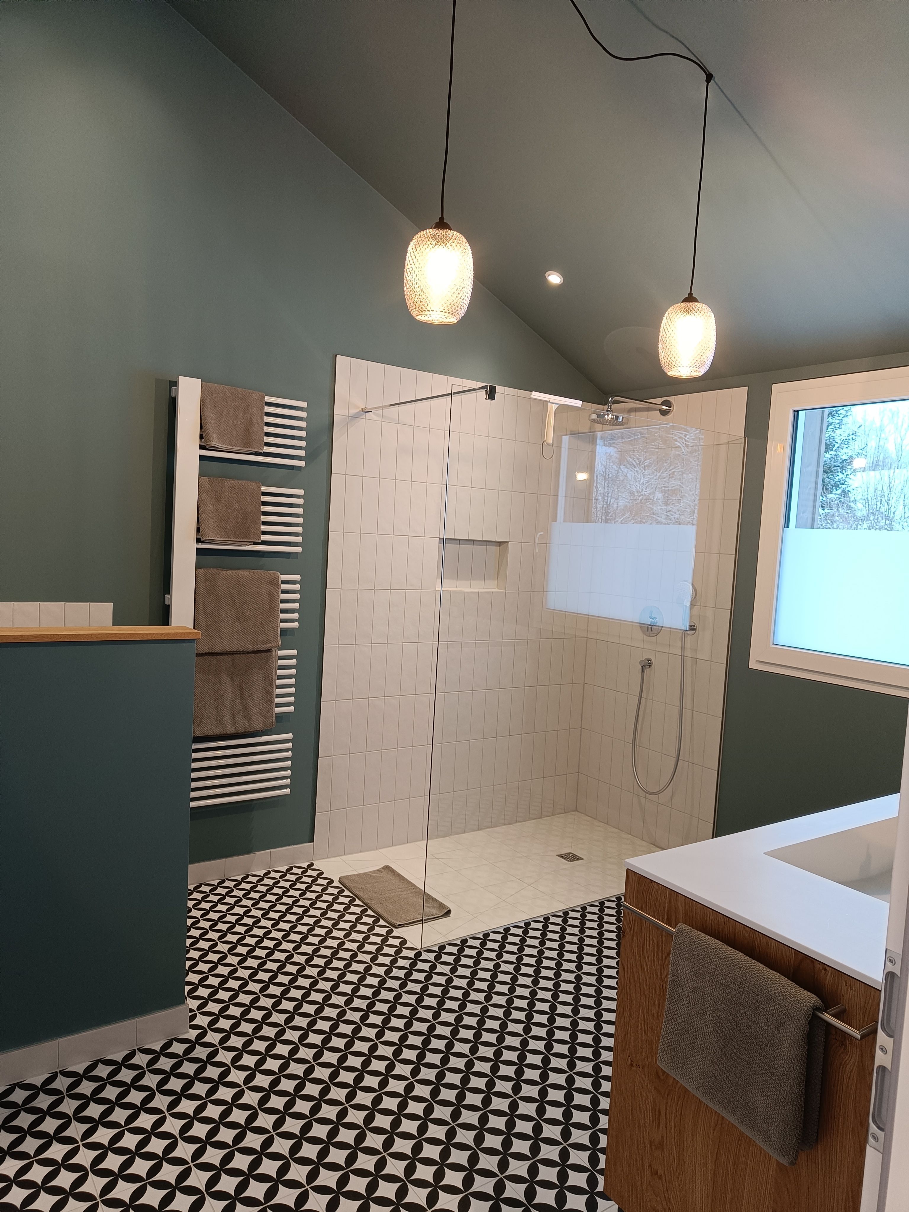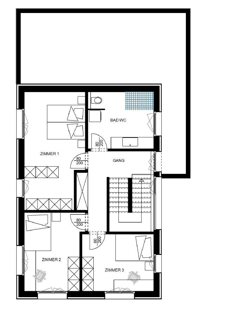 1 Badezimmer im OG: Ausstattung: Dusche, WC, Fön