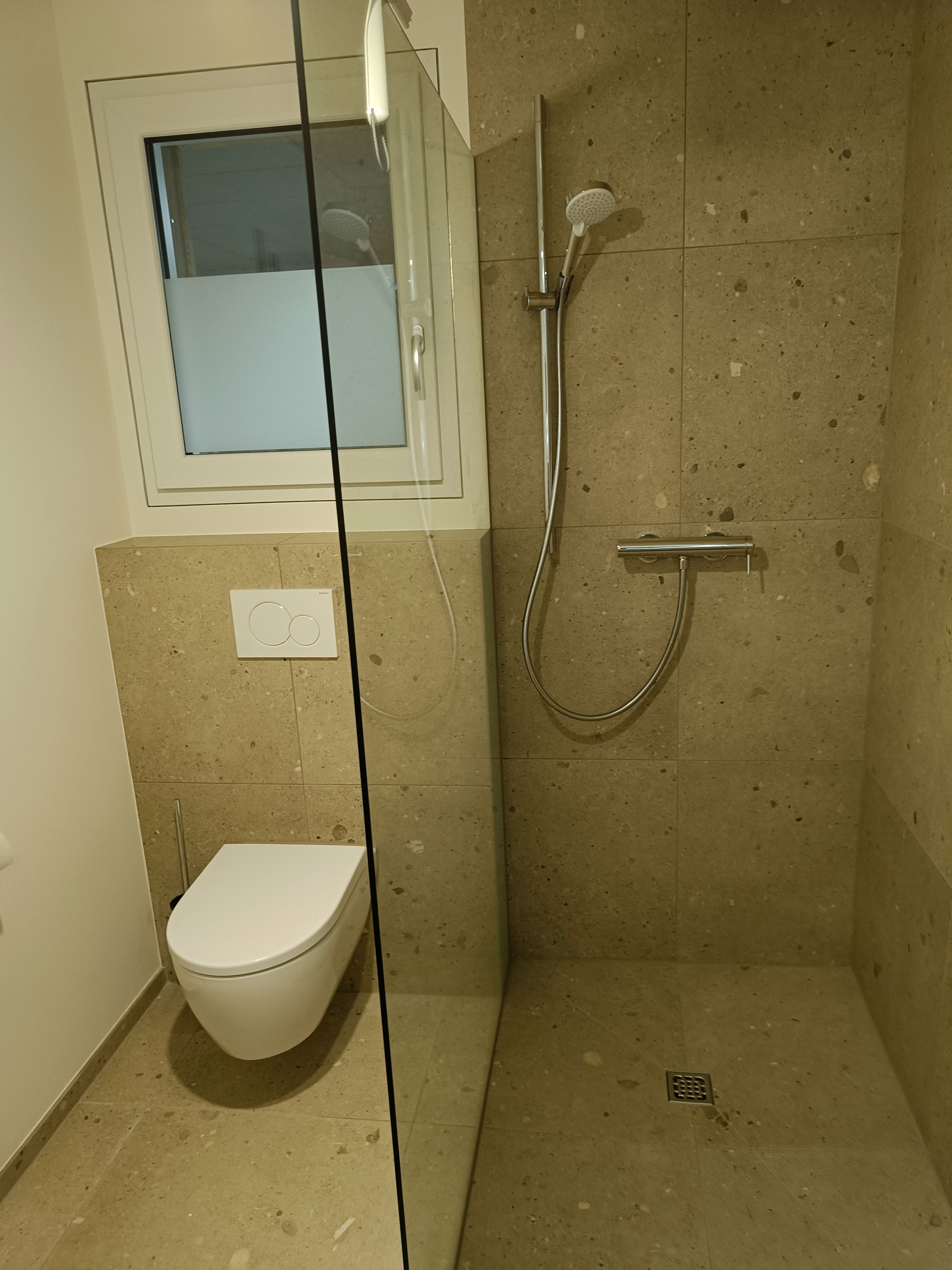 1 Badezimmer im EG: Ausstattung: Dusche, WC, Fön