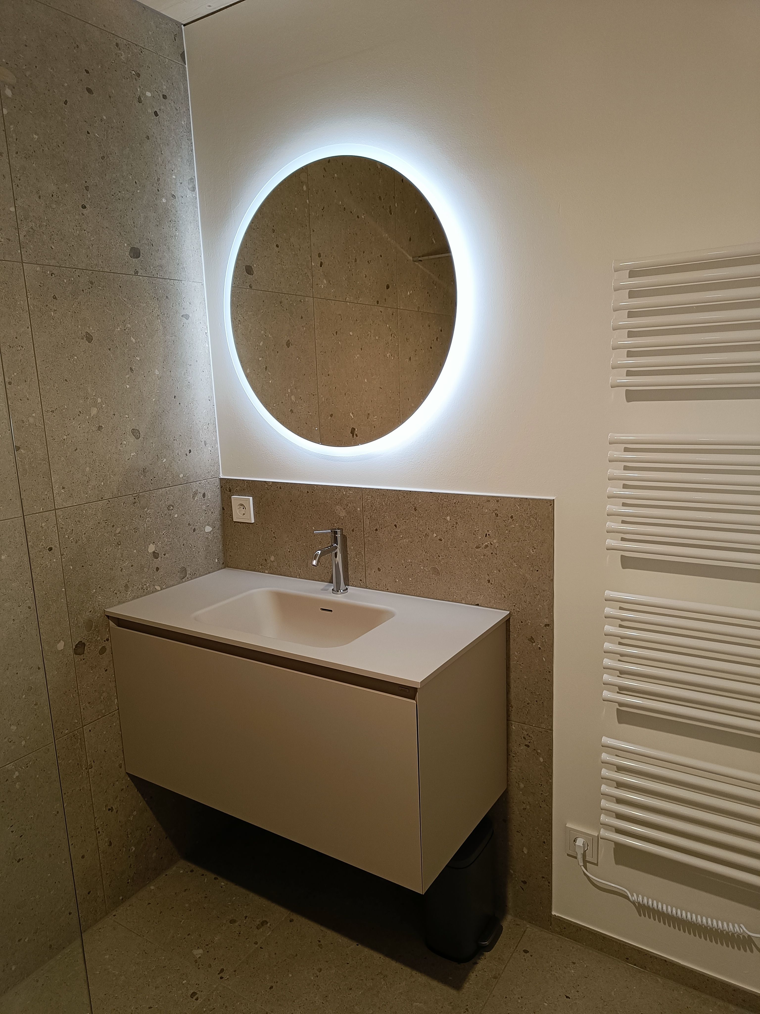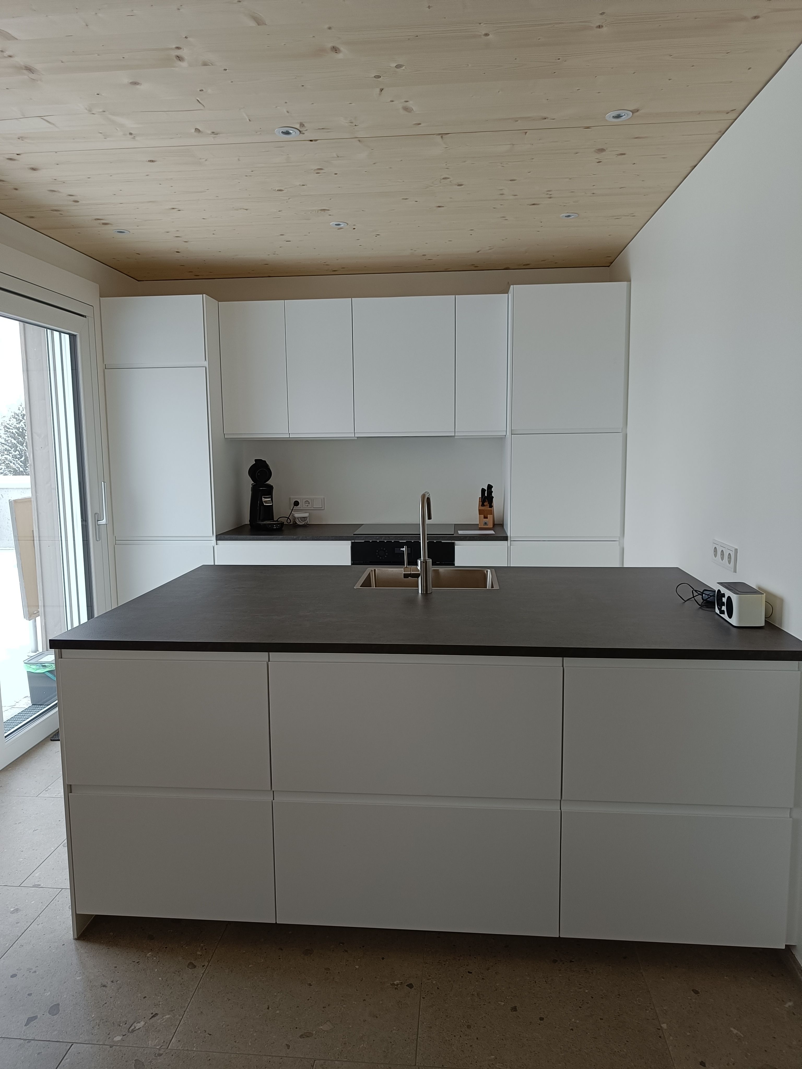 Ausstattung Küche: Kühlschrank inkl. Gefrierfach, Spülmaschine, Backofen, Herd, Geschirr, Gläser, Pad-Kaffeemaschine, Wasserkocher, Stabmixer, Kochtöpfe, Pfannen, Nudelsieb, Schneidebrett, Speise-Besteck, Koch-Besteck, Salz, Pfeffer, Geschirrtücher, Putzlappen,