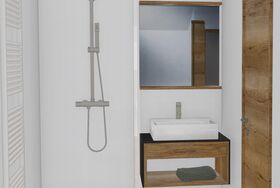• Bad mit Dusche/WC/Fön/Kosmetikspiegel