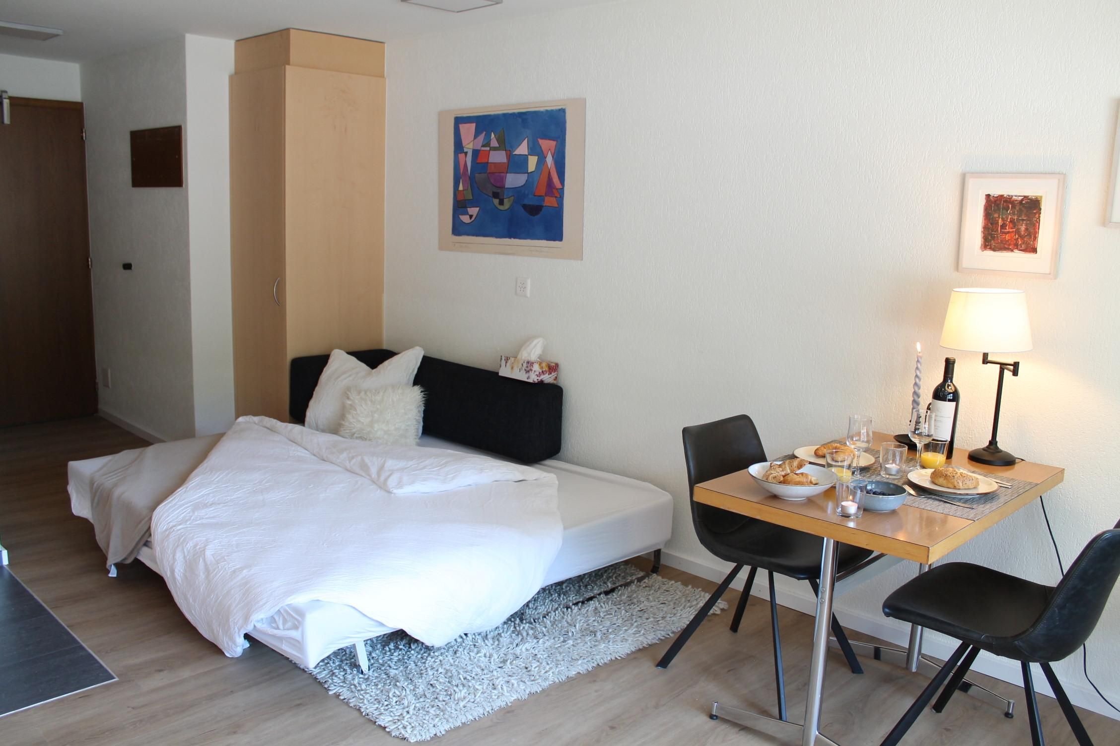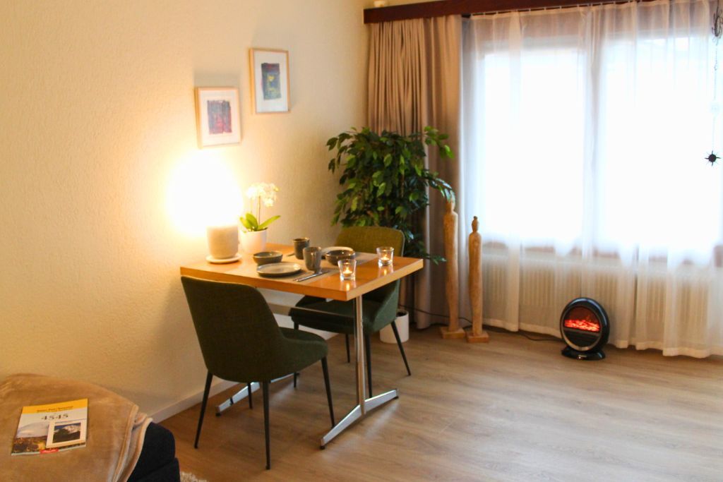 Sonnige, renovierte, gemütlich eingerichtete, zentral gelegene 3 1/2 Zimmer Wohnung für 4 bis maximal 8 Personen | Wohnzimmer mit einem gemütlichen Sofa, Hocker, einem Esstisch mit 8 Stühlen | TV | Internetanschluss | Zwei Schlafzimmer mit zwei Boxspringbetten und Kleiderschränken und je einem Lavabo | Voll ausgestattete Küche mit vier Herdplatten, Backofen, Abwaschmaschine, Nespresso Kaffeemaschine, Wasserkocher und Kühlschrank mit Gefrierfach | Badezimmer mit Badewanne, WC und Lavabo | Balkon mit einem Esstischchen und Grillmöglichkeiten I 150 Schritte vom Parkplatz resp. 200 Schritte vom Busbahnhof entfernt | Käseladen mit einer grossen Auswahl Käse und weiteren Milchprodukten im gleichen Haus | Metzgerei vis-a-vis der Wohnung | Restaurants und Baren in direkter Umgebung |100 Schritte vom nächsten Lebensmittelladen (Coop) entfernt. Es entfallen mühselige Taxi- und Transportfahrten zur Wohnung | Skiraum im Keller | Eigener geheizter Schrank für die Skiaufbewahrung im Sportgeschäft in Pistennähe für max. vier Skier und Schuhen gegen Entgelt möglich