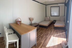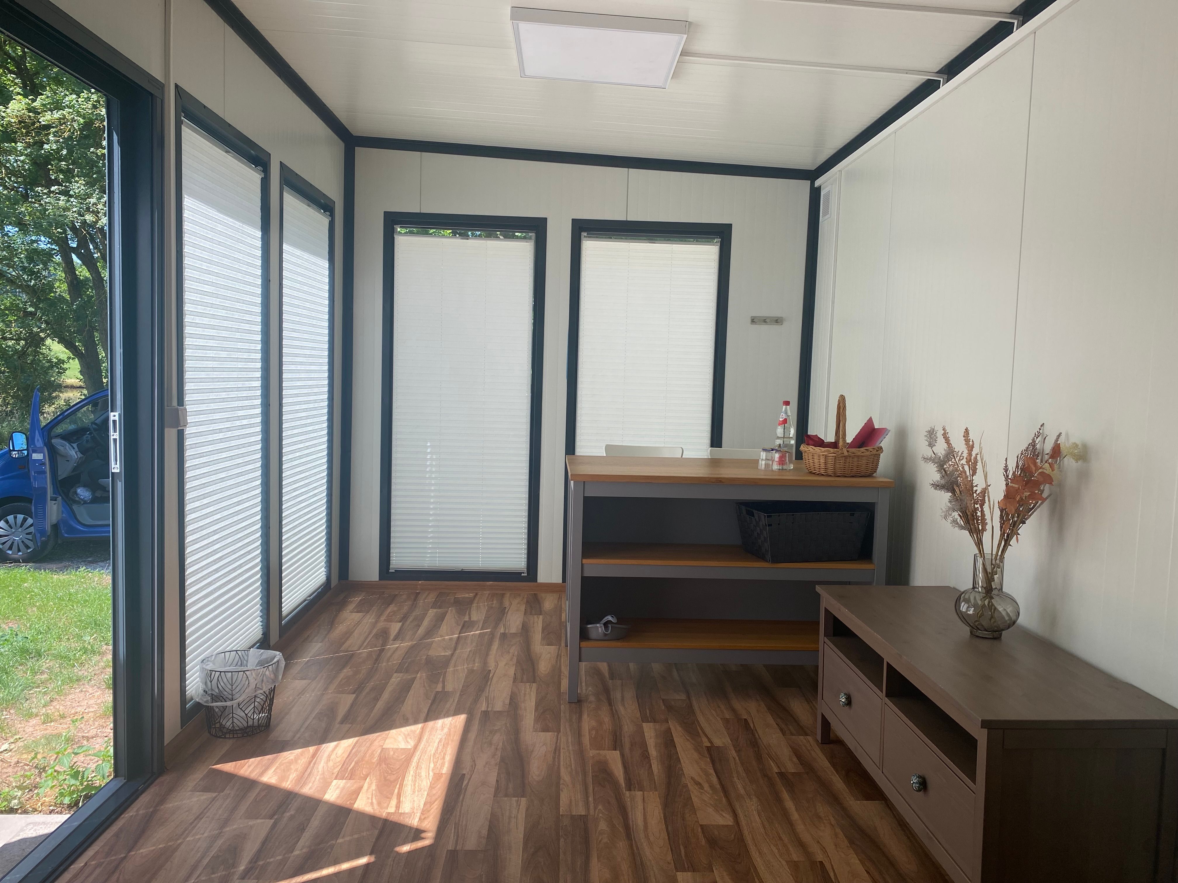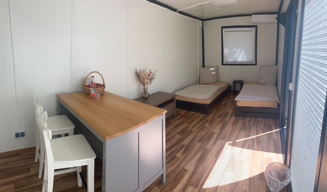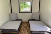 Der 18 m2 große Schlafcontainer ist perfekt für 2 Personen geeignet, es befinden sich dort 2 getrennte Betten (90cmx200m)groß.