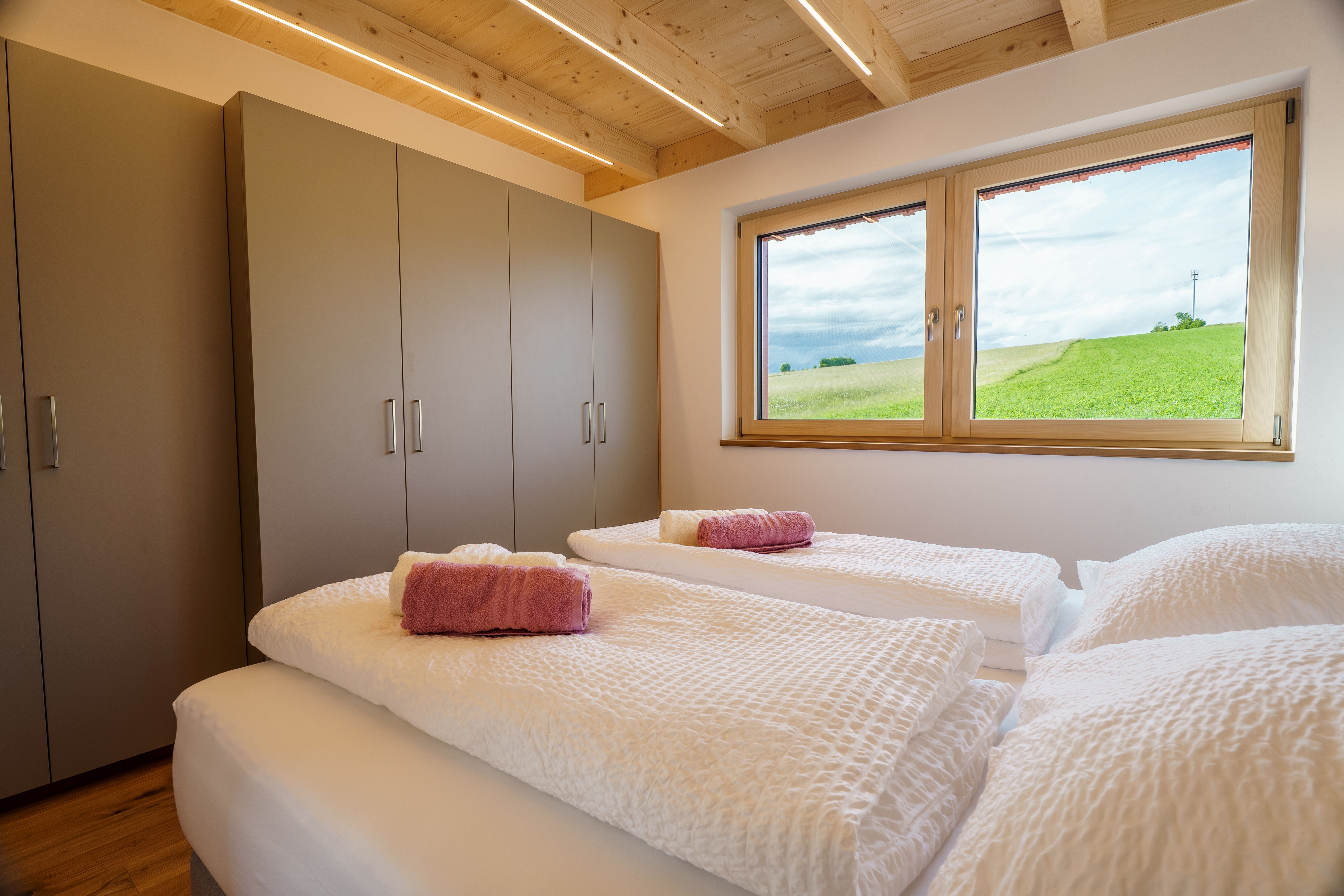 Tauchen Sie ein in pure Gemütlichkeit und höchsten Komfort: Unsere exklusiven Chalets vereinen nachhaltige Bauweise mit modernem Design – gefertigt aus Holz aus den Wäldern der Region, sorgfältig verarbeitet von einem lokalen Schreiner. Das Interieur, liebevoll gestaltet und ausgestattet mit Möbeln aus dem eigenen Holz, schafft eine warme Atmosphäre mit persönlichem Charakter. Jedes Chalet erstreckt sich über zwei Etagen und bietet ausreichend Raum für Ihre ganz persönliche Auszeit.