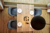 Auf 80 Quadratmetern finden bis zu fünf Personen Platz. Ein gemütliches Elternschlafzimmer mit Boxspringbett befindet sich im Erdgeschoss, zwei weitere Schlafzimmer mit Einzelbetten – eines davon mit zusätzlichem Schlafsessel für ein Kind – liegen im Obergeschoss. Herzstück des Hauses ist der helle Wohn- und Essbereich mit großer Fensterfront, offener Galerie und voll ausgestatteter Küche. Das moderne Bad verfügt über eine begehbare Regendusche, Fußbodenheizung sorgt für behagliche Wärme. Auf der großzügigen Terrasse lädt ein beheizter Außen-Whirlpool zum Entspannen ein – mit Blick auf die stille Natur ringsum.