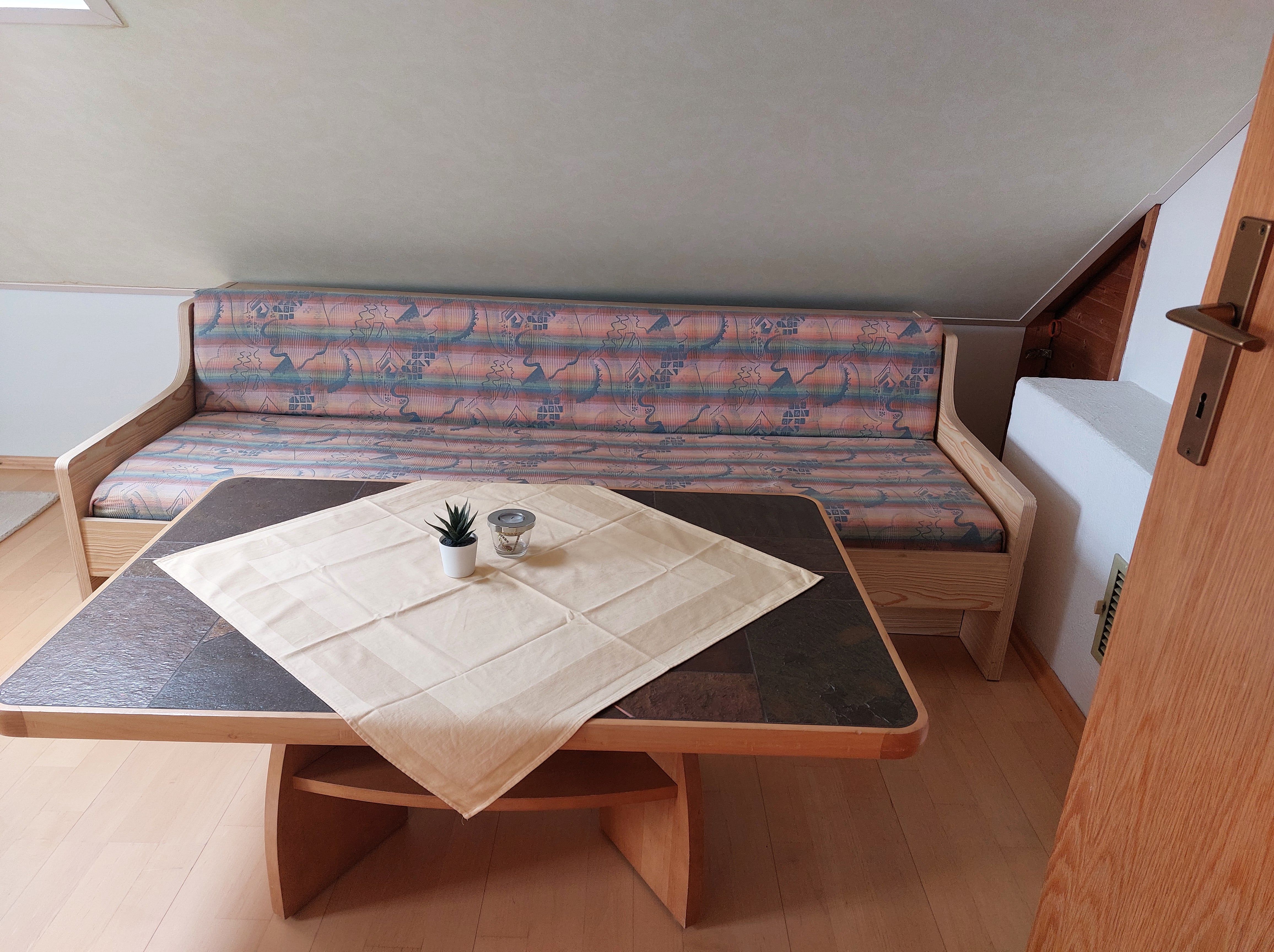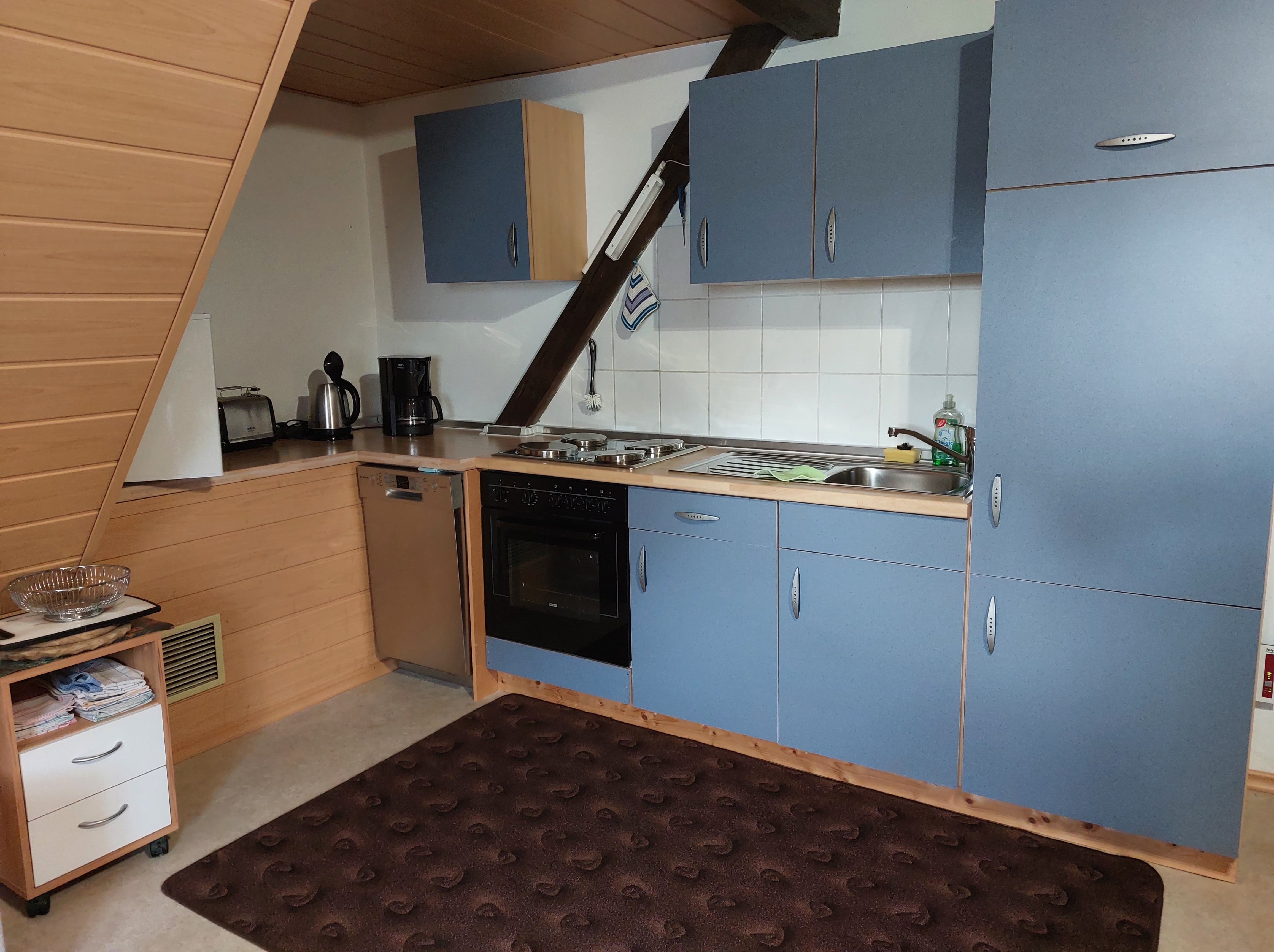Im Wohn- und Essbereich können Sie entspannte Stunden verbringen. Die angrenzende Wohnküche ist mit einer voll ausgestatteten Küchenzeile versehen – inklusive Herd mit Backofen, Kühlschrank, Kaffeemaschine, Wasserkocher und allem, was Sie zum Kochen und Genießen brauchen.