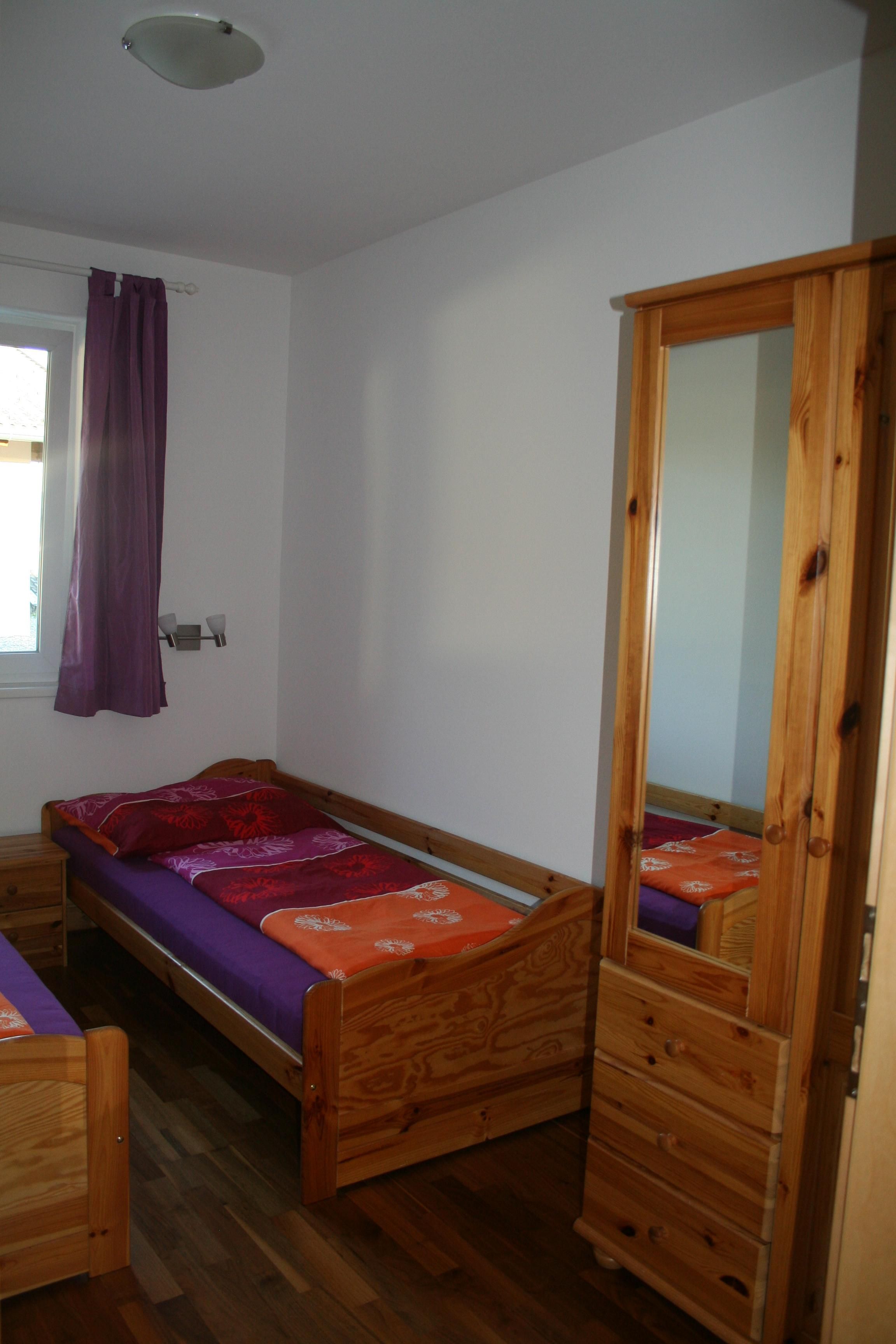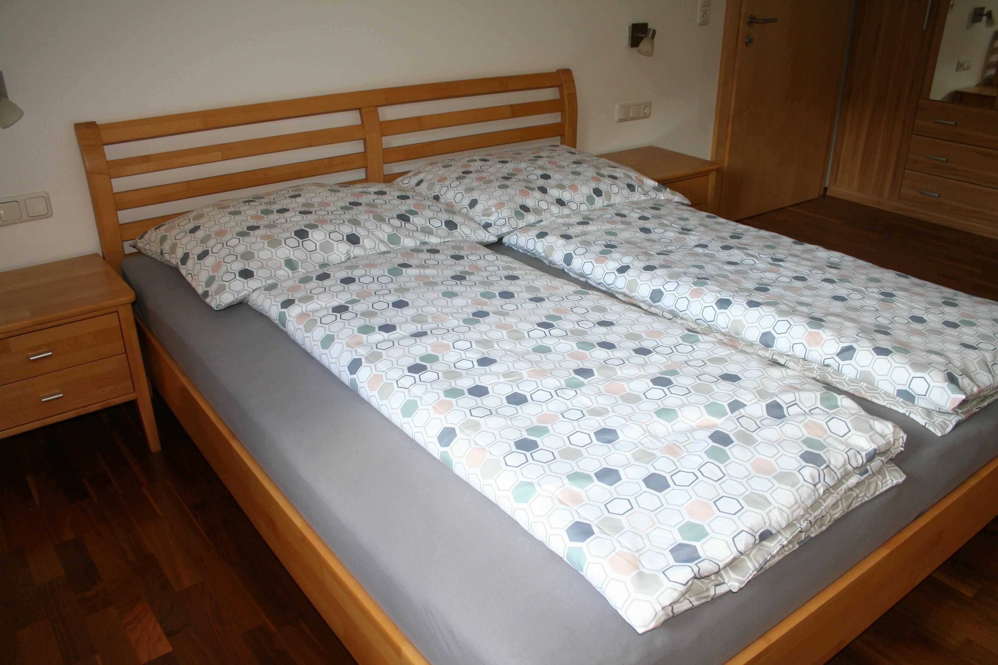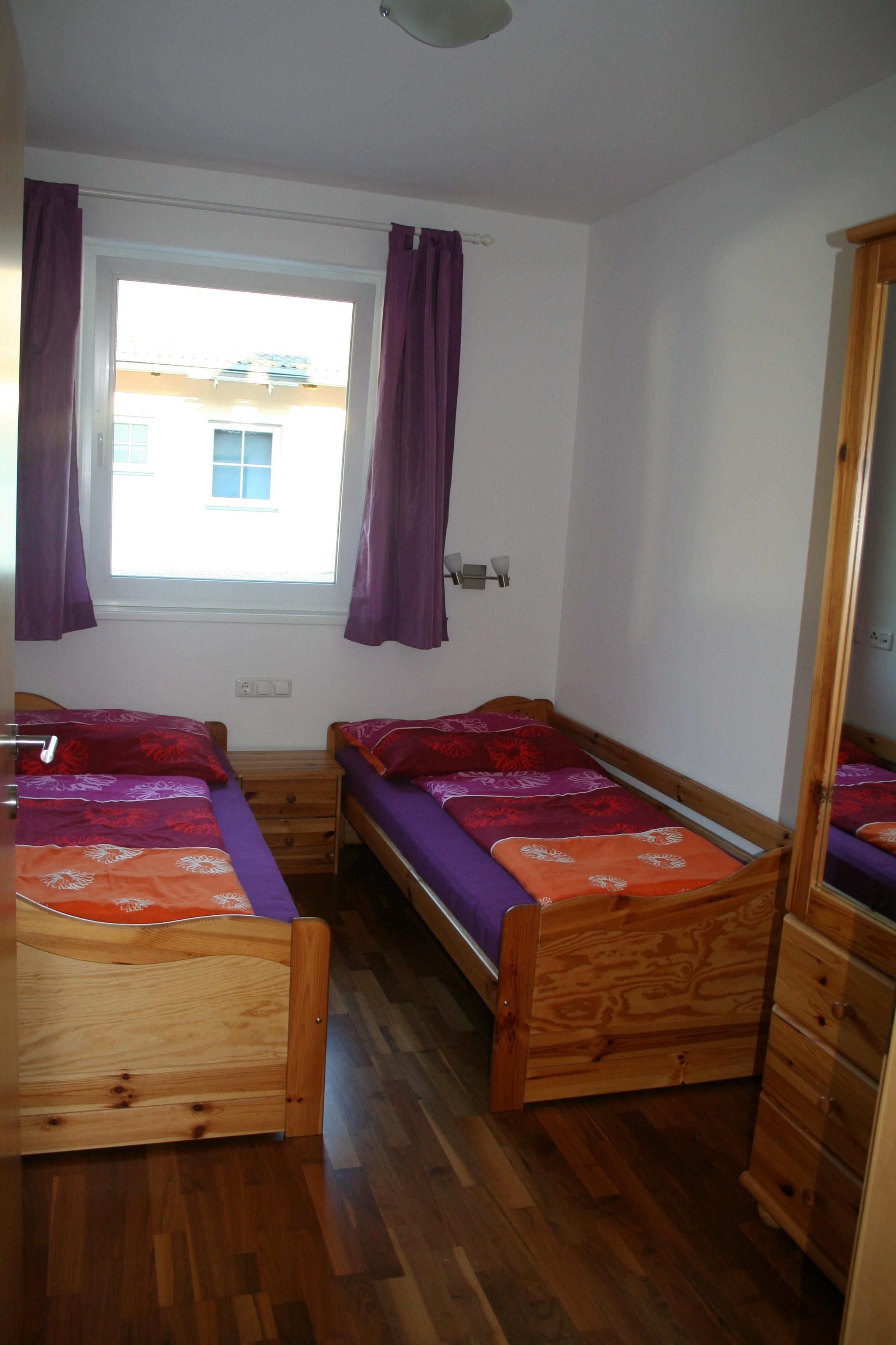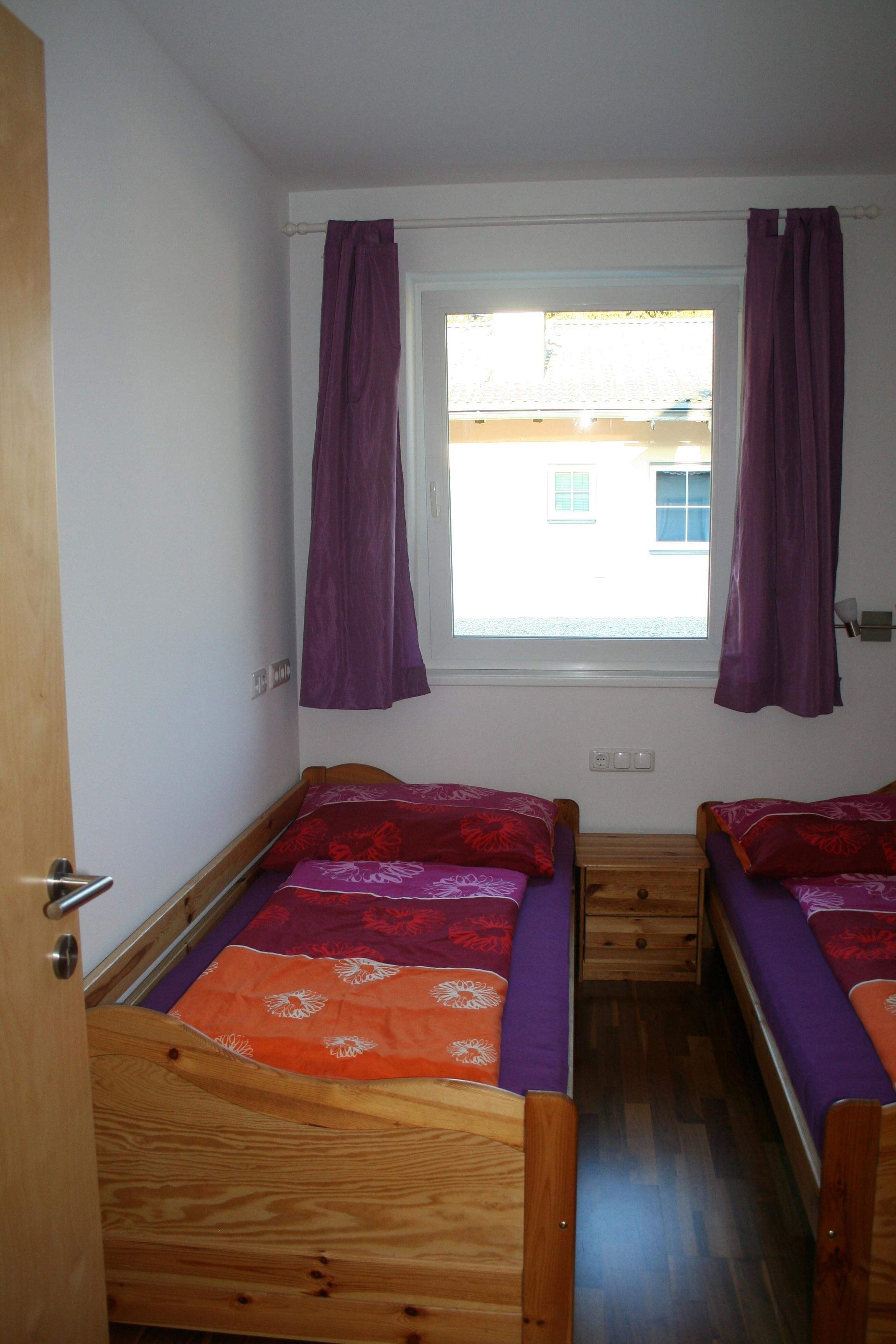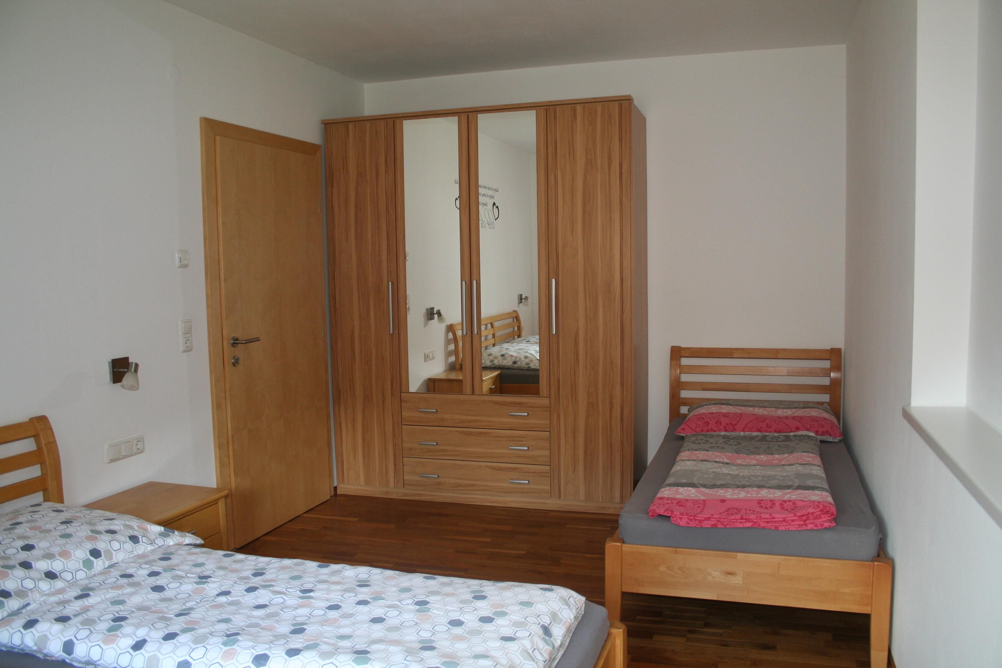 Die Ferienwohnung Bachmann verfügt über ein Schlafzimmer mit Doppelbett und einem Einzelbett und eines mit zwei Einzelbetten.