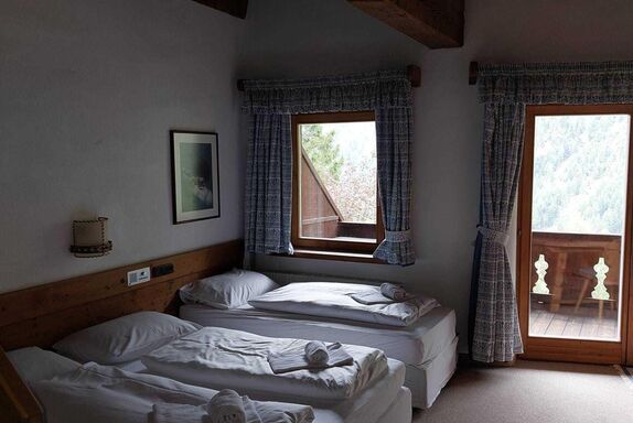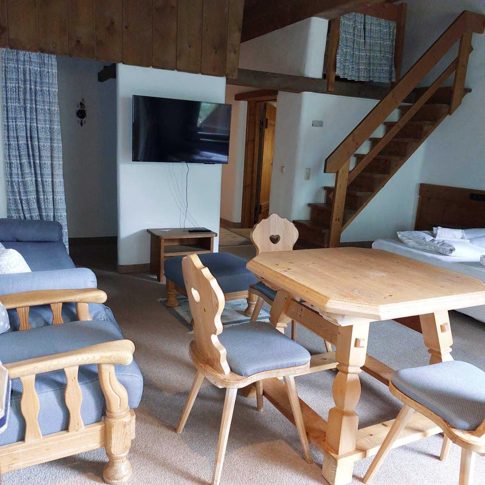 Genießen Sie Ihren Aufenthalt in unserer gemütlichen Wohnung (48m²) im zweiten Stock, die mit viel Liebe zum Detail in einem rustikalen Stil eingerichtet ist. Die Wohnung verfügt über ein Schlafzimmer mit Doppelbett und einem Schlafsofa sowie einem zusätzlichen Einzelbett, welches über eine Treppe erreichbar ist. Ein gemütliches Wohn-/Esszimmer und eine Küche. Das Bad bietet alles, was Sie für Ihren Komfort brauchen. Ein besonderes Highlight ist der Balkon: Von hier aus haben Sie einen fantastischen Blick auf die umliegenden Berge - der perfekte Ort, um den Tag ausklingen zu lassen.
