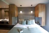 Das Apartment Waage im ersten Stock bietet auf 36 m² Platz für bis zu 4 Personen. Es verfügt über ein Schlafzimmer mit Doppelbett sowie eine Schlafcouch, die ideal für zwei Kinder geeignet ist. Das Schlafzimmer ist mit einem eigenen Badezimmer mit Dusche und WC ausgestattet – für besonderen Komfort und Privatsphäre.