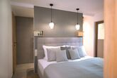 Das großzügige Apartment Wassermann im ersten Stock bietet auf 48 m² Platz für bis zu 5 Personen. Es verfügt über zwei Schlafzimmer mit Doppelbett sowie einer ausziehbaren Couch für eine weitere Person. Jedes Schlafzimmer hat ein eigenes Badezimmer mit Dusche und WC – perfekt für Komfort und Privatsphäre. Die helle Wohnküche ist mit einem gemütlichen Esstisch sowie einem Balkon ausgestattet und verfügt über eine moderne Küche mit E-Herd, Geschirrspüler, Espressomaschine und Mikrowelle.