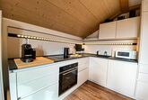 Das separate Schlafzimmer ist mit einem komfortablen Doppelbett ausgestattet. Im hellen, offen gestalteten Wohnbereich stehen zwei Schlafsofas bereit, die sich ideal für Familien mit Kindern oder kleine Reisegruppen eignen. Die moderne Küche ist vollständig ausgestattet und lässt keine Wünsche offen. Eine Nespresso-Maschine steht ebenfalls bereit.