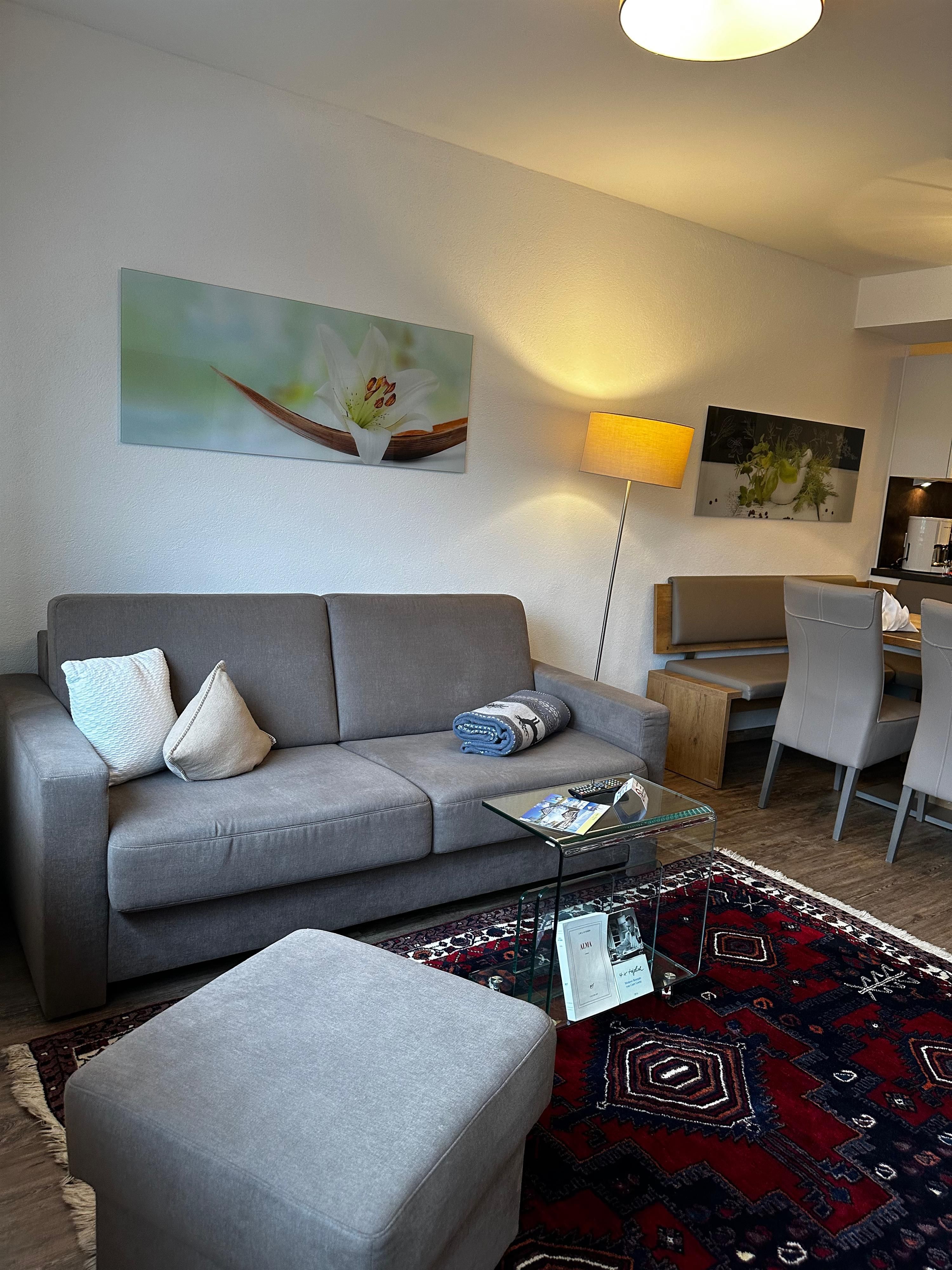 Mit einer Fläche von rund 53 m² bietet das Appartement Platz für bis zu 4 Personen und umfasst ein Wohnzimmer, ein separates Schlafzimmer, eine Küche, ein Badezimmer sowie einen Balkon oder eine Terrasse.