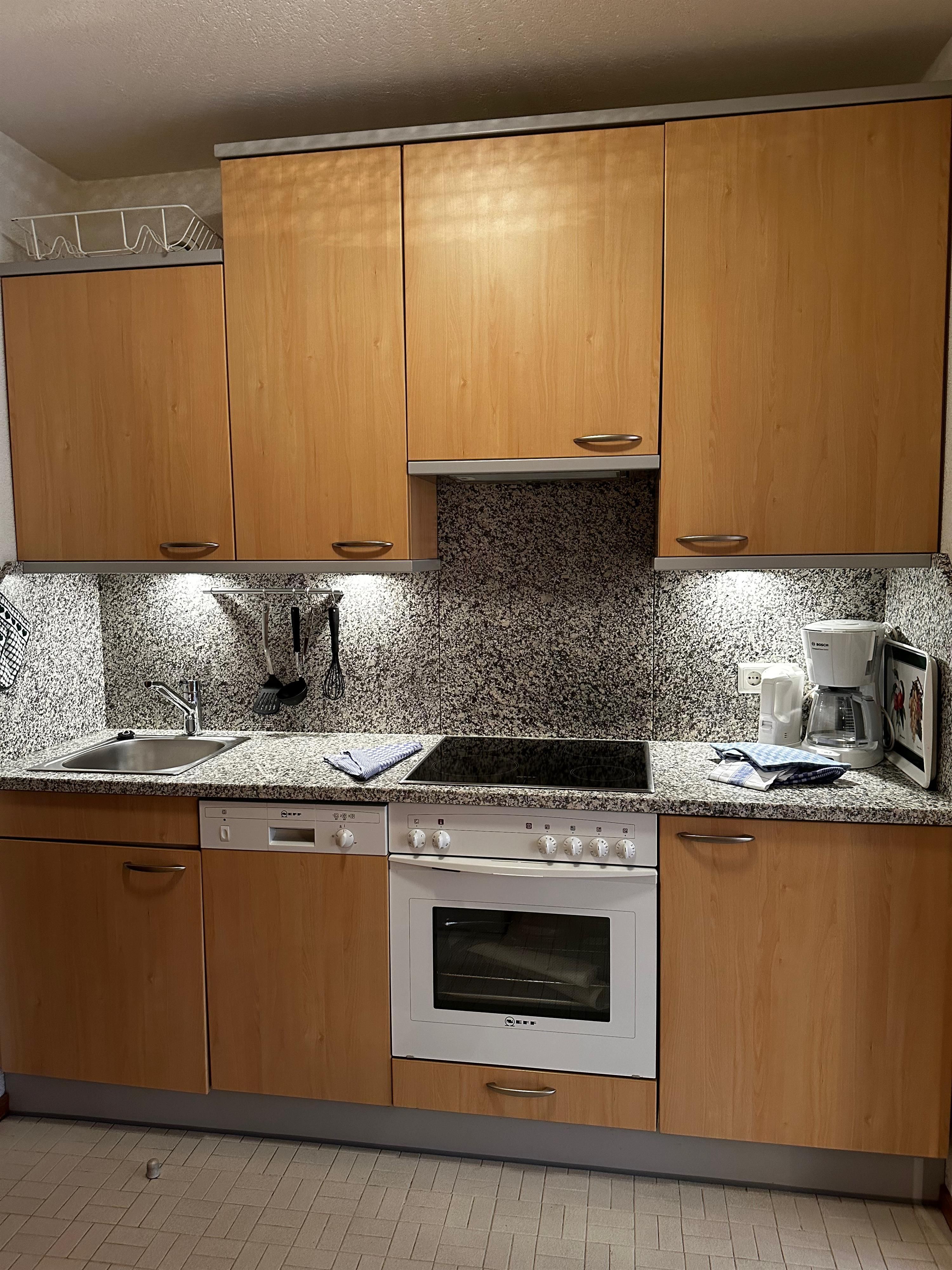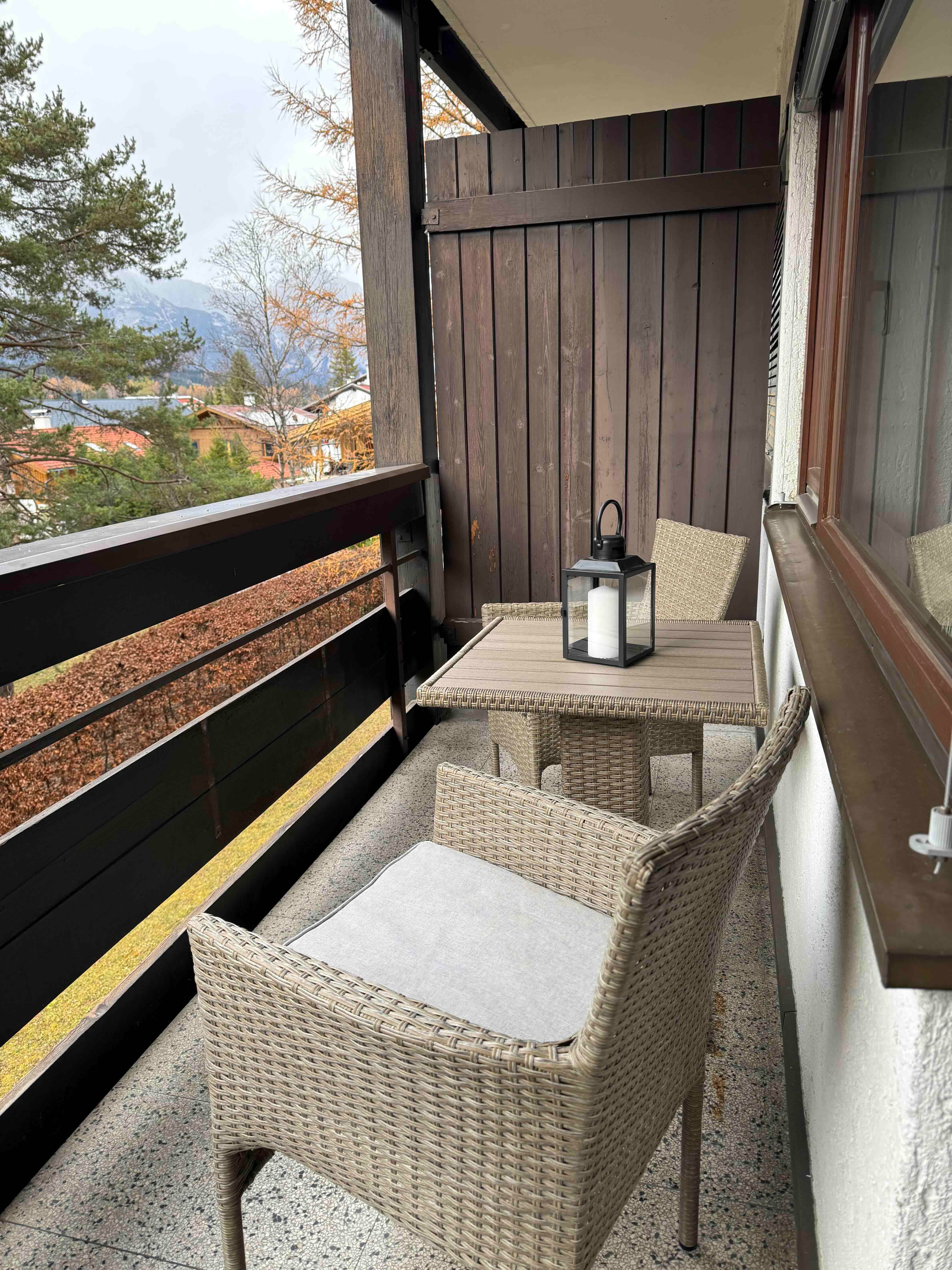 Das etwa 35 m² große Appartement ist ideal für bis zu 2 Personen und bietet einen kombinierten Wohn- und Schlafbereich, eine Küchenzeile, ein Badezimmer und einen Balkon.