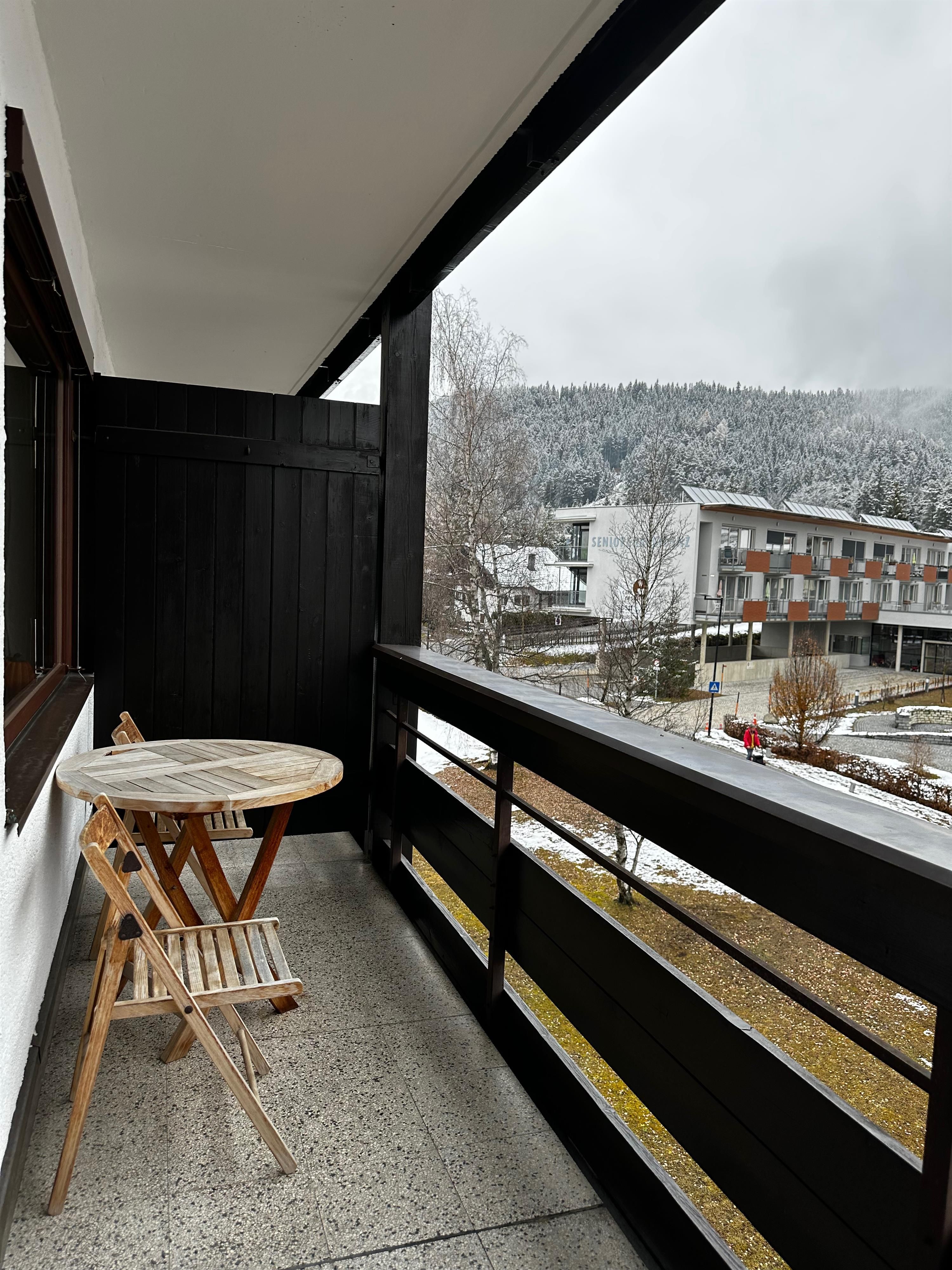 Das etwa 35 m² große Appartement ist ideal für bis zu 2 Personen und bietet einen kombinierten Wohn- und Schlafbereich, eine Küchenzeile, ein Badezimmer und einen Balkon.