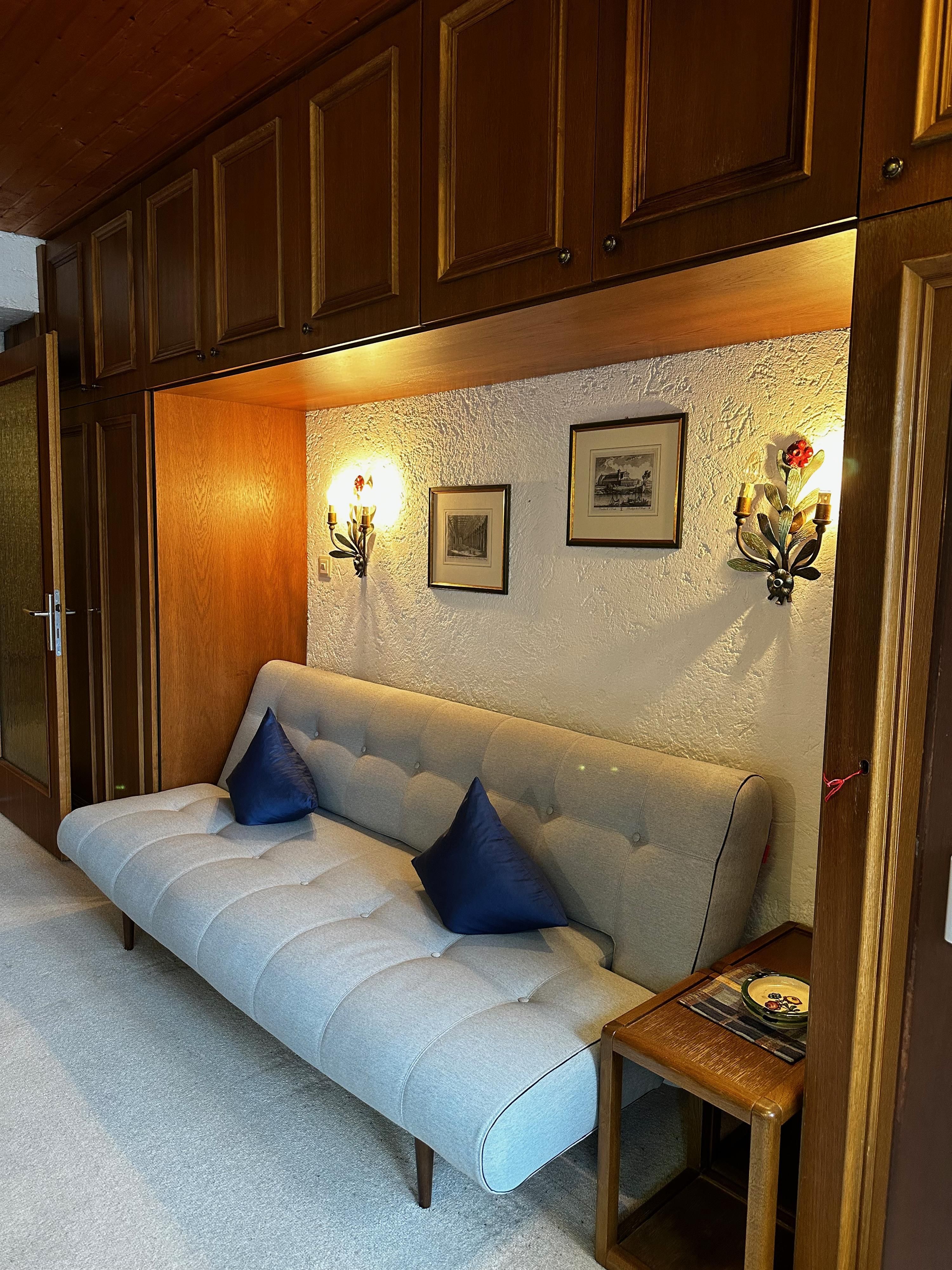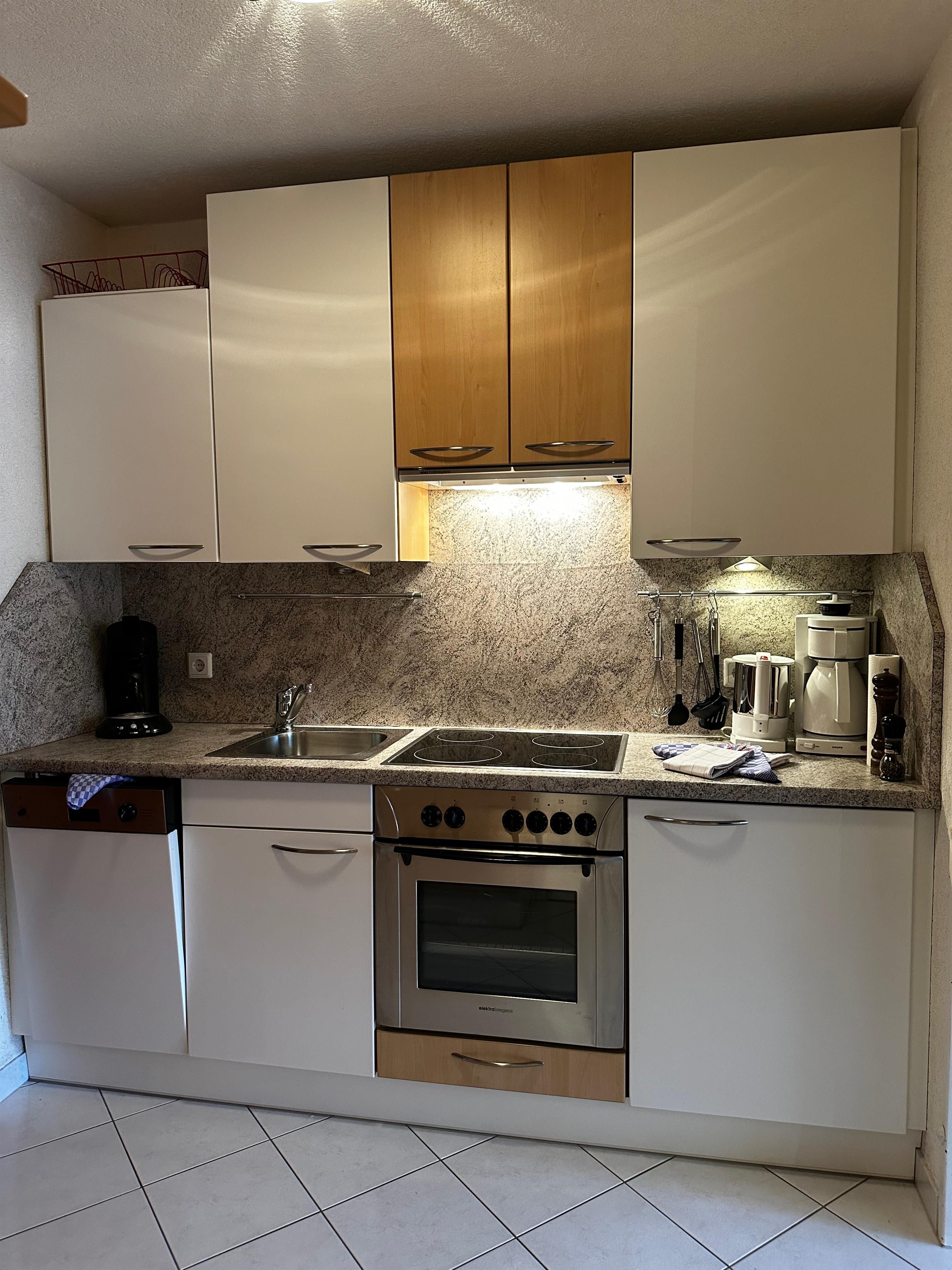 Das etwa 35 m² große Appartement ist ideal für bis zu 2 Personen und bietet einen kombinierten Wohn- und Schlafbereich, eine Küchenzeile, ein Badezimmer und einen Balkon.