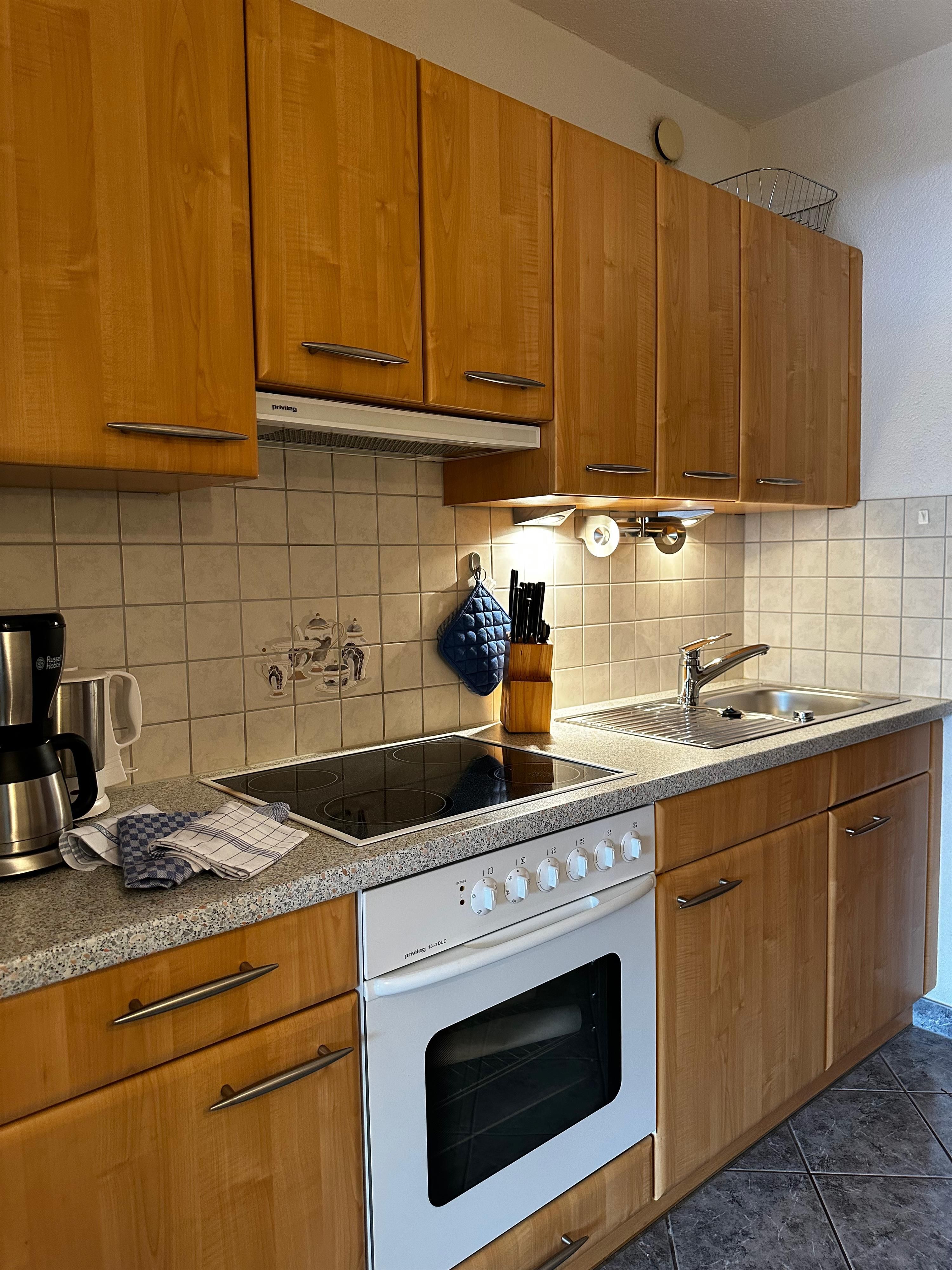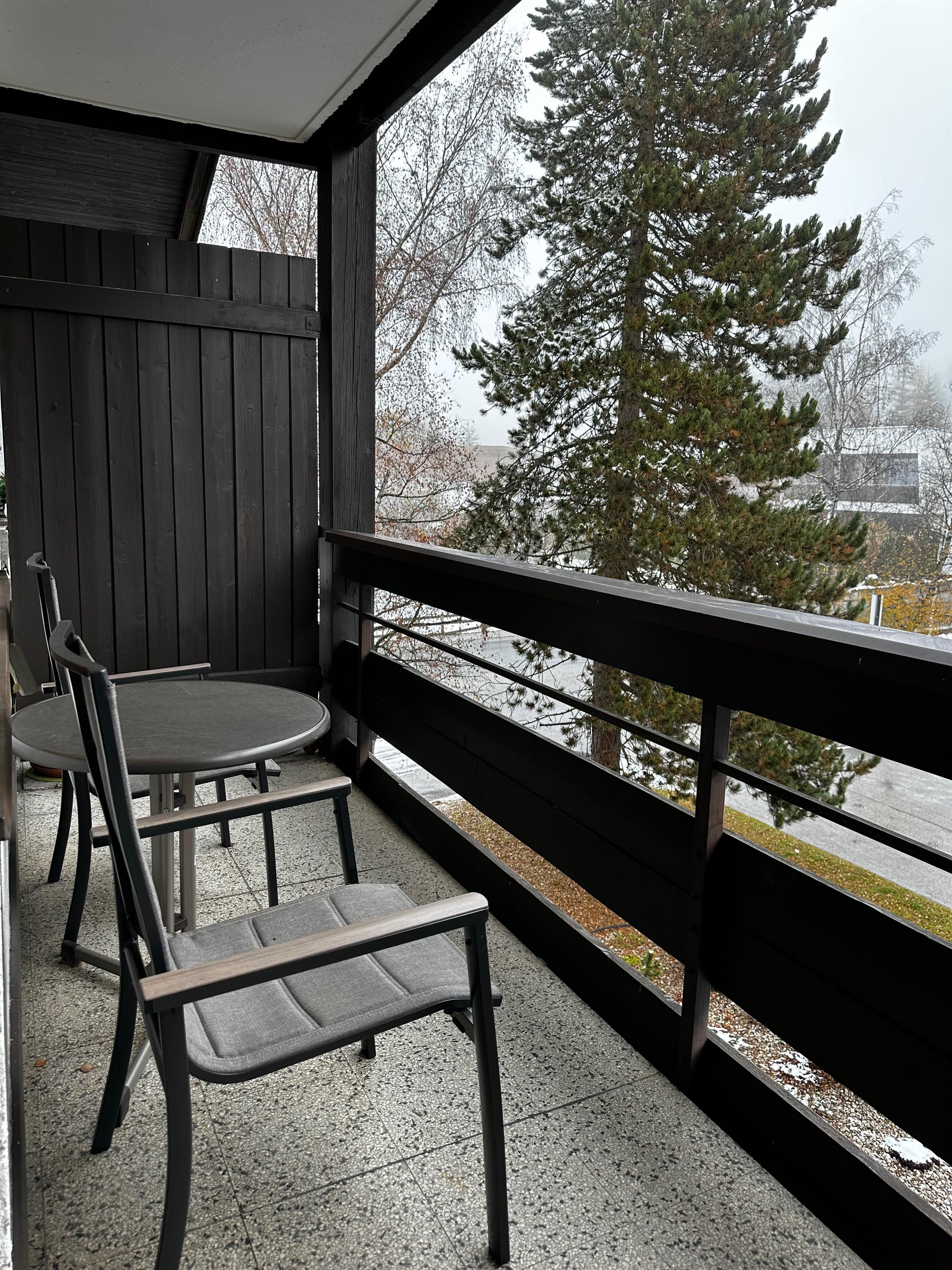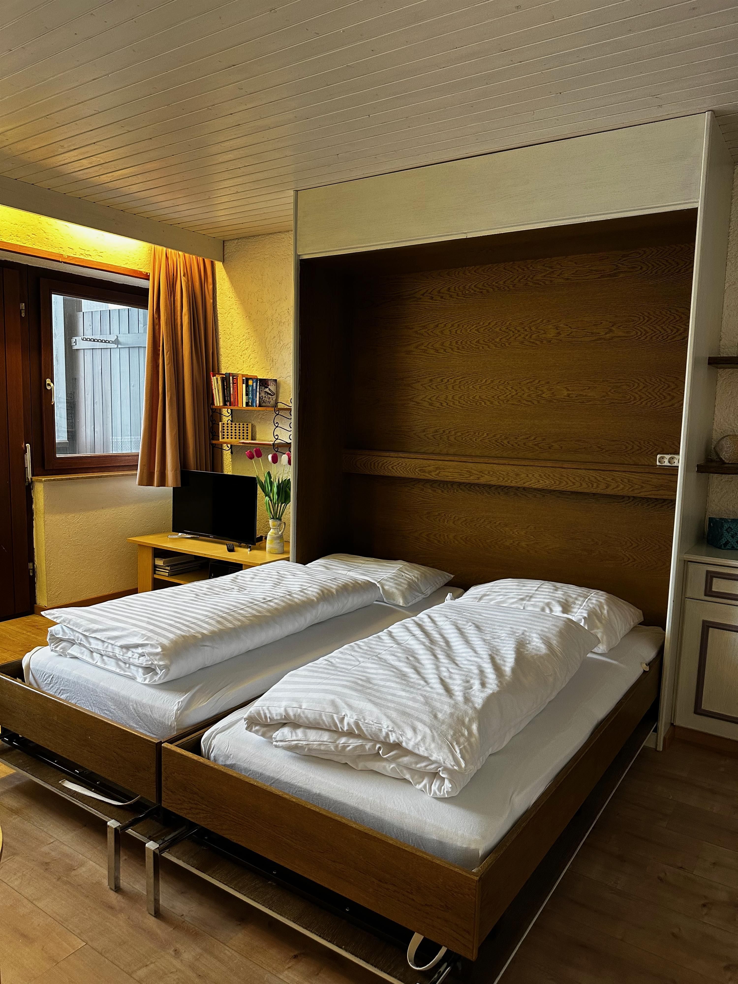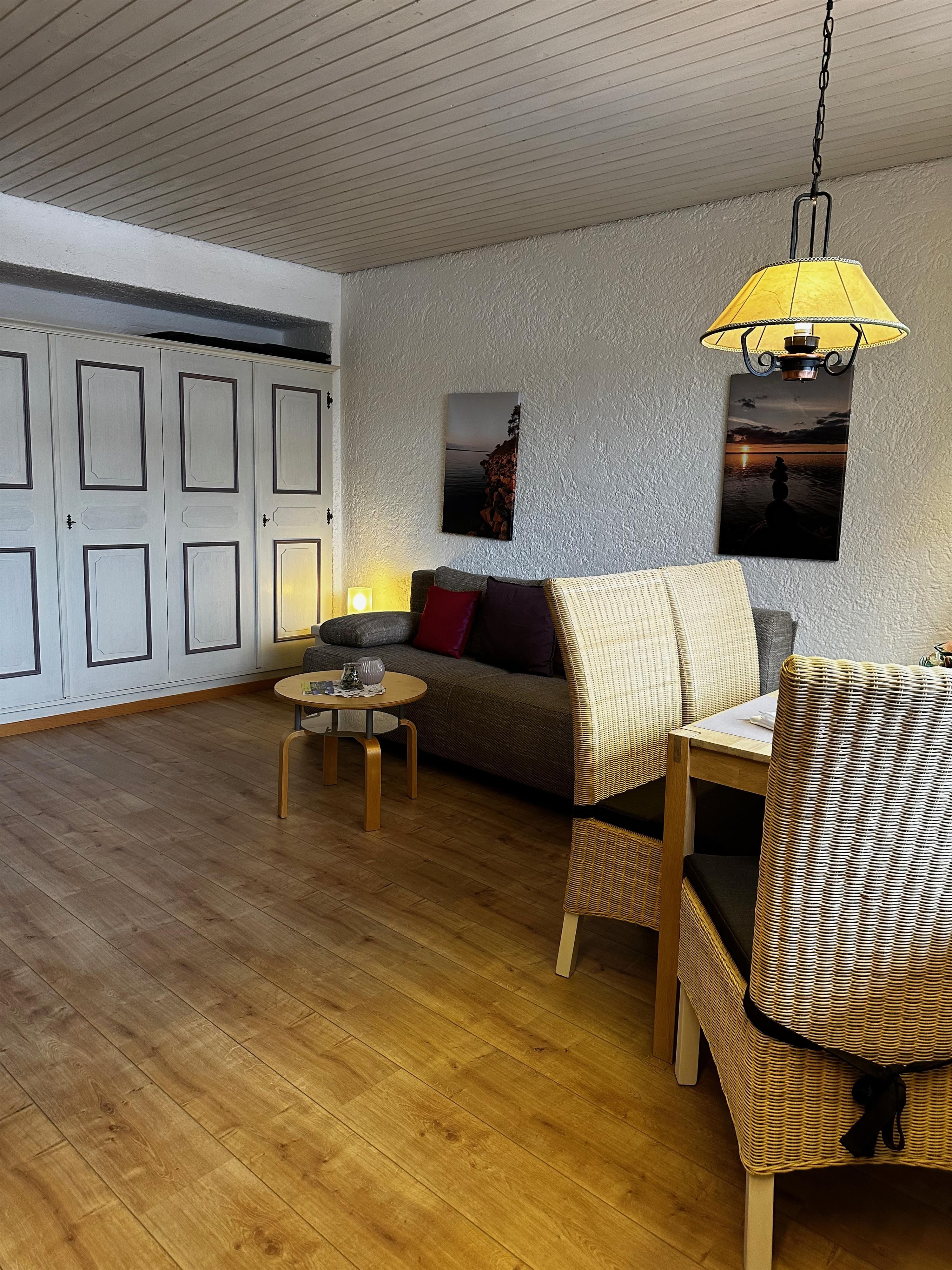 Das etwa 35 m² große Appartement ist ideal für bis zu 2 Personen und bietet einen kombinierten Wohn- und Schlafbereich, eine Küchenzeile, ein Badezimmer und einen Balkon.