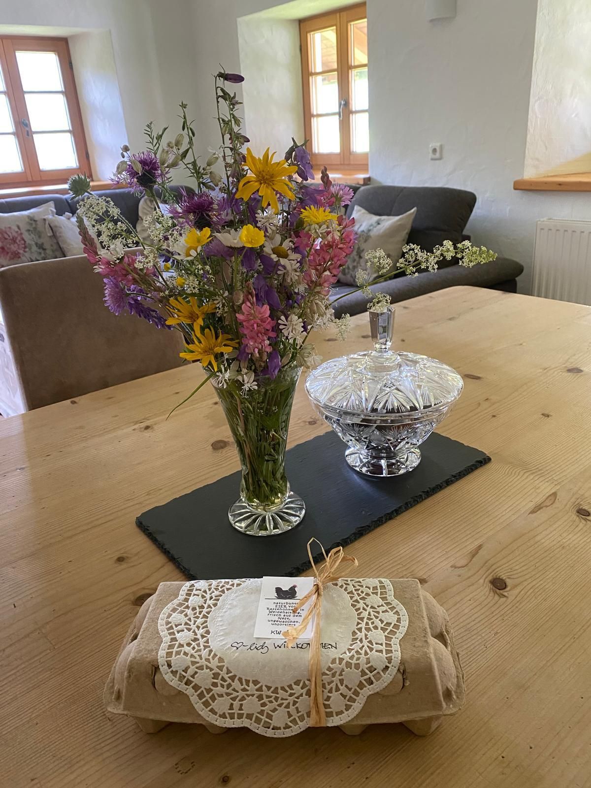 Die Ferienwohnung ist im rustikalen, altbäuerlichen Stil eingerichtet und verfügt über einen herrlichen Ausblick auf die Wiesen und Berge von Achenkirch. In der Wohnung befinden sich ein großes und ein kleines Schlafzimmer, ein Bad, ein weiträumiges Wohnzimmer mit Balkon sowie eine voll ausgestattete Küche mit Essbereich. In der unmittelbaren Umgebung können Sie sich bei verschiedenen Aktivitäten wie zum Beispiel Skifahren, Rodeln oder Snowkiten im Winter bzw. Wandern, Golfen, Segeln oder Surfen im Sommer am Achensee vergnügen. Durch die zentrale Lage des Pulvererhofes ist das nächste Lebenmittelgeschäft, Skilift, der Arzt mit Apotheke, Restaurants und Cafes, Spielplätze, Regiobushaltestelle, Dampferstation sowie der Achensee in wenigen Minuten auch zu Fuß erreichbar. Durch unsere Hühner und Hähne in Weidehaltung kann es vorkommen, dass Sie durch das Krähen unserer Goggl bereits am Morgen liebevoll begrüßt werden.