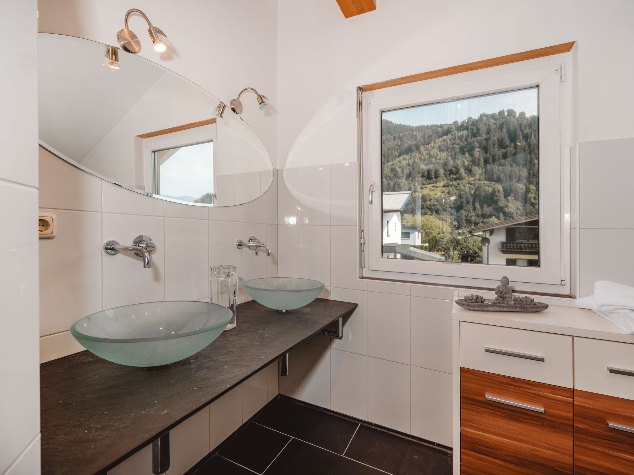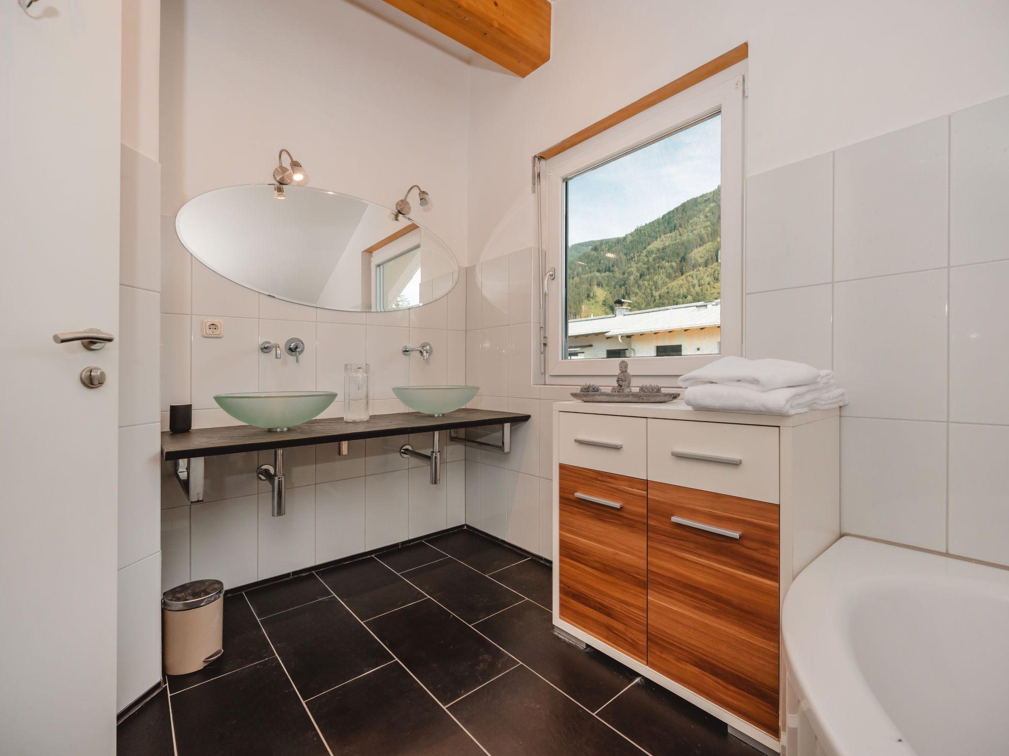 Franz, 5-Zimmer-Haus 170 m2 auf 2 Stockwerken. Geschmackvoll und gemütlich eingerichtet: grosses Wohnzimmer mit Schwedenofen, Esstisch und Sat-TV (Flachbildschirm), CD. 1 Zimmer mit 1 Doppelbett (140 cm, Länge 200 cm), Sat-TV (Flachbildschirm). Grosse Küche (Backofen, Geschirrspüler, 4 Induktionskochplatten, Toaster, Wasserkocher, Mikrowelle, elektrische Kaffeemaschine, Kapseln für die Kaffeemaschine (Nespresso)). Sep. WC. E-Heizung, Fussbodenheizung. Obergeschoss: 2 Doppelzimmer, jedes Zimmer mit 1 Doppelbett (180 cm, Länge 200 cm), Sat-TV (Flachbildschirm). 1 Zimmer mit 2 Doppelbetten (140 cm, Länge 200 cm), Sat-TV (Flachbildschirm). Dusche/WC, Bad/Dusche/WC. Terrasse 20 m2. Terrassenmöbel, Liegestühle. Sehr schöne Panoramasicht auf die Berge und Kitzsteinhorn. Zur Verfügung: Internet (WLAN, gratis). Bitte beachten: Nichtraucher-Unterkunft. 1 Haustier/Hund erlaubt. Rauchmelder.