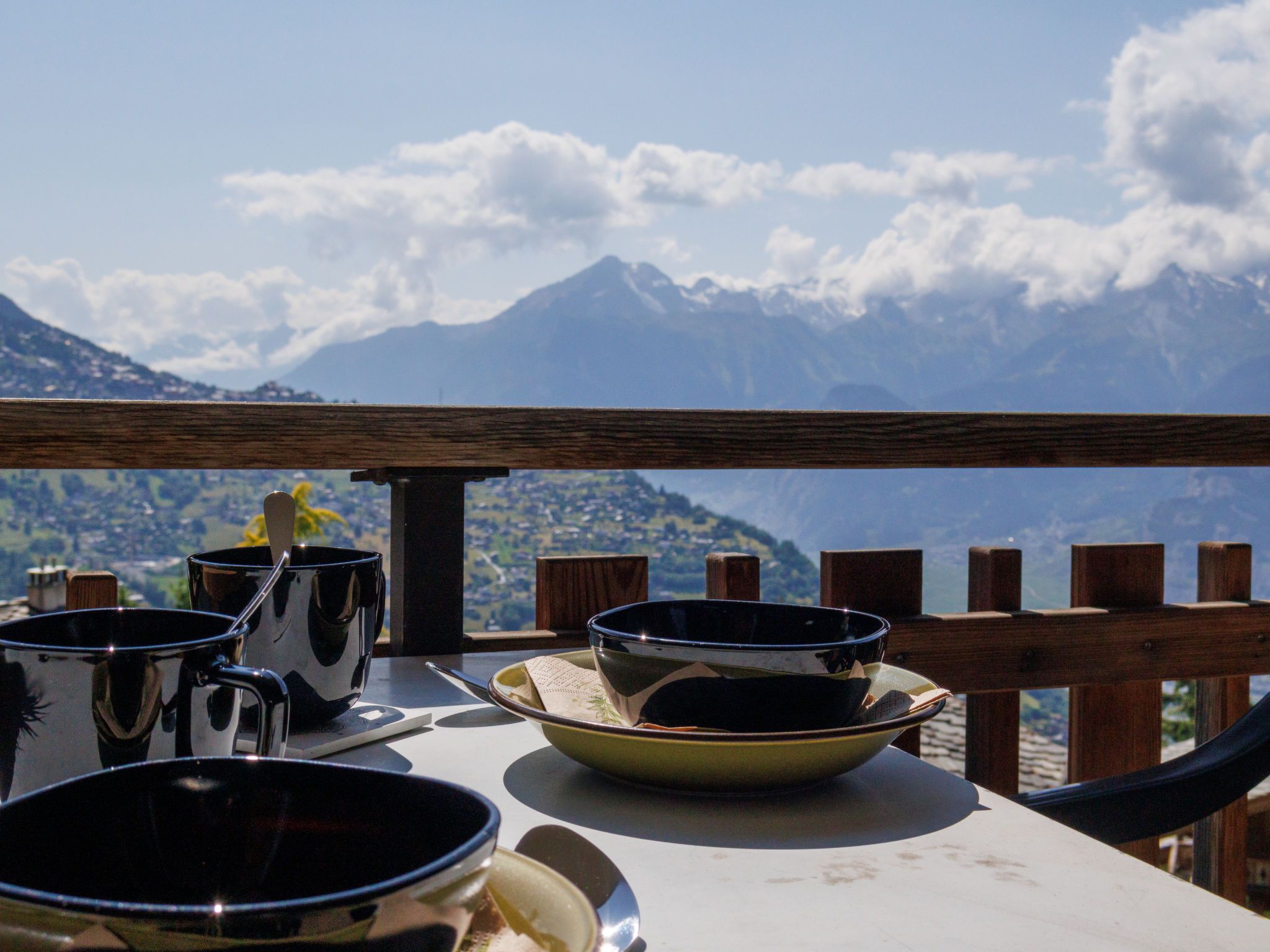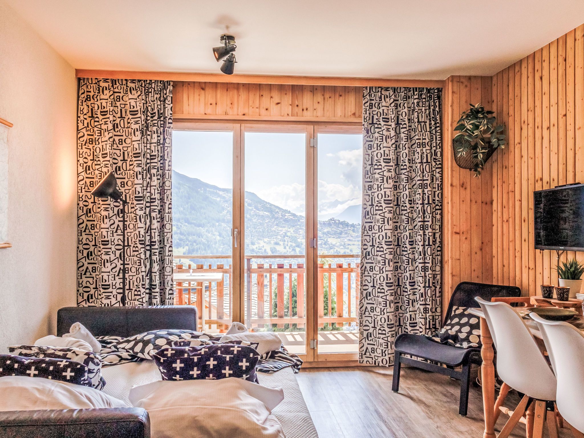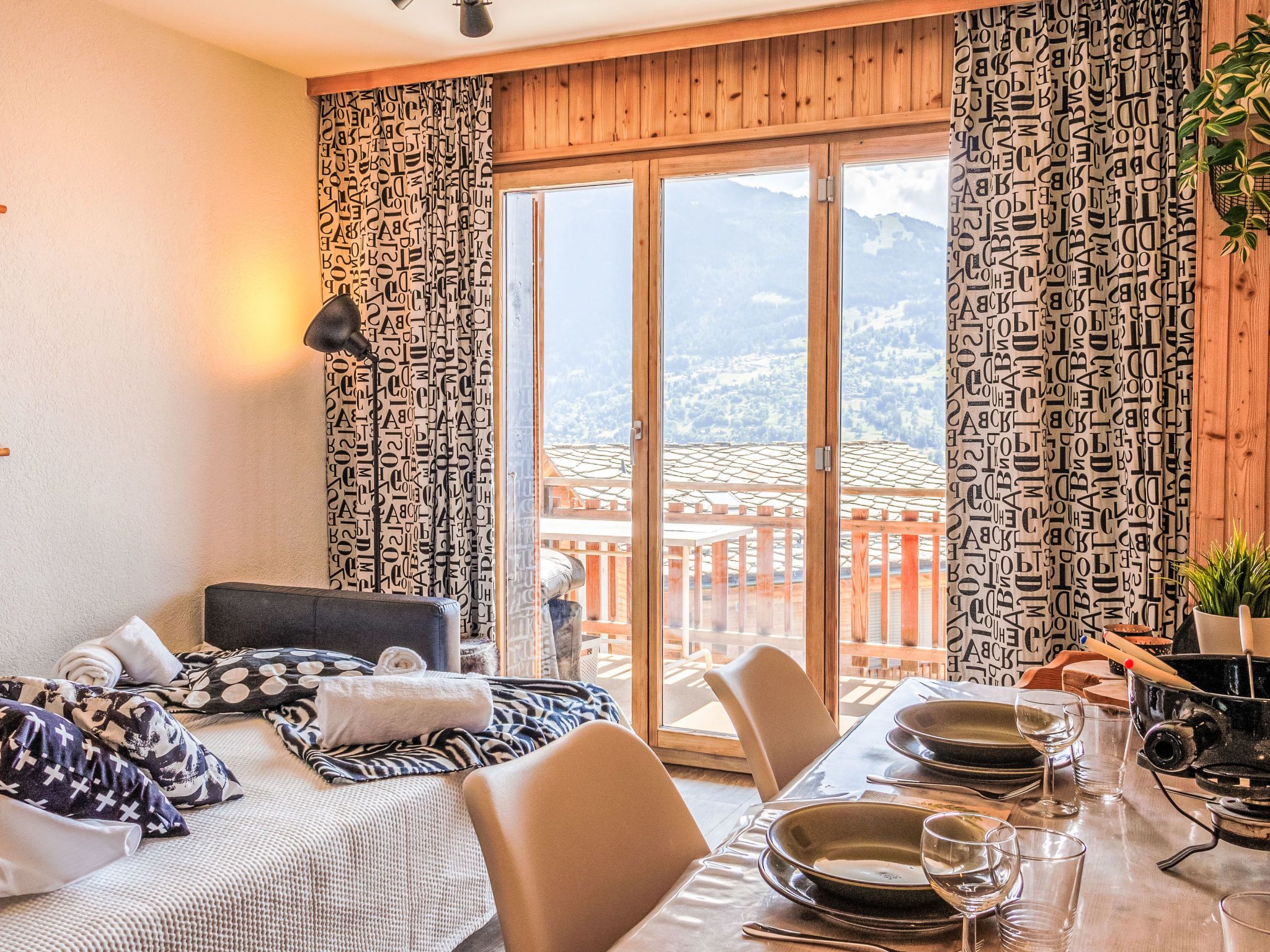 Appartementhaus. Im Ortszentrum, am Hang. Im Hause: Fahrstuhl, Zentralheizung, Waschmaschine (extra), Wäschetrockner (zur Mitbenutzung, extra). Im Winter bitte Schneeketten mitbringen. Öffentliches Parkhaus in 600 m, extra. Einkaufsgeschäft, Restaurant 100 m, Bäckerei 200 m, Bushaltestelle Veysonnaz, station 450 m, Bahnstation Gare de Sion 14 km, Hallenbad 50 m. Tennis 400 m, Gondelbahn 650 m, Skibushaltestelle 100 m. Bekannte Skigebiete sind gut erreichbar: Les 4 Vallées - Veysonnaz 650 m. Bitte beachten: Gratis Skibus.