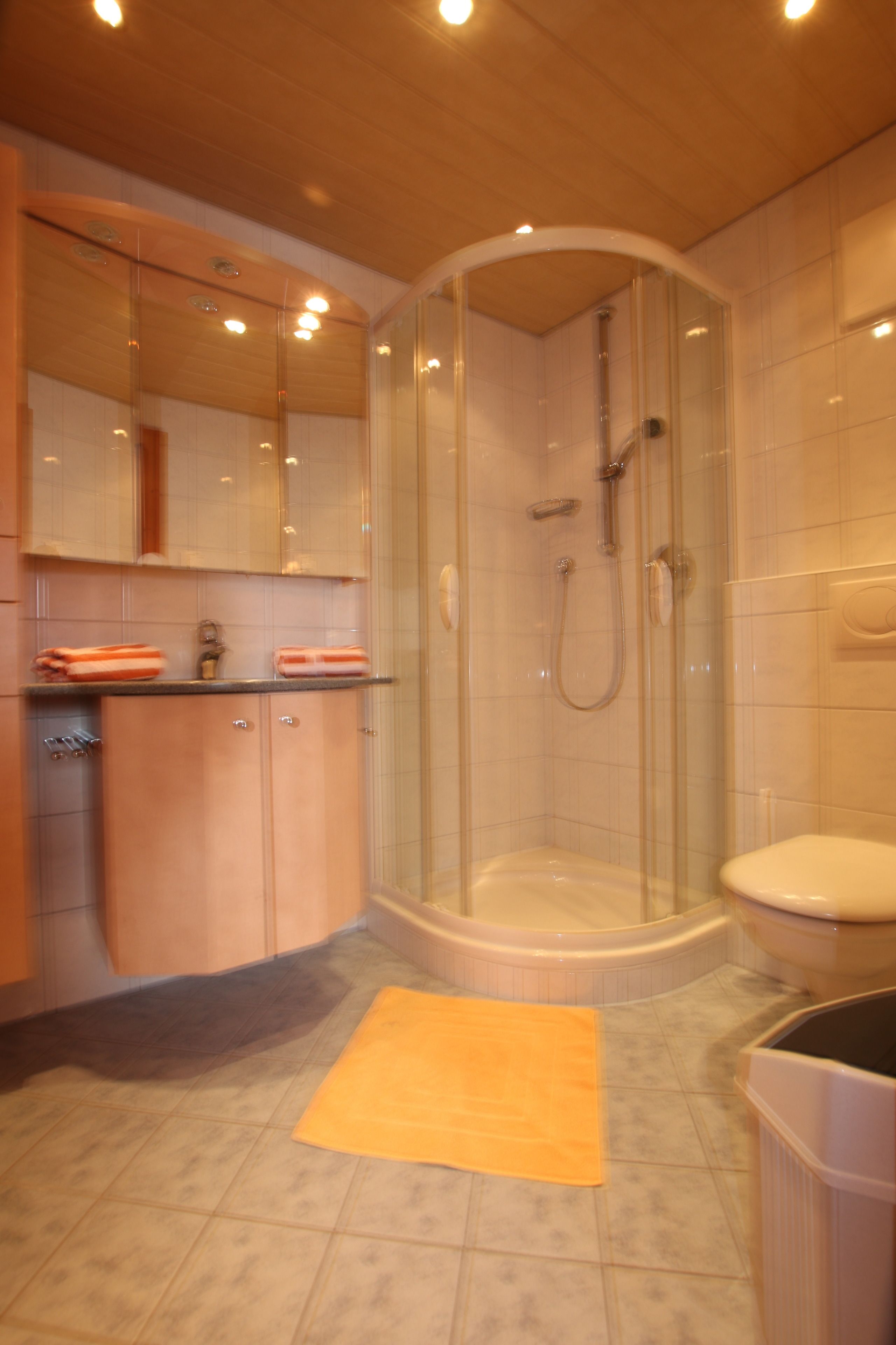 Küche (Geschirrspüler, Elektroherd und Backofen, Mikrowelle, Toaster, Wasserkocher und Kühlschrank), separates Ess-/Wohnzimmer (Couch, Sat-TV und Balkon), Doppelbettzimmer (Radio, Wecker, Dusche/WC, Fön und Balkon.).Auf Wunsch täglich frische Brötchen und Milch!