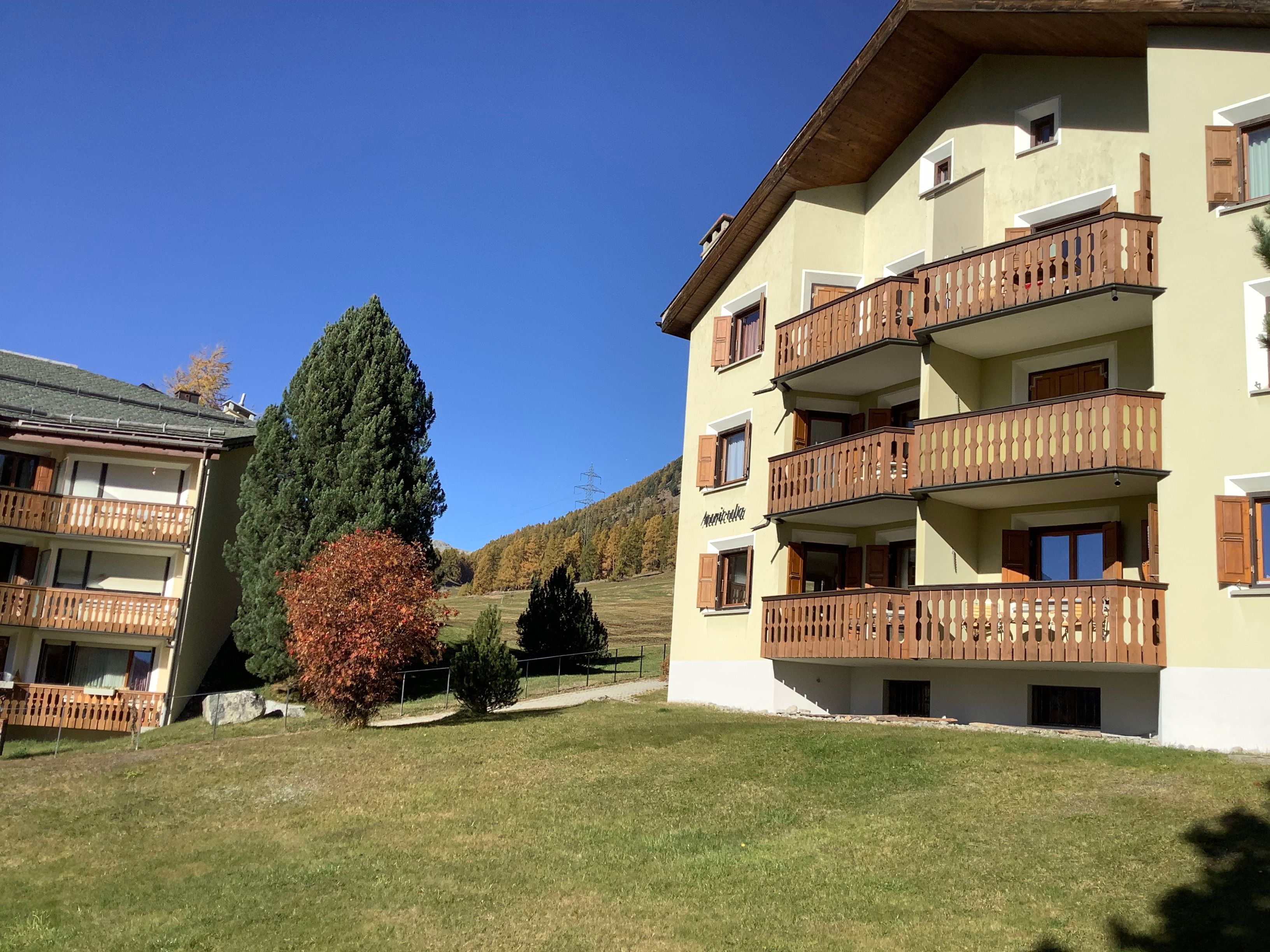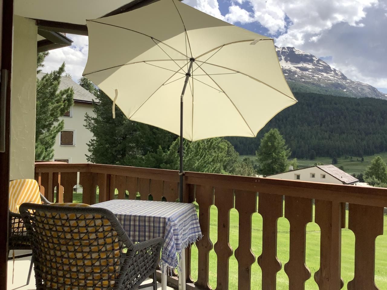 Erleben Sie das idyllische Engadin in unserer charmanten und sonnigen 2-Zimmerwohnung im Hochparterre, die ideal für Sommer- und Winterausflüge ist. Profitieren Sie von kostenlosen Karten für den öffentlichen Verkehr in dieser traumhaften Region, und genießen Sie den Komfort unseres kostenfreien WLANs. Die Wohnung bietet einen atemberaubenden Südbalkon mit einer 180-Grad-Sicht in Richtung Celerina, St. Moritz und Rosegtal, wo Ruhe und Erholung garantiert sind.