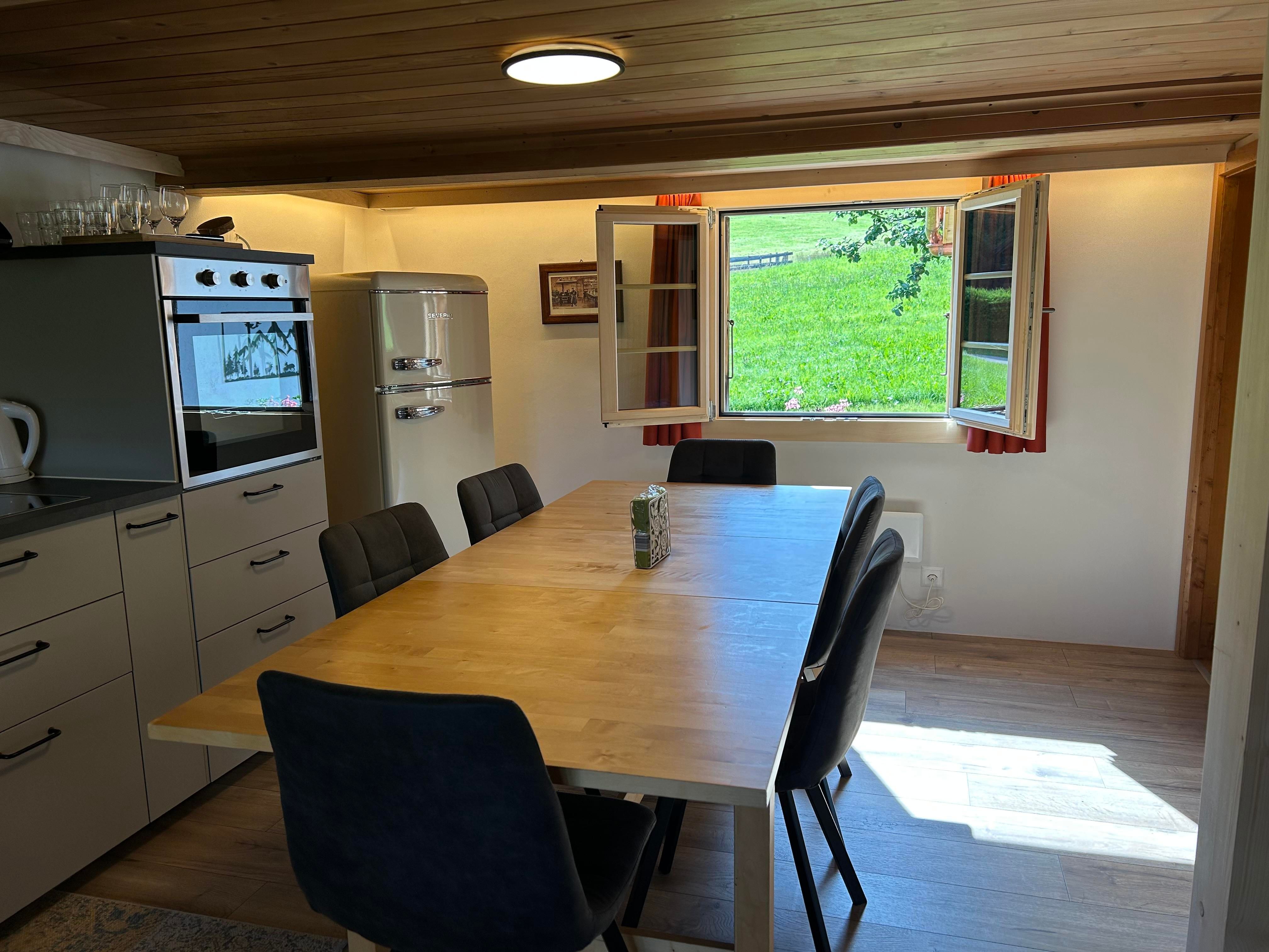 Entspannen sie sich abends vor dem Schwedenofen oder geniessen Sie die frische Bergluft auf dem Balken und auf der Terrasse. Wir bieten Platz für 1-6 Personen und eine vollausgestattete Küche, um Ihr Aufenthalt noch angenehmer zu gestalten.