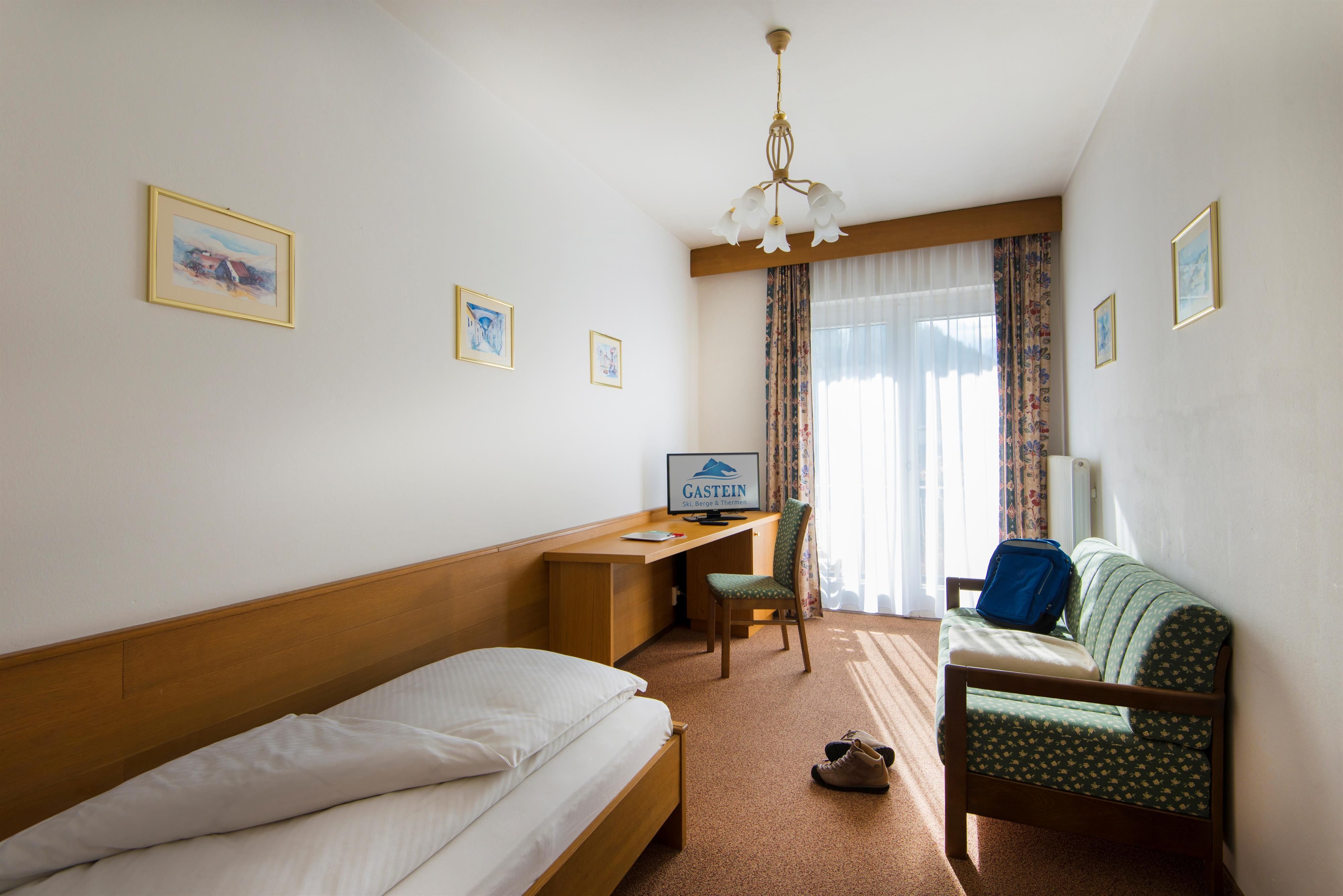 Unser Basic Einzelzimmer ist ideal für Alleinreisende, die einen komfortablen Aufenthalt suchen. Es bietet ein gemütliches Einzelbett und ein eigenes Bad mit Dusche oder Badewanne. Genießen Sie die Aussicht auf die Berge oder nutzen Sie den Arbeitsbereich im Zimmer, um produktiv zu bleiben. Buchen Sie jetzt Ihr Basic Einzelzimmer und erleben Sie einen angenehmen Aufenthalt in Bad Hofgastein.