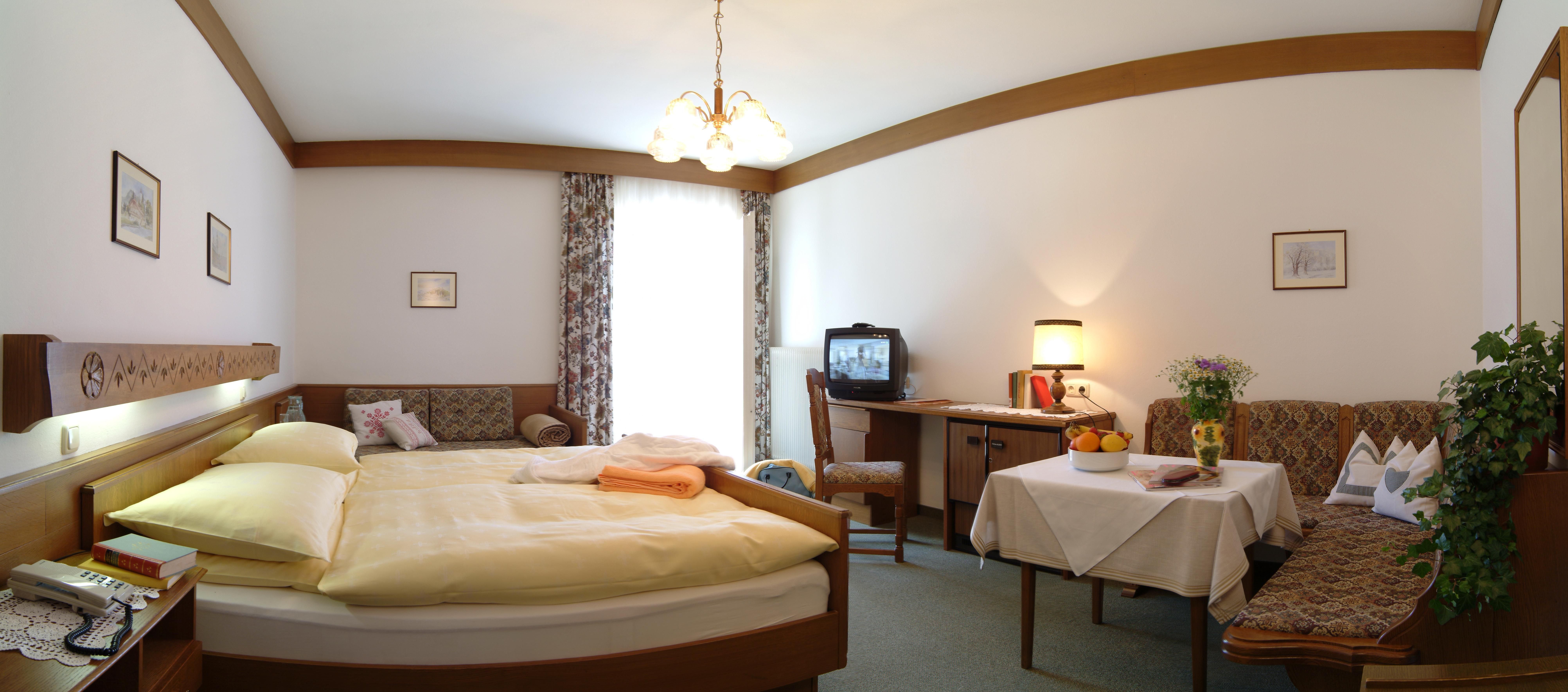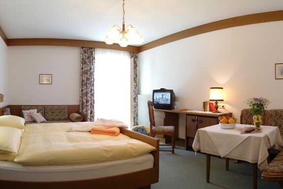 Erleben Sie einfachen Komfort in unserem Basic Dreibettzimmer, das mit extra viel Platz und Südlage überzeugt. Das großzügige Zimmer bietet ein komfortables Doppelbett und ist ideal für Paare oder kleine Familien, denn auf Wunsch kann ein zusätzliches Bett für eine dritte Person bereitgestellt werden. Jedes Basic Dreibettzimmer verfügt über ein eigenes Bad in dem Sie sich entspannen und erfrischen können.