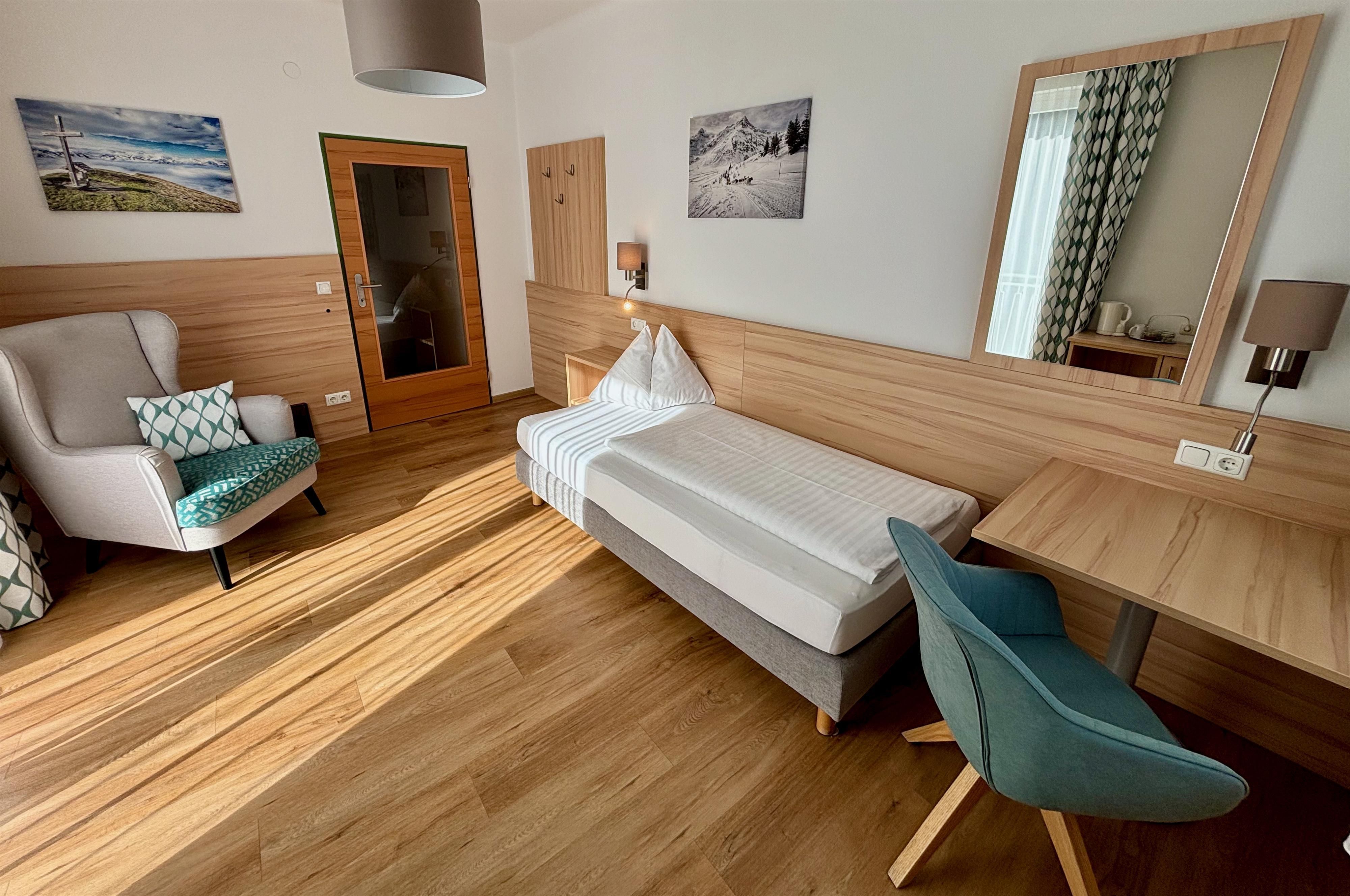 Unser Komfort Einzelzimmer bietet eine perfekte Mischung aus Gemütlichkeit und Funktionalität. Ausgestattet mit einem bequemen Einzelbett, einem eigenen Badezimmer, ist dieses Zimmer ideal für Alleinreisende, die einen entspannten Aufenthalt mit mehr Platz suchen. Genießen Sie die herrliche Aussicht auf die Berge oder nutzen Sie den praktischen Arbeitsbereich, um produktiv zu bleiben. Buchen Sie jetzt Ihr Komfort Einzelzimmer und genießen Sie einen unvergesslichen Aufenthalt in der Friedrichsburg.