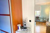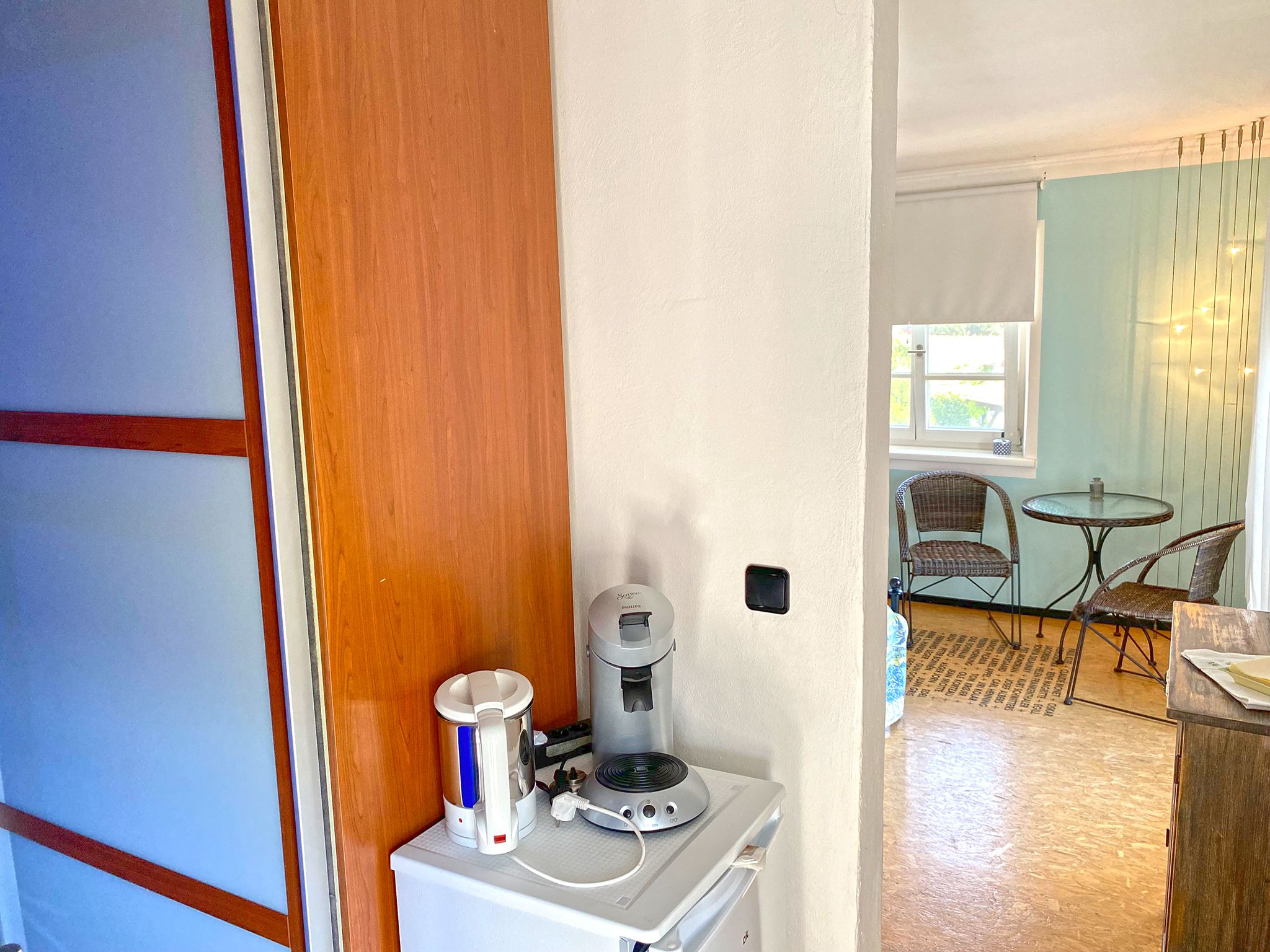 Das Appartement befindet sich im 1. Stock und bietet Platz für 2 Personen. Hier steht Ihnen ein großes Doppelbett zur Verfügung. Es hat einen schönen Balkon mit Bergblick, auf dem es auch eine Sitzgelegenheit gibt. Bitte beachten Sie, dass es im Appartement KEINE Kochmöglichkeit gibt. Es sind lediglich Kühlschrank, Kaffeemaschine und Besteck/Geschirr vorhanden, sodass Sie kleinere mitgebrachte Speisen genießen können. In der nahen Umgebung befinden sich einige Frühstücksmöglichkeiten und Restaurants, die Sie auch zu Fuß in wenigen Minuten erreichen. Das Badezimmer verfügt über eine Dusche und WC. Bitte beachten Sie, dass die Badewanne NICHT zur Verfügung steht.