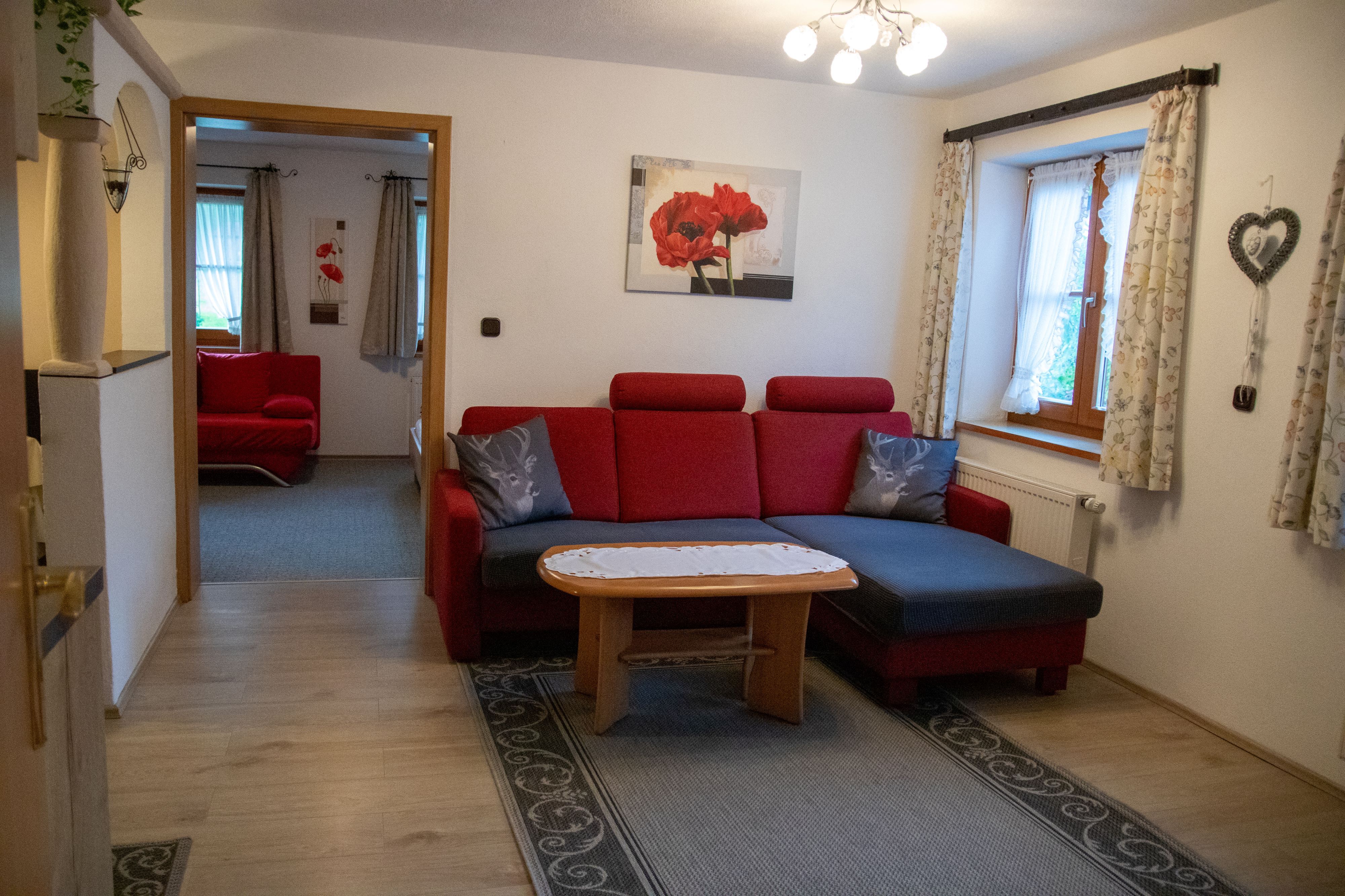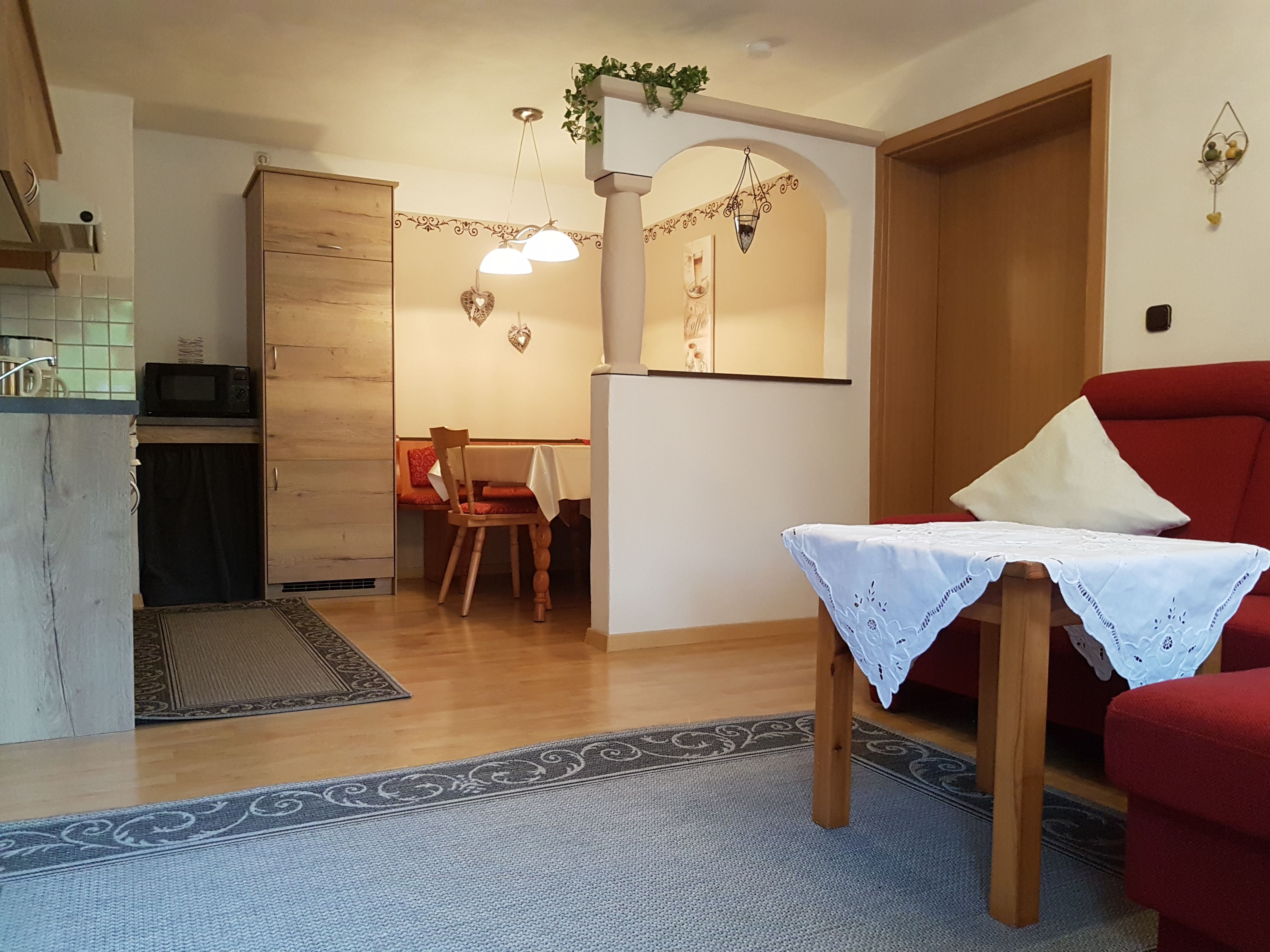 Die Wohnung im 1.Stock bietet auf 65qm ausreichend Platz für ein komfortables Wohnen. Sie verfügt über zwei Schlafzimmer,eine Wohnküche,ein Badezimmer/WC,ein Balkon und dazu eine Überdachte Terrasse mit Liegewiese laden zum Entspannenim freien ein. Die Liebevolle Einrichtung der Wohnung sorgt für eine gemütliche und einladende Atmosphäre. Ideal für Familien oder Paare, die Wert auf Stiel und Komfort legen.