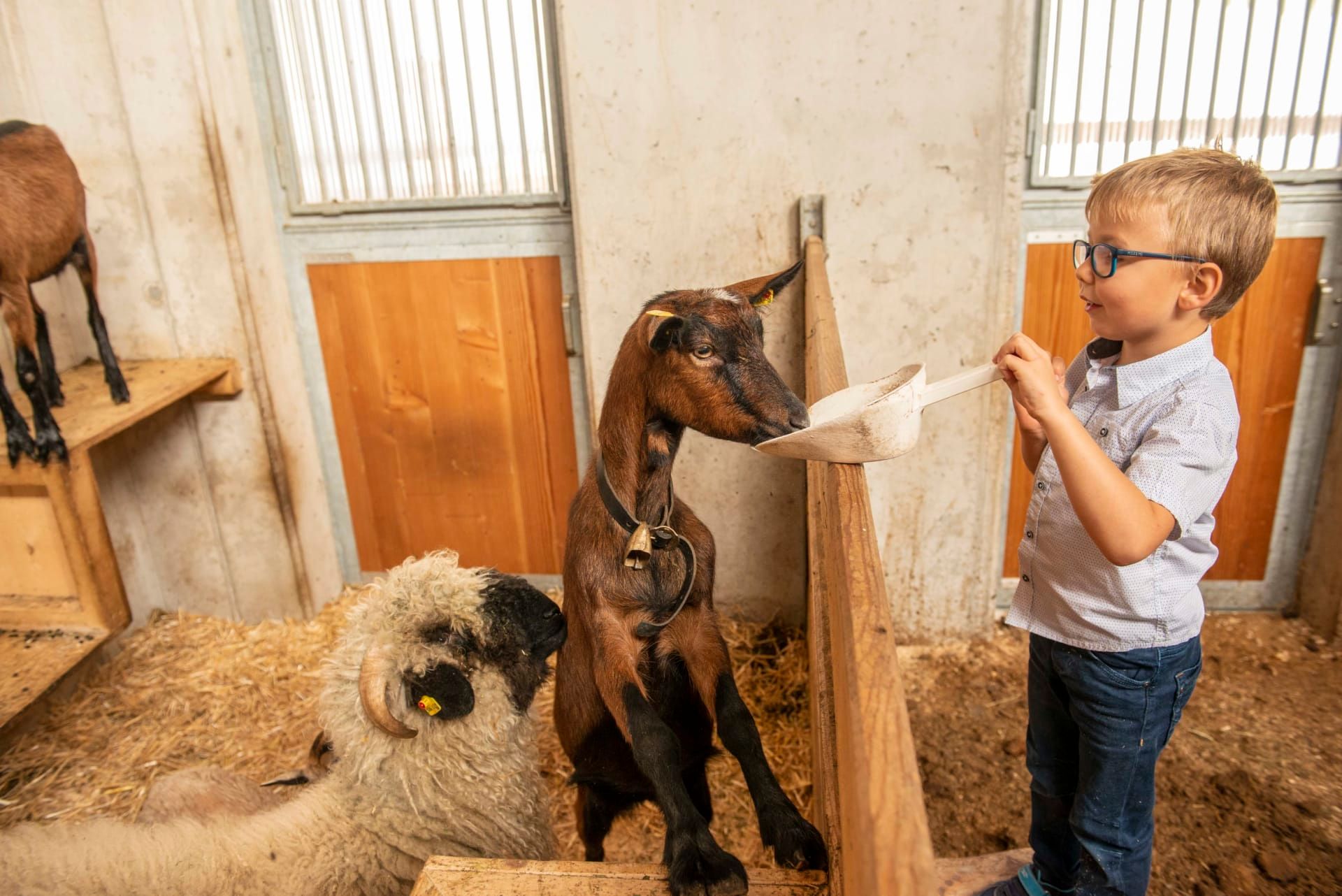 Natürlich dürfen die Kinder auch beim Tiere füttern mithelfen, unsere Tiere freuen sich sicher auf einen lustigen Apres Ski mit Ihren Kleinen im Stall !