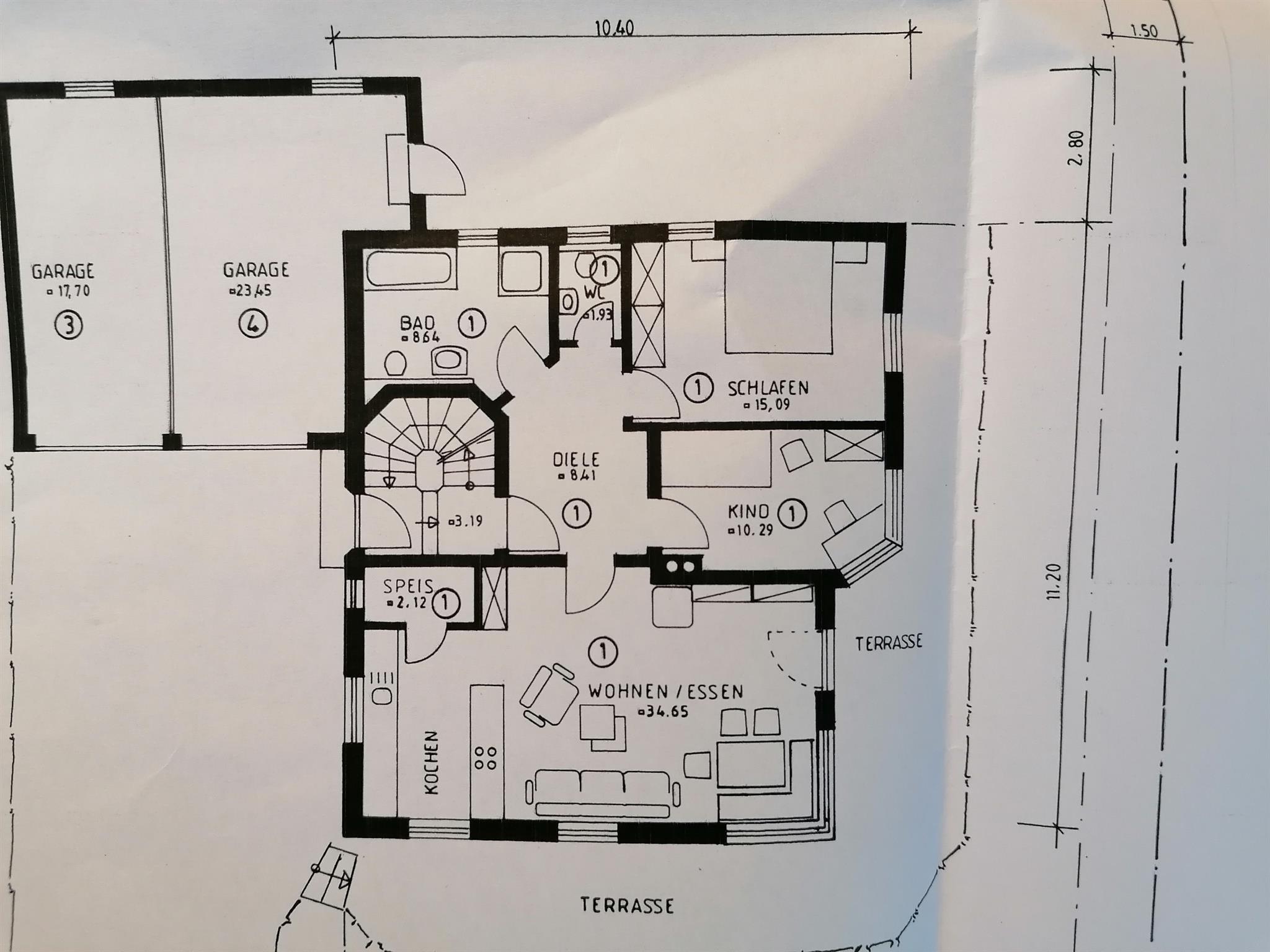 - Eigene Garage mit Torantrieb per Funk , für KFZ bis 2m Höhe , Platz für Ihre Sportgeräte , Kinderwagen ,
