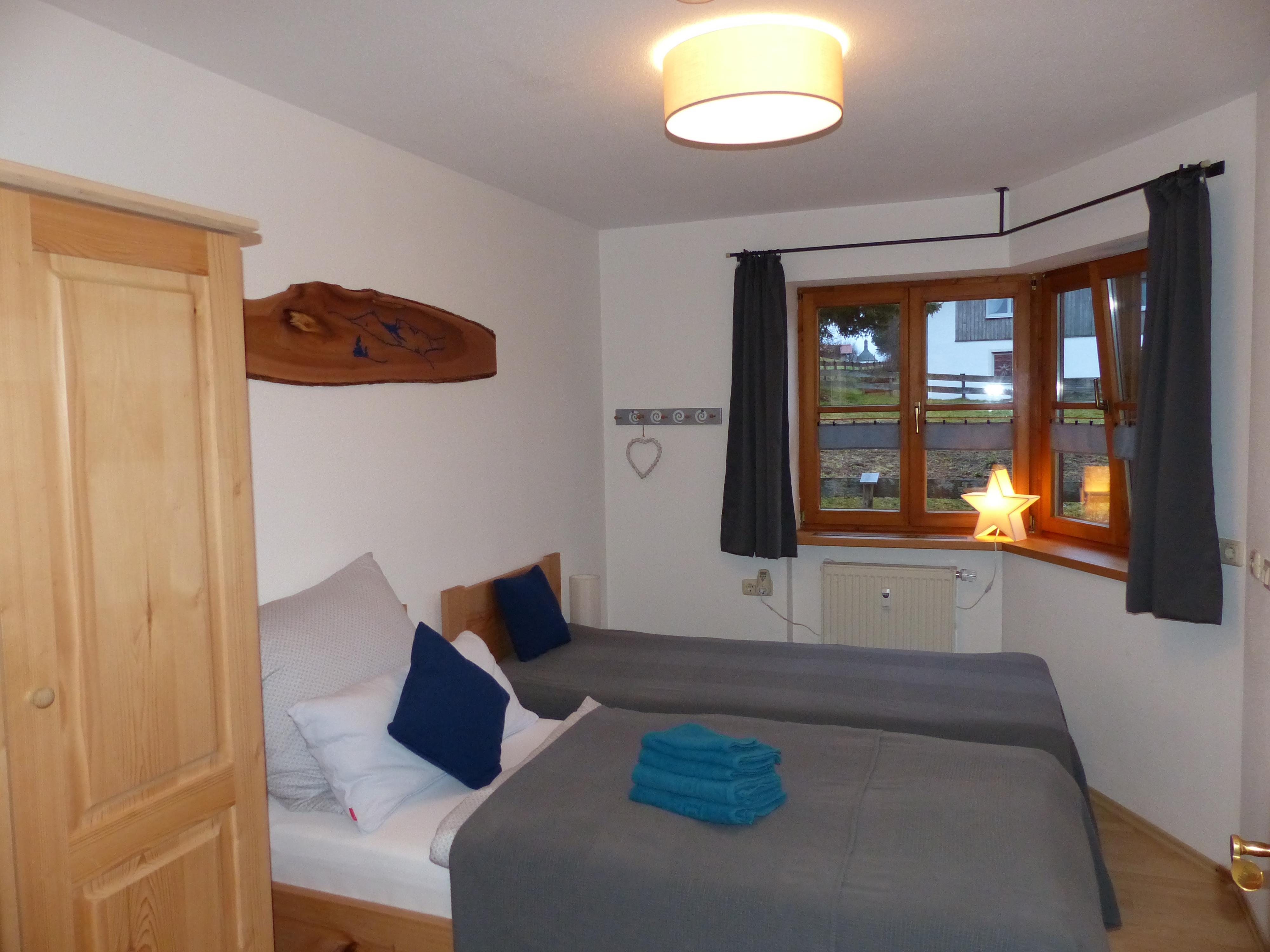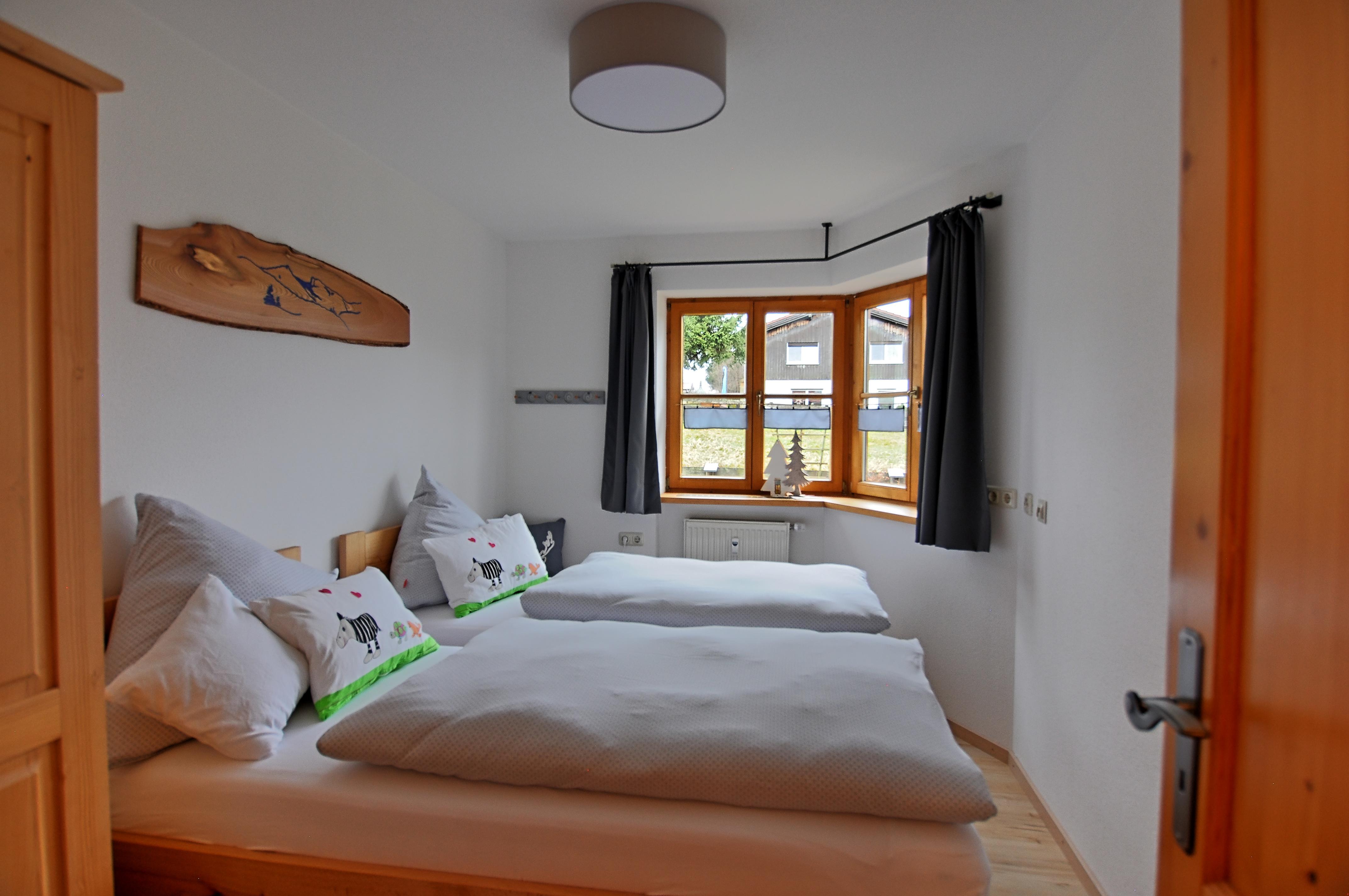 -Die massiven Einzelbetten 200 / 90 cm können zusammen geschoben werden