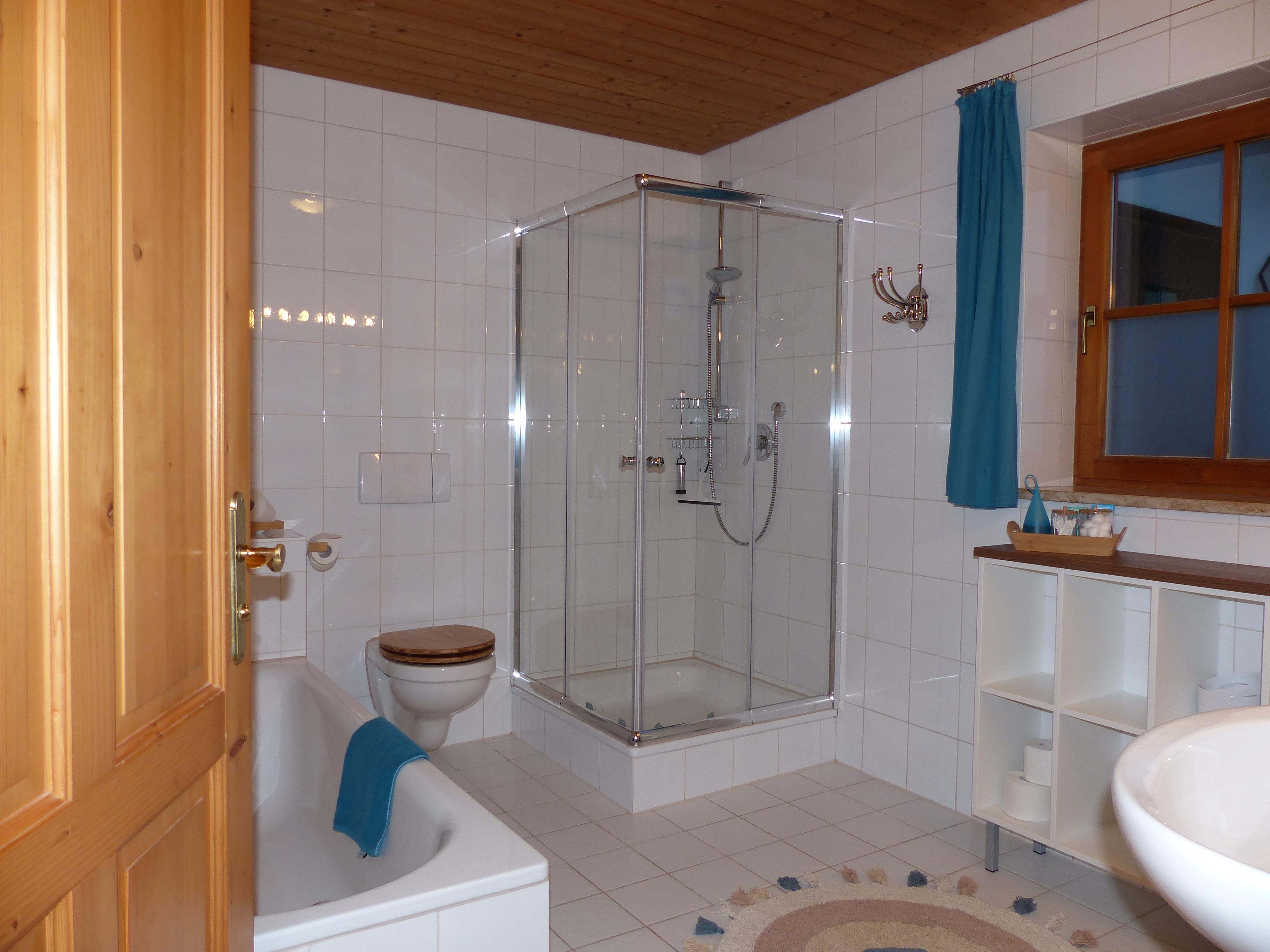 - Badezimmer mit Wanne , 2 Einzelwaschbecken und Dusche / WC