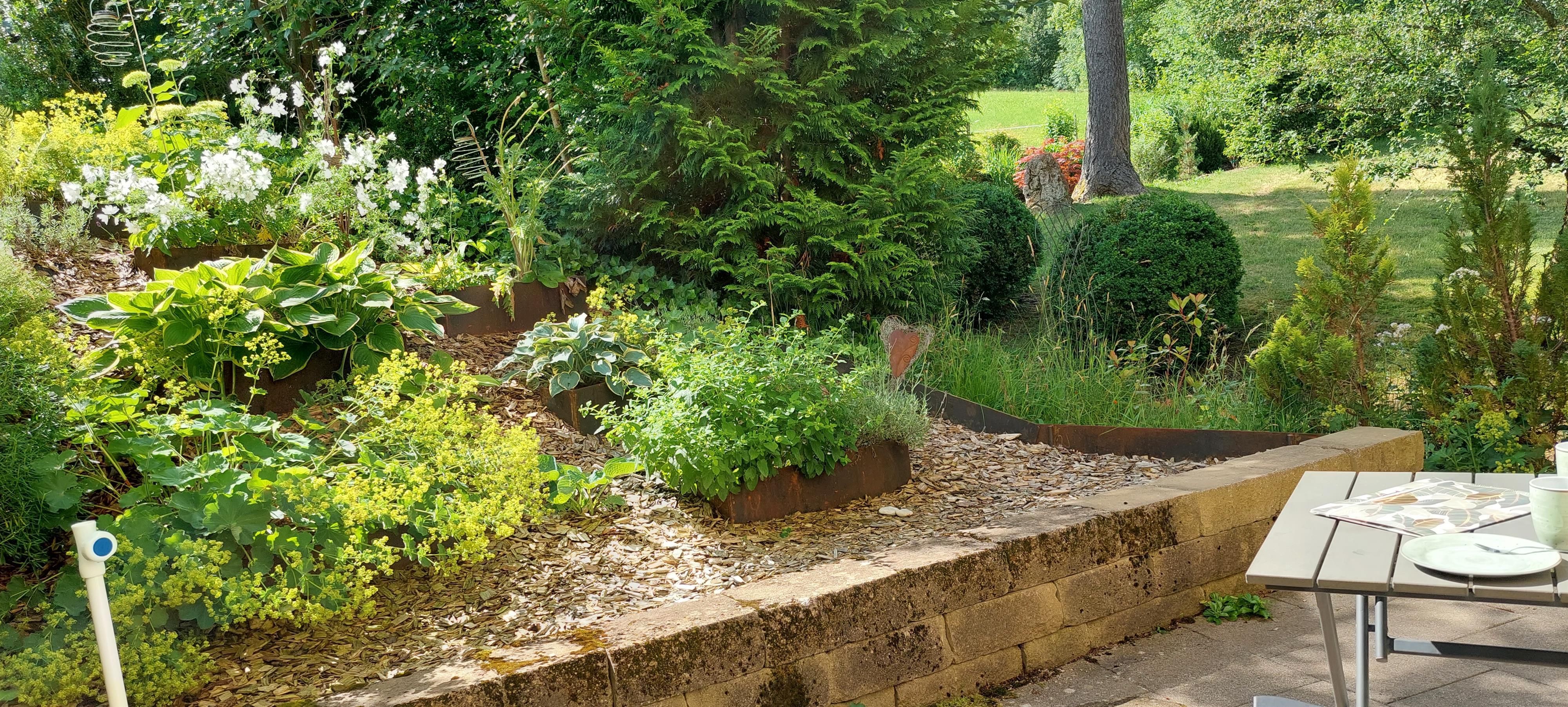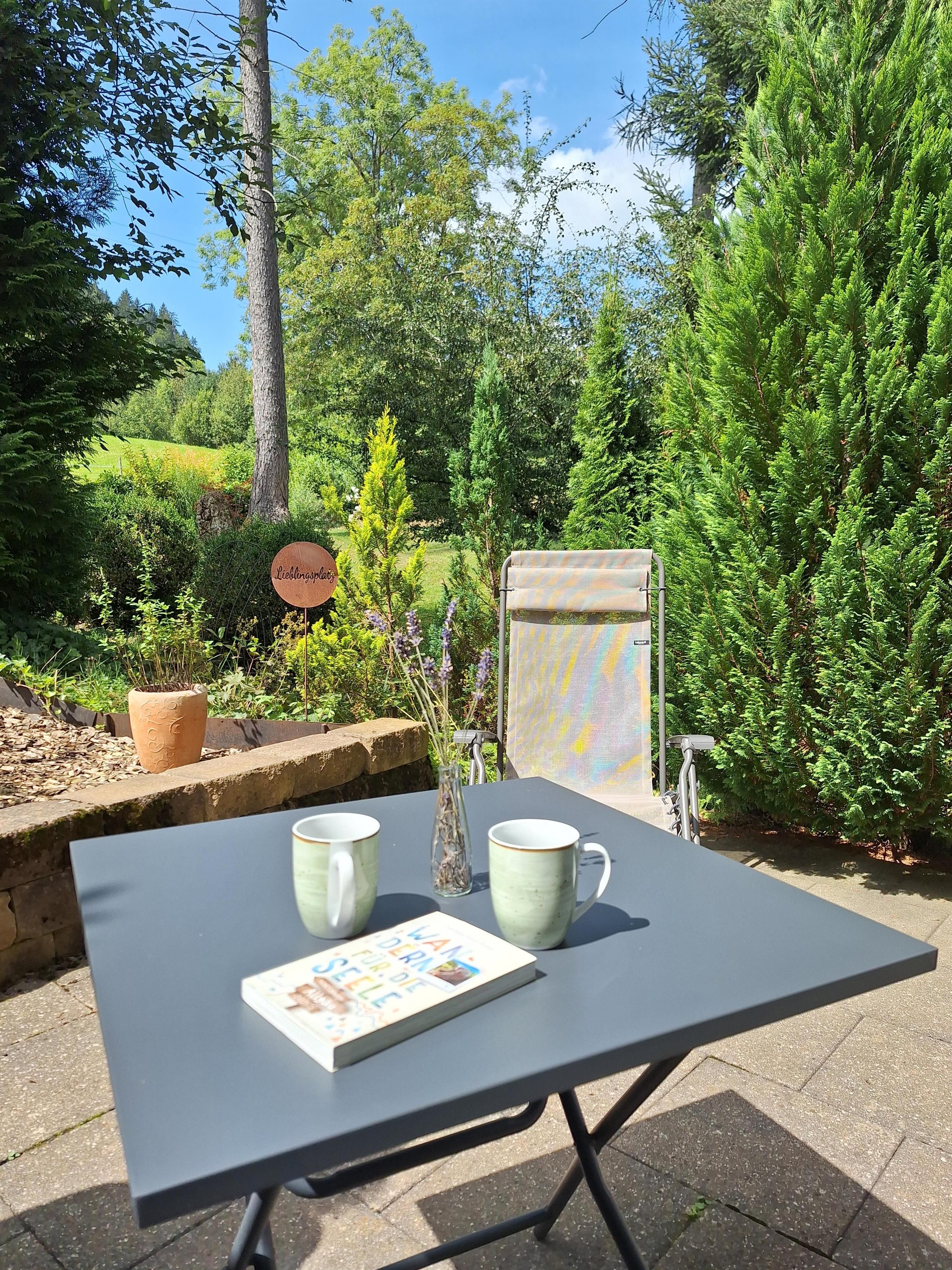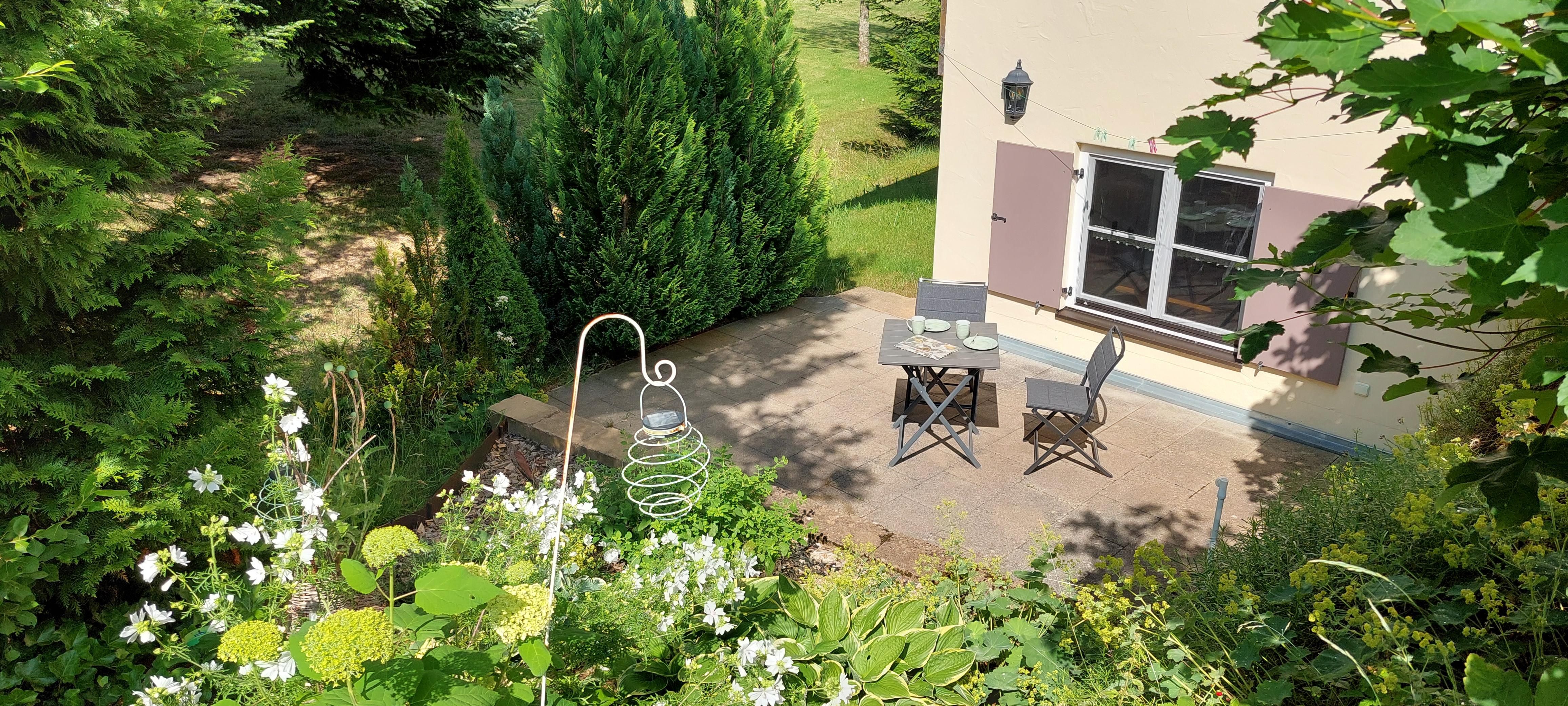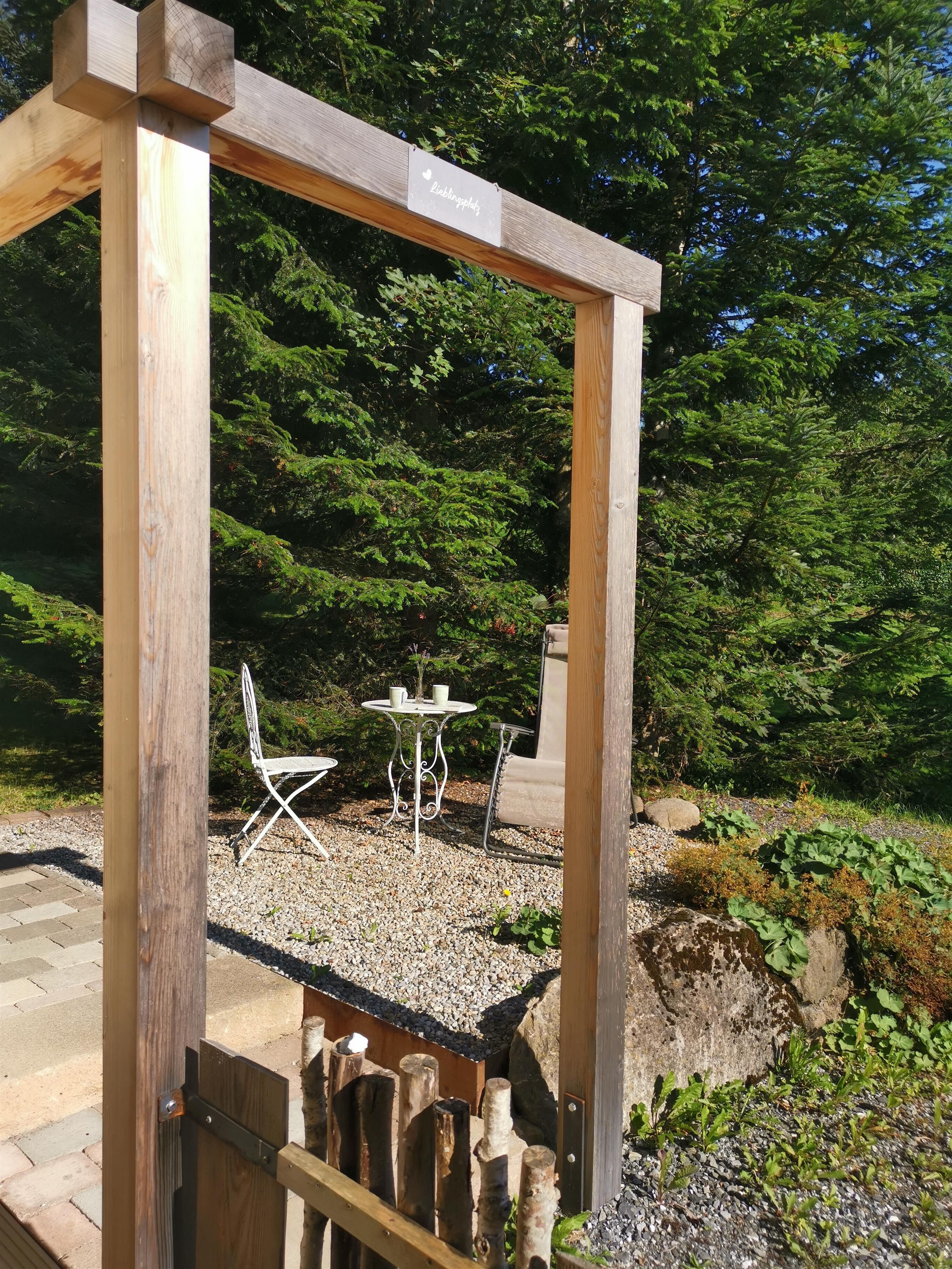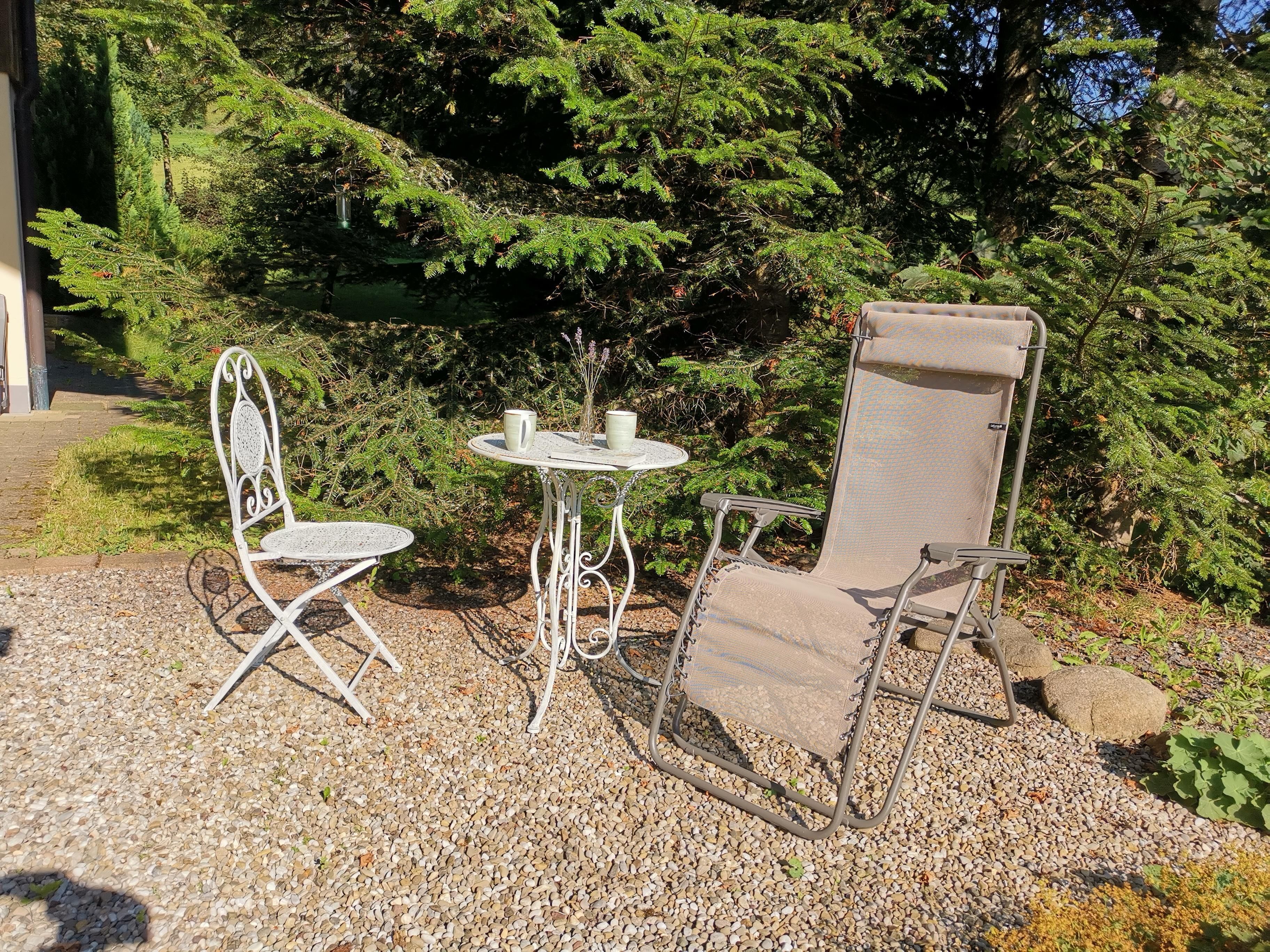 Der Lieblingsplatz verfügt über zwei Terrassen. Eine Frühstücksterrasse (Osten) und einer Hauptterrassse mit Nachmittag/Abendsonne.