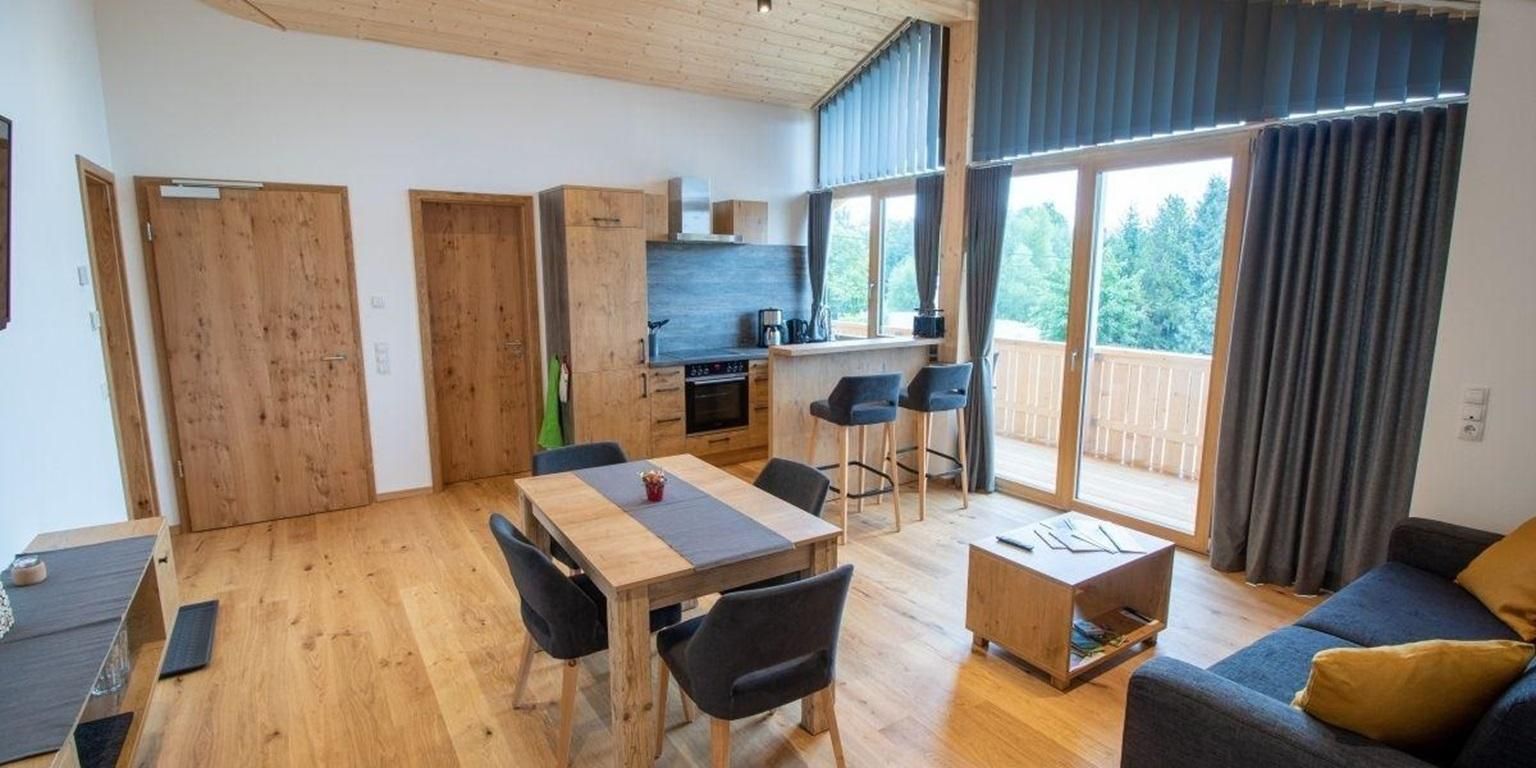 Unsere Ferienwohnungen wurden in hochwertigen Naturmaterialien ausgeführt und sind auch für Allergiker geeignet. Die geschmackvolle Einrichtung besteht aus Massivholzmöbeln und begeistert mit ihren liebevollen Details, zu denen auch ein sichtbarer Dachstuhl im Wohnbereich sowie der Parkettboden gehören. Die Wohnungen verfügen über 2 bzw. 3 Balkone, auf denen sie den Blick in die Allgäuer Berge genießen können.