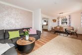 Im Erdgeschoss erwartet Dich ein gemütlicher Wohn- und Essbereich mit bequemer Sitzecke – ideal für gesellige Abende oder ruhige Lesestunden. Die voll ausgestattete Küche lässt keine Wünsche offen: E-Herd, Backofen, Kühlschrank, Gefrierschrank, Geschirrspüler und Kaffeemaschine stehen Dir zur Verfügung. Außerdem gibt es ein modernes Bad mit Dusche sowie ein separates WC.