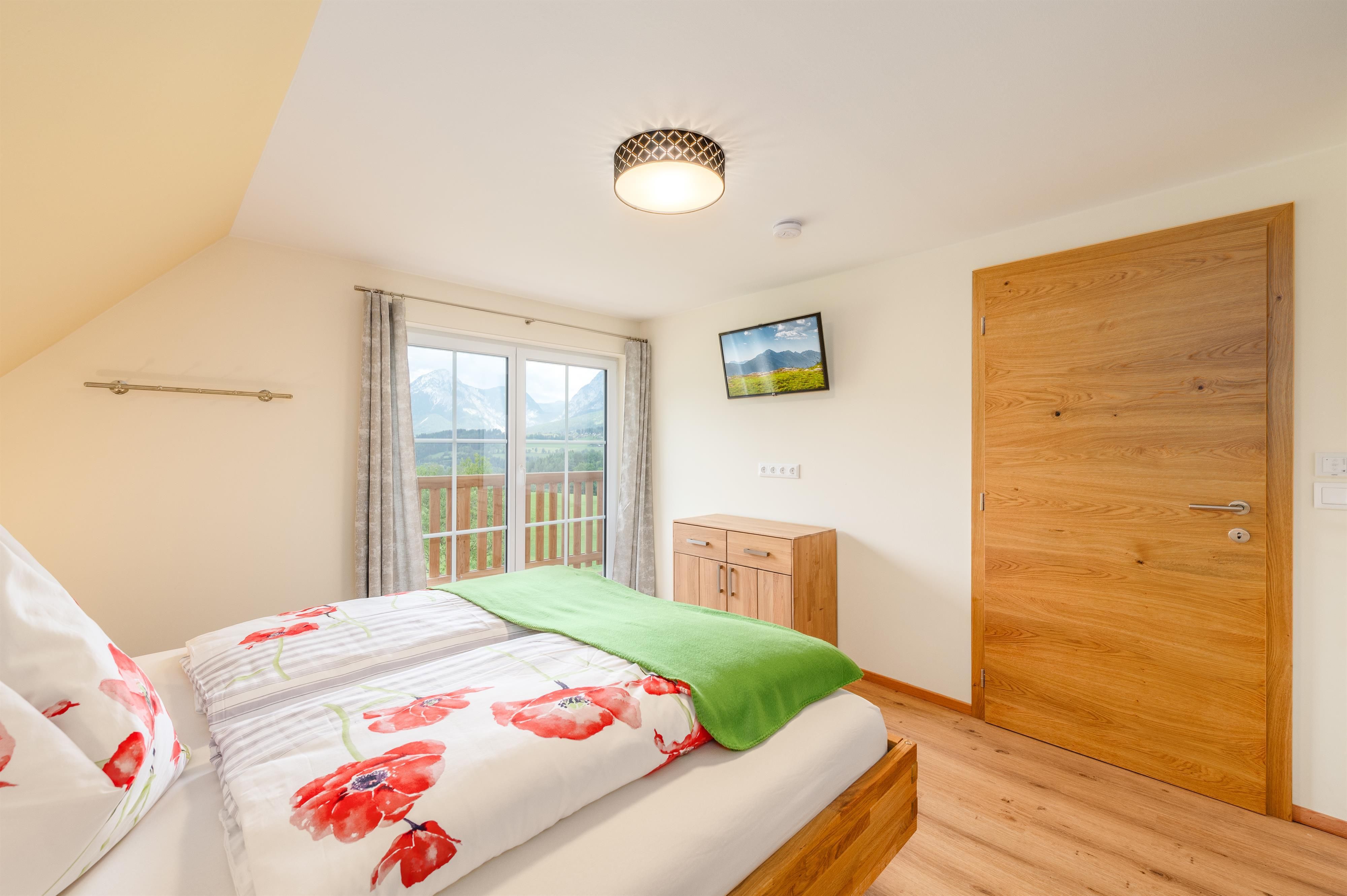 Im Obergeschoss findest Du zwei helle Doppelzimmer mit Balkon und SAT-TV – perfekt, um morgens mit einem Kaffee den Blick über die Berge schweifen zu lassen. Ein weiteres Doppelzimmer (Durchgangszimmer) mit SAT-TV steht Dir ebenfalls zur Verfügung. Auch hier gibt es ein separates WC. WLAN und Zentralheizung sorgen für Komfort bei jedem Wetter.