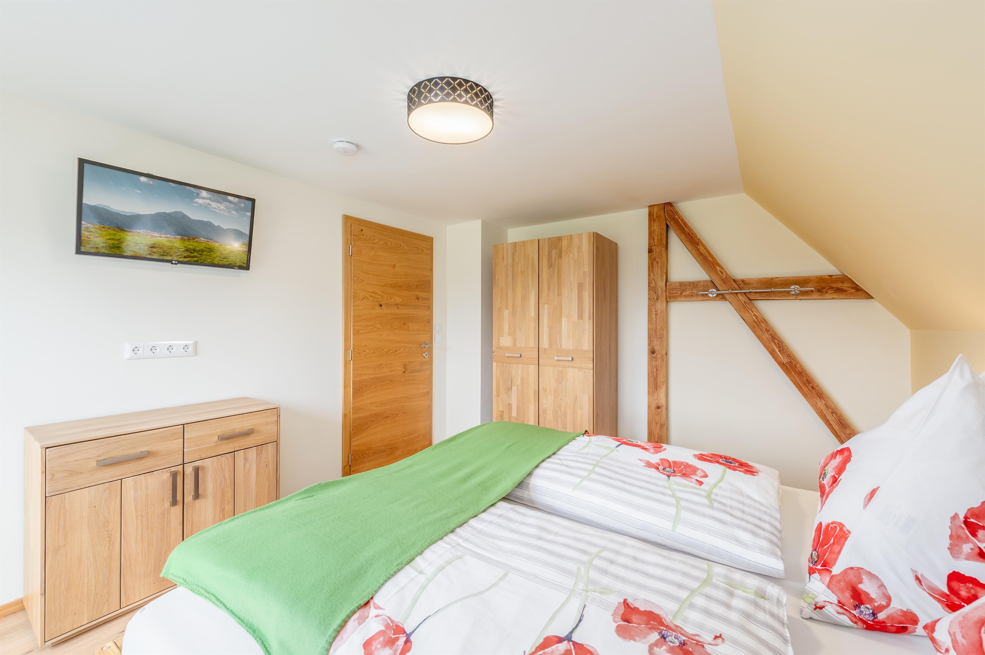 Im Obergeschoss beindet sich: 2 Doppelzimmer mit Balkon, SAT-TV. 1 Doppelzimmer mit SAT-TV (zum Durchgehen), 1 WC. Zentralheizung, SAT-TV, W-LAN vorhanden.