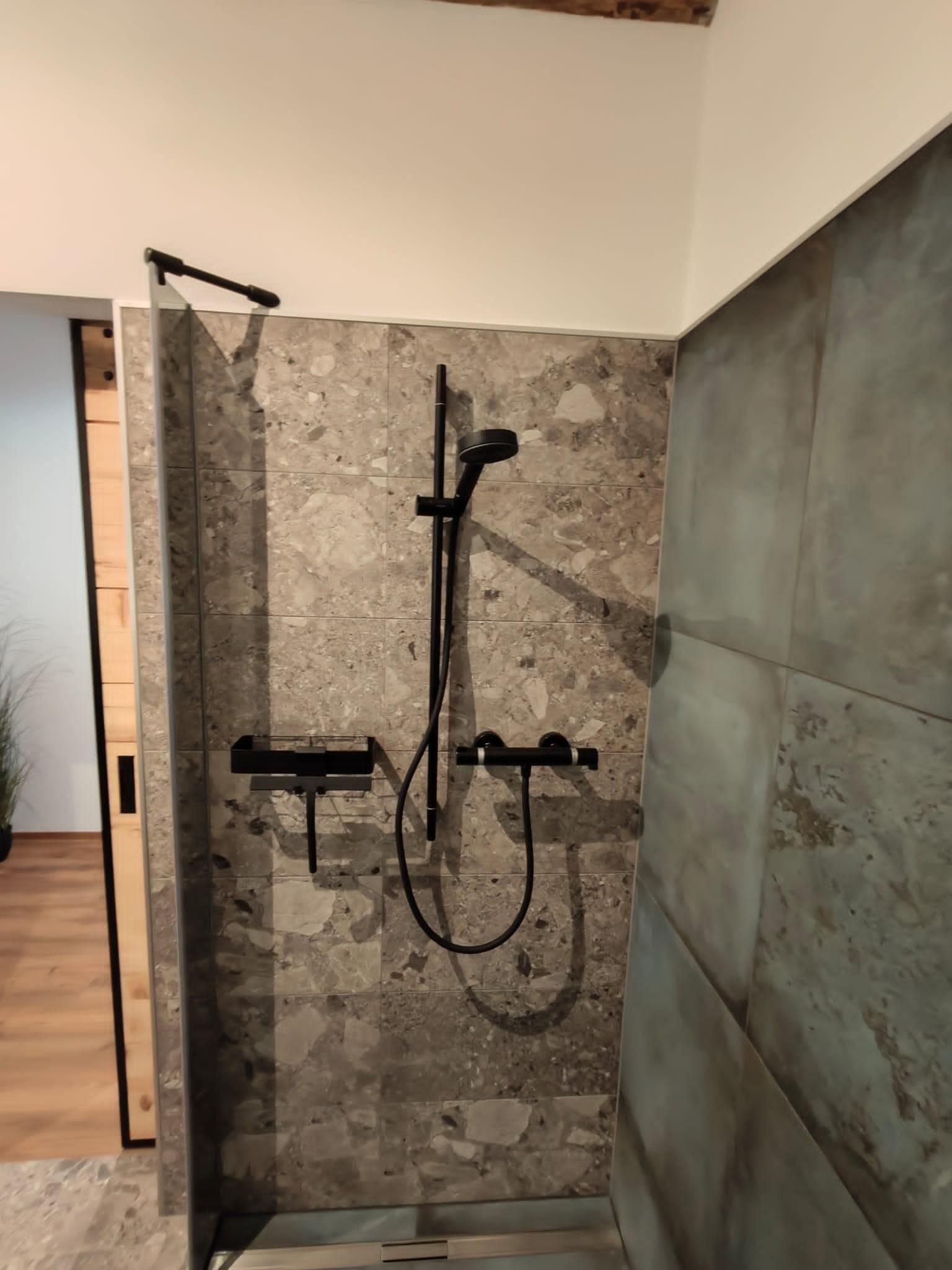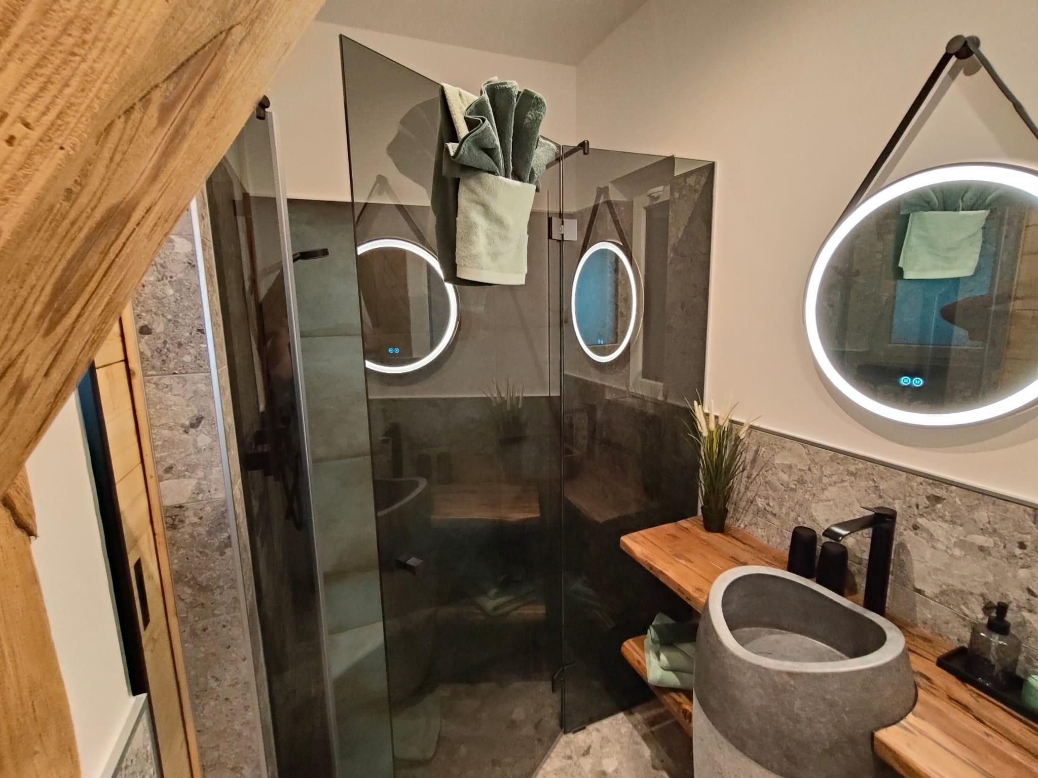 Auf der Ebene 1 befindet sich der rustikal moderne und komplett eingerichtete Wohnraum mit Küche,ein schöner Balkon, sowie unser tolles Badezimmer mit XXL Dusche.