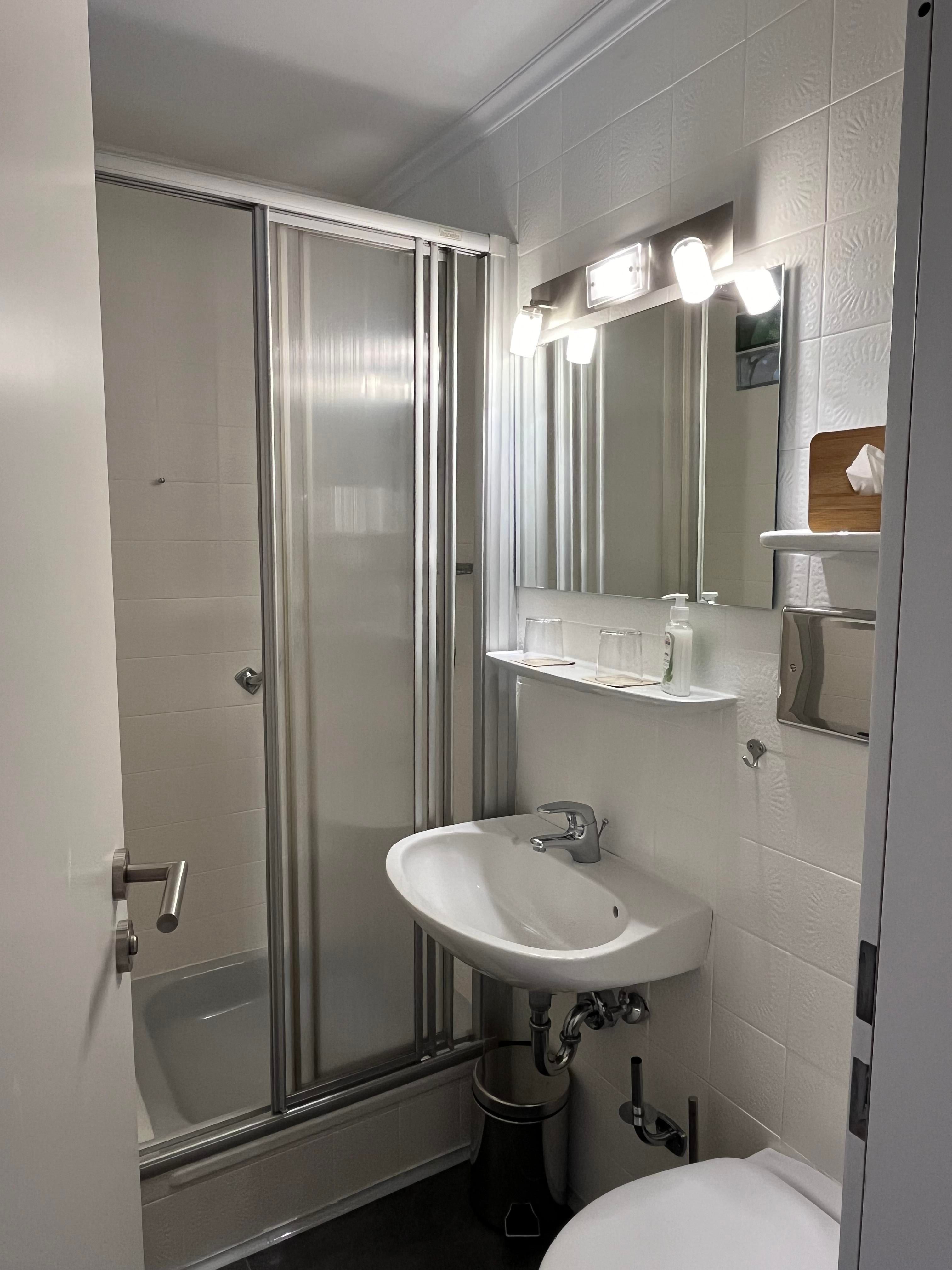 Durch das separate Schlafzimmer, welches mit einem King-Size-Bett (2x2m) ausgestattet ist, gelangt man ins Bad, das über eine Dusche verfügt. In beiden Räumen hat es einen Internet-kompatiblen TV mit Kabelanschluss, USB und HDMI.