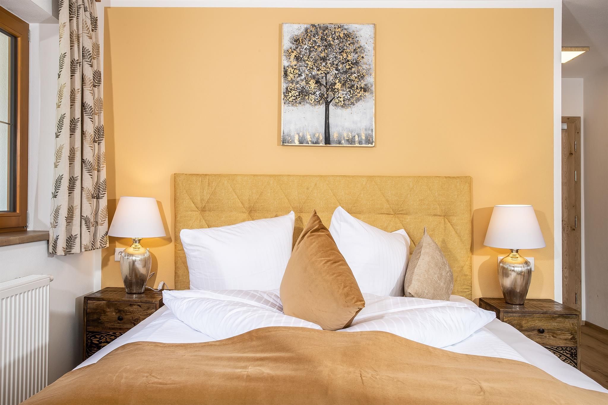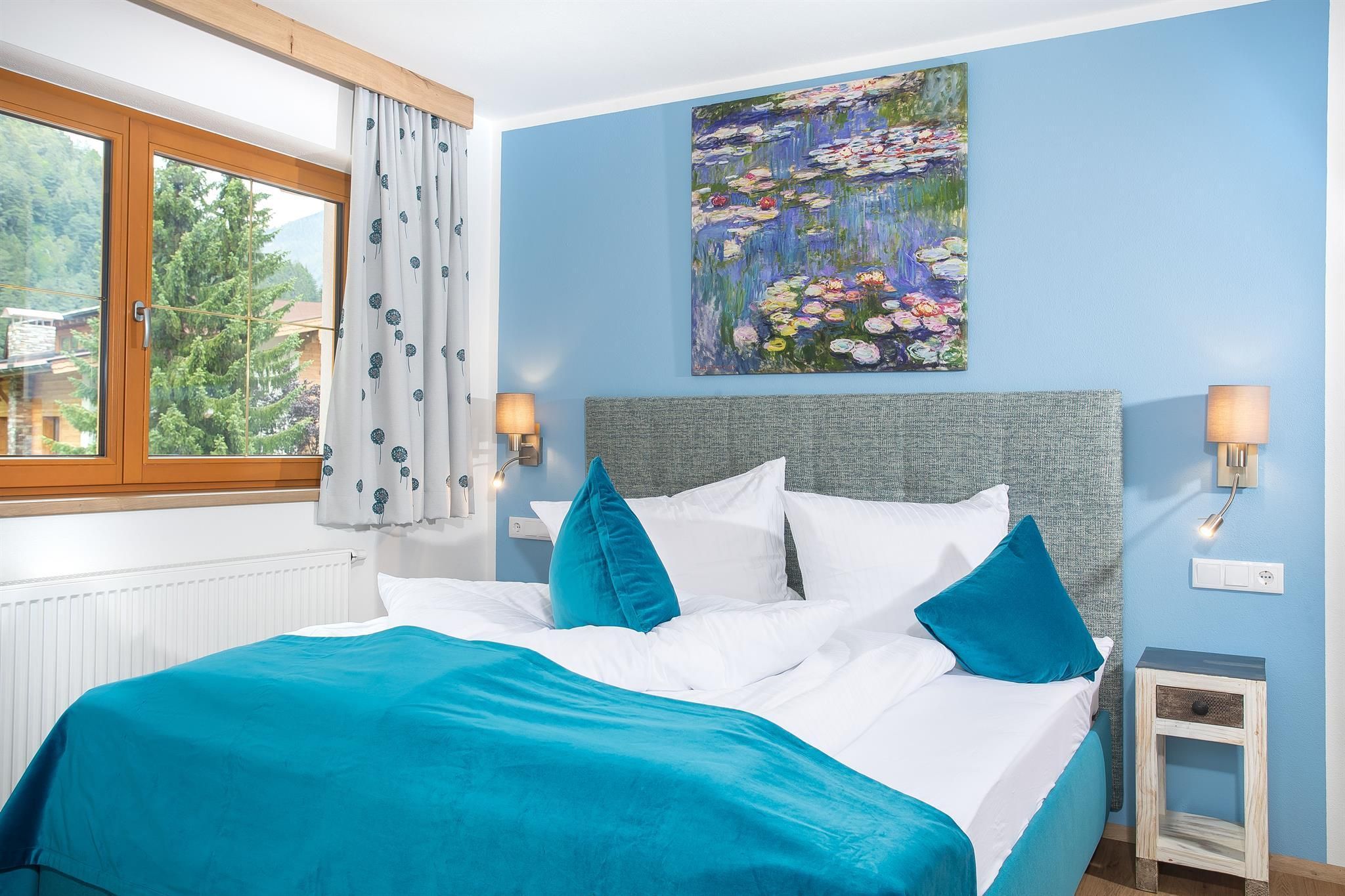 Einzigartig eingerichtete Zimmer mit Bergblick und Balkon oder Terrasse. Auf Anfrage auch als Einzelzimmer buchbar. Bitte beachten Sie, dass die Fotos beispielhaft für diese Kategorie sind.