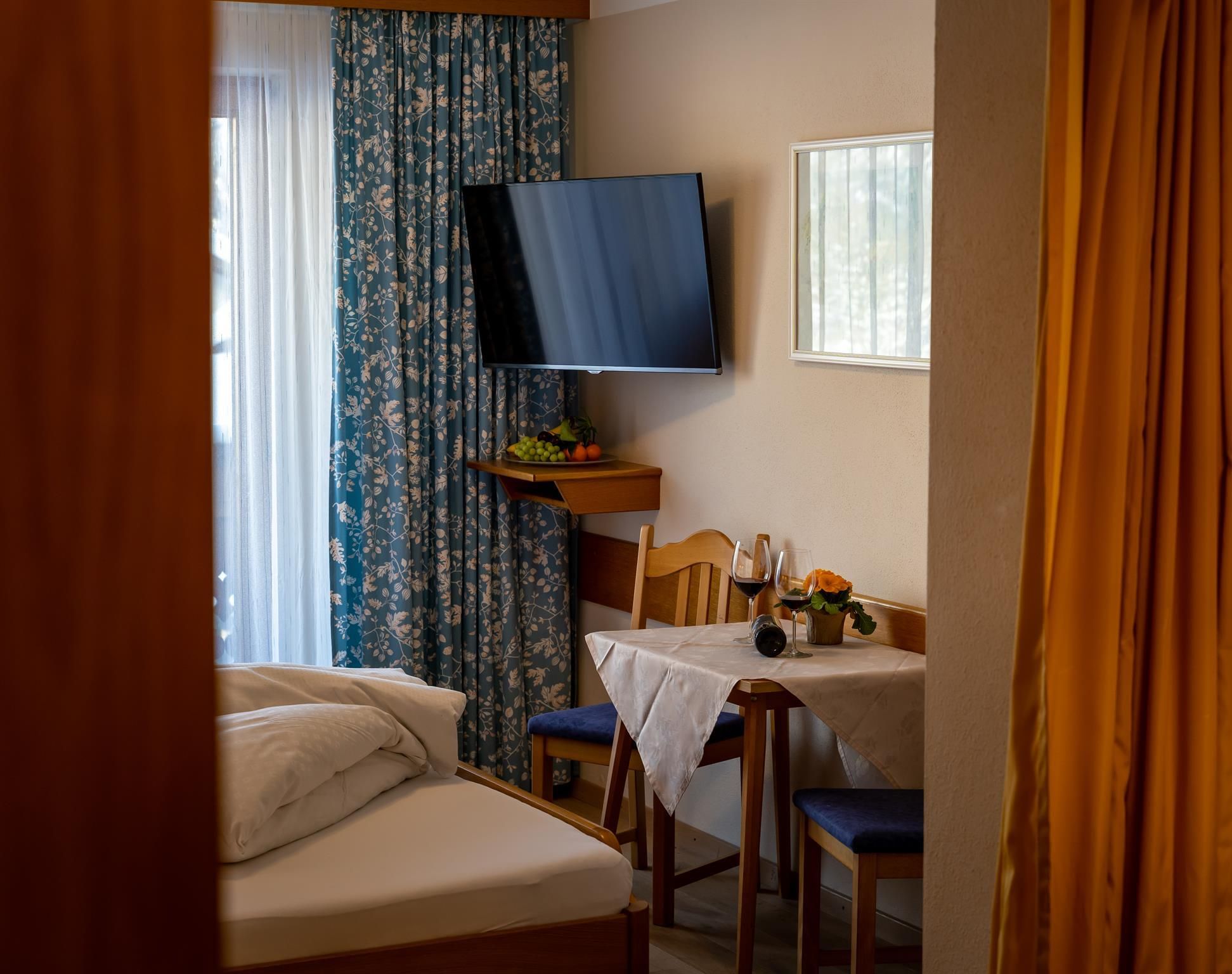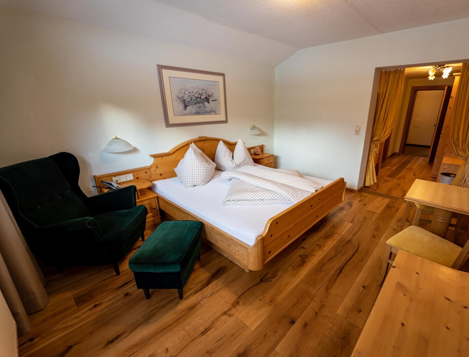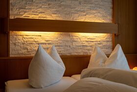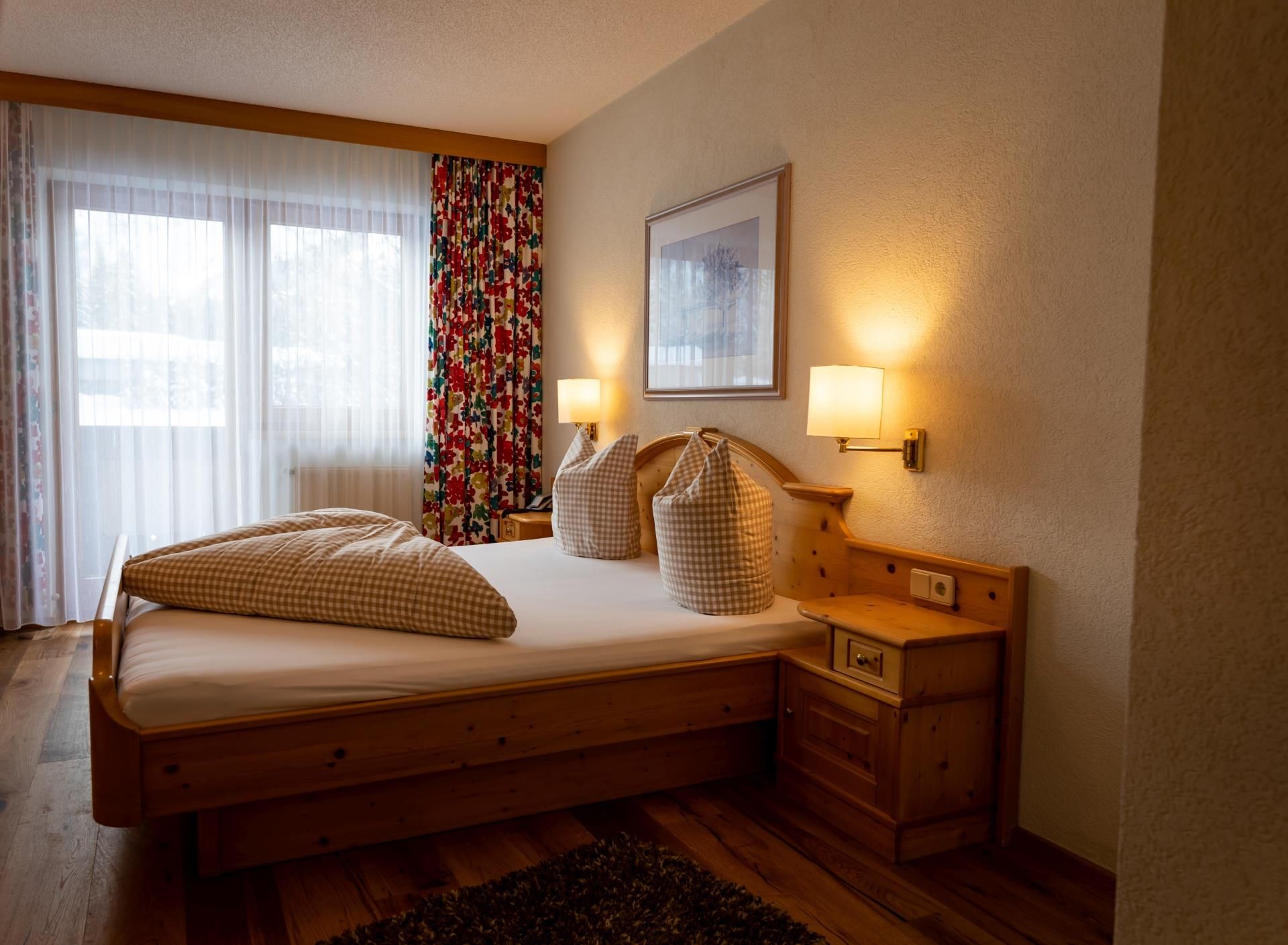 Die ca. 27m² großen ruhig gelegenen Doppelzimmer bieten einen Balkon ,die Zimmer sind ausgestattet mit einem Doppelbett, Dusche-WC,