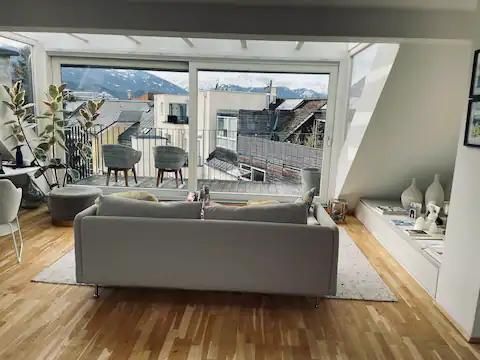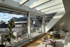 Ihre perfekte Skiunterkunft inmitten der Berge. Dieses zentrale 100m² Apartment im 4. Stock bietet Platz für bis zu 4 Gäste in 2 Schlafzimmern (eines mit Doppelbett, ein Büro mit Schlafsofa) und verfügt über Bergblick sowie einen Balkon. Eine große Küche mit Nespresso-Maschine steht Ihnen zur Verfügung. Fahrräder können bequem im Innenhof abgestellt werden und die Innenstadt ist in wenigen Minuten erreichbar.