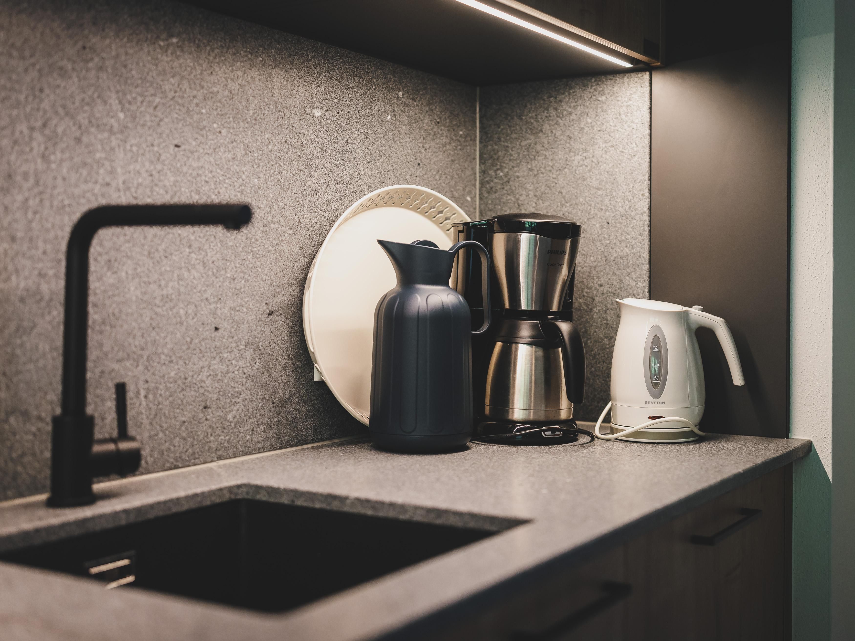 • Backofen, Herd, Geschirrspüler, großer Kühlschrank und Kaffeemaschine