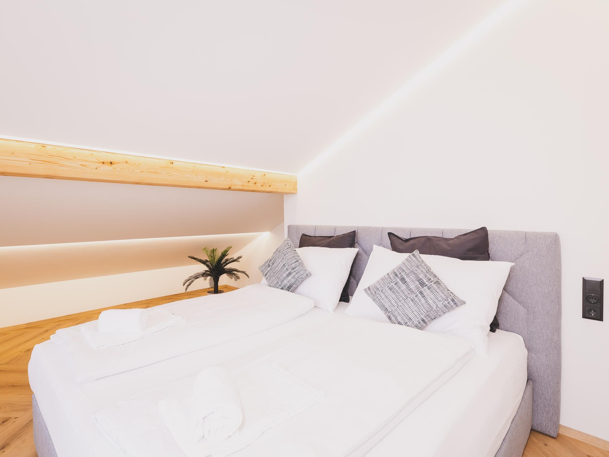 Ferienwohnungen Appartments Prielau mit Seeblick und ruhiger Lage. Verbringe unvergessliche Tage in Zell am See in unseren Superior-Ferienwohnungen, Appartments Prielau. Die Garden Lodge bietet Platz für 1-5 Personen und verfügt über 2 Schlafzimmer. Sie befindet sich in einem separaten Gebäude und ist ohne Treppen erreichbar. Das Penthouse, ideal für 1-4 Personen, hat 1 Schlafzimmer und liegt im 2. Stock des Hauptgebäudes.