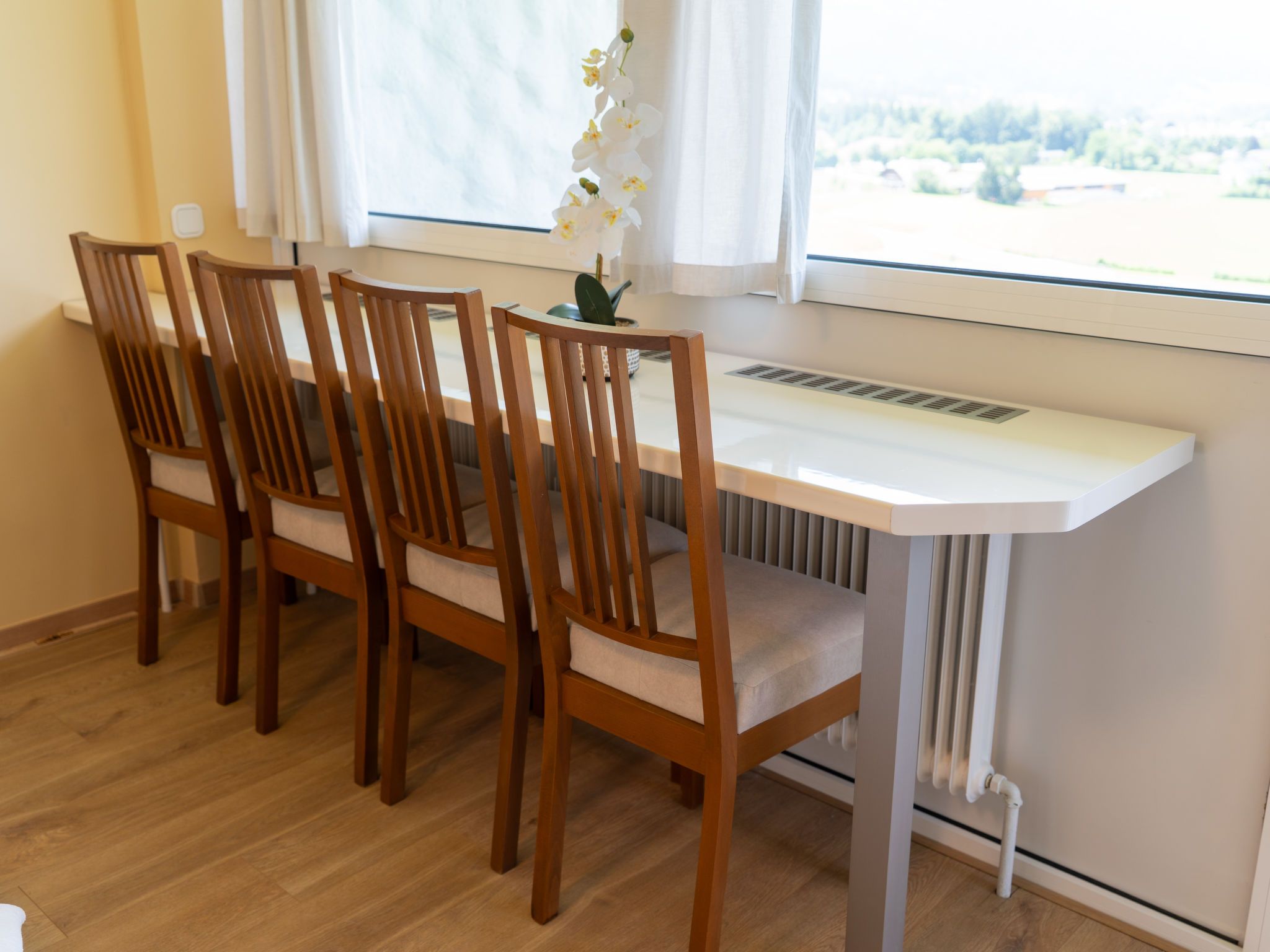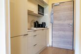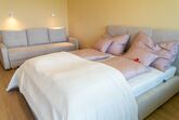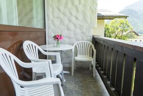 Wohnung 305 Bergblick, 1-Zimmer-Wohnung 30 m2. Modern und gemütlich eingerichtet: Wohn-/Schlafzimmer mit 1 Diwanbett, 1 Doppelbett und Sat-TV (Flachbildschirm). Offene Küche (2 Kochplatten, Wasserkocher, Mikrowelle, elektrische Kaffeemaschine). Dusche/WC. Heizung, Klimaanlage. Balkon 6 m2. Balkonmöbel. Schöne Sicht auf die Berge. Zur Verfügung: Waschmaschine. Internet (WLAN, gratis). Bitte beachten: Nichtraucher-Unterkunft.